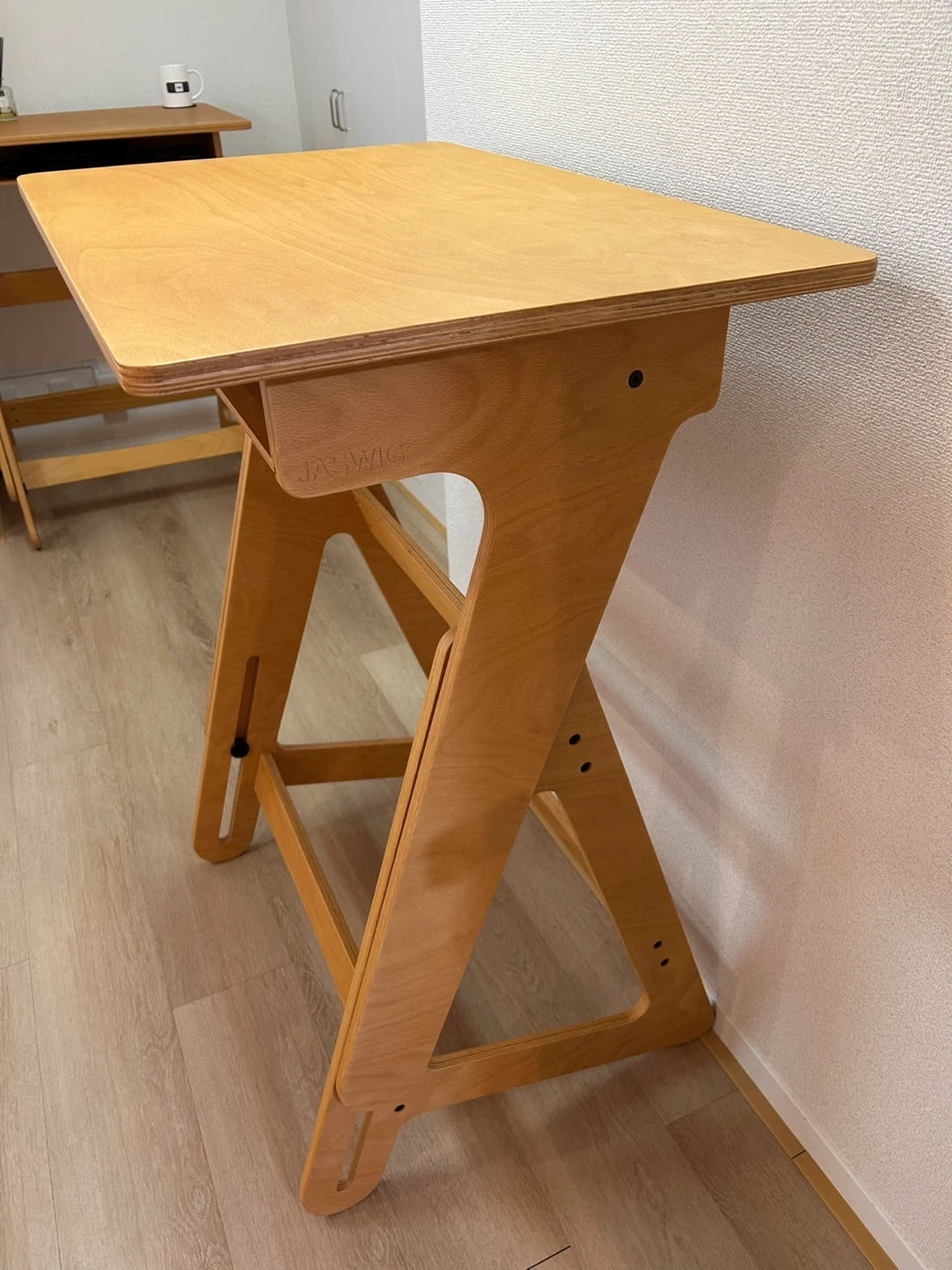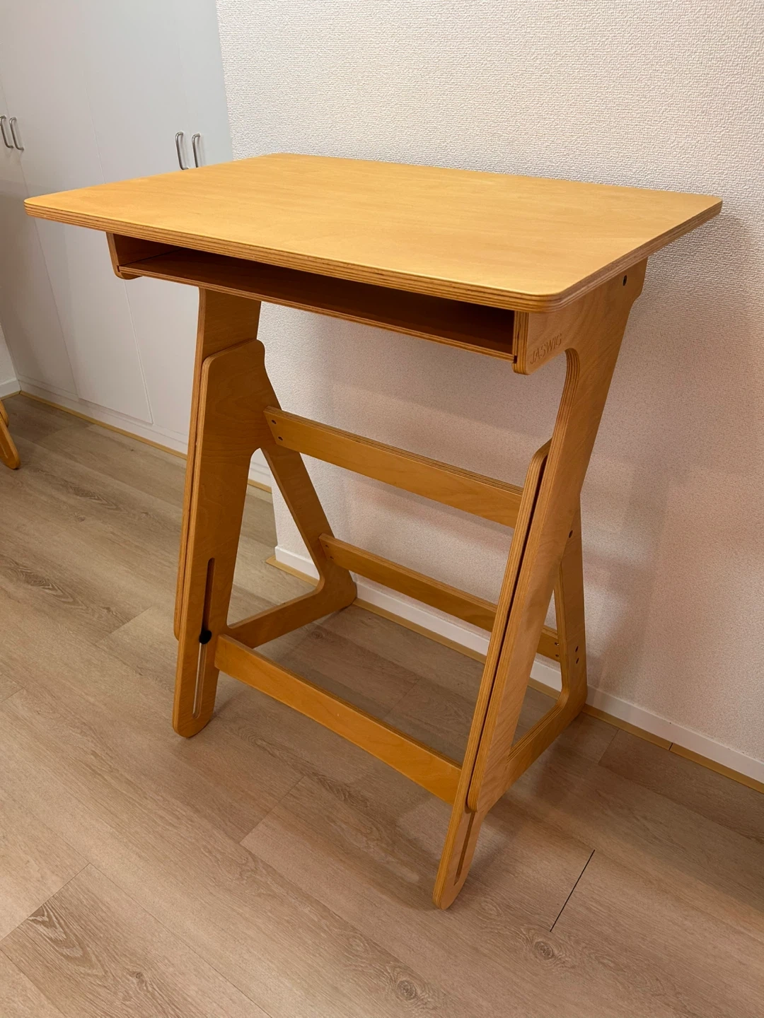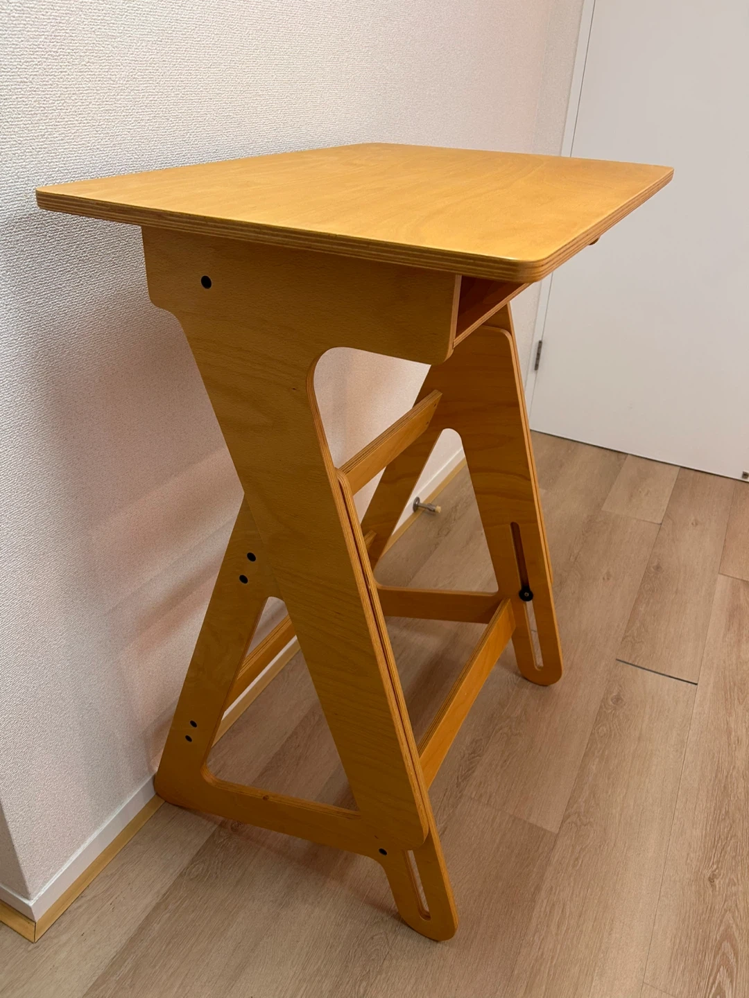 インテリアに馴染む木製のスタンディングデスクです。海外からの発送で購入しました(日本では買えないと思います)。 高さが数段階調節できます。一番低くした時で約93cm、一番高くて約122cm。電動ではありませんが、むしろ環境にやさしいデザインとしてアメリカで人気でした。 オフィスの閉鎖に伴い5台を処分しとうと思ってますが、輸入した際の定価が5万円程度でして、中古として1台5千円で処分します。1台から5台まで必要な台数の購入もできますので、メッセージお願い致します。 参考までにイメージ写真 https://www.amazon.com/JASWIG-Standing-Movement-Different-Assemble/dp/B074P7R8DL/ref=cm_cr_arp_d_product_top?ie=UTF8