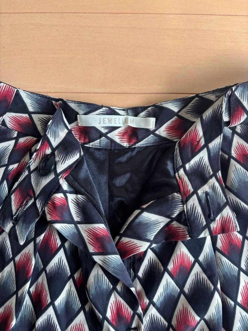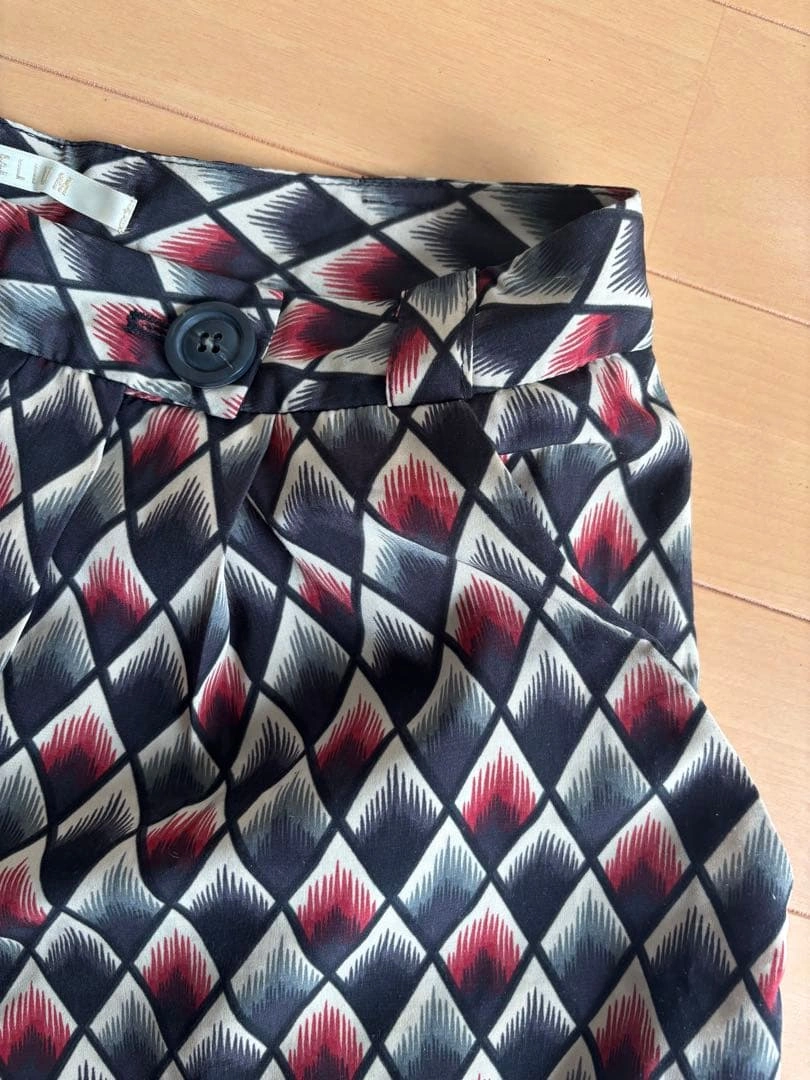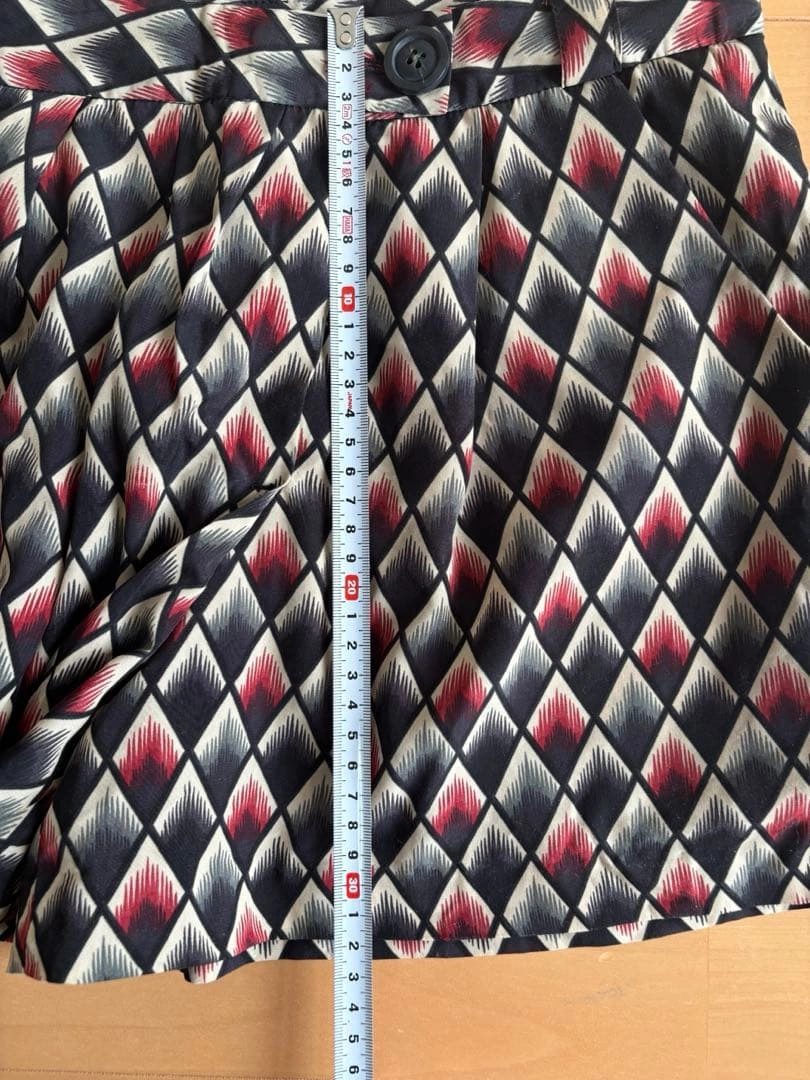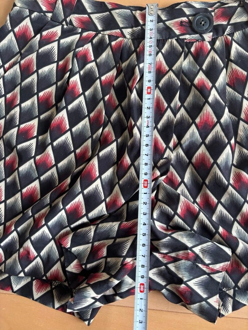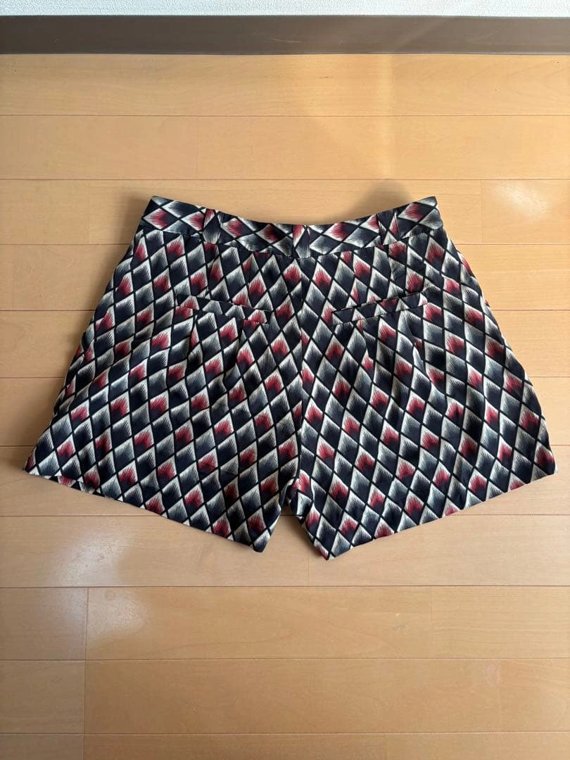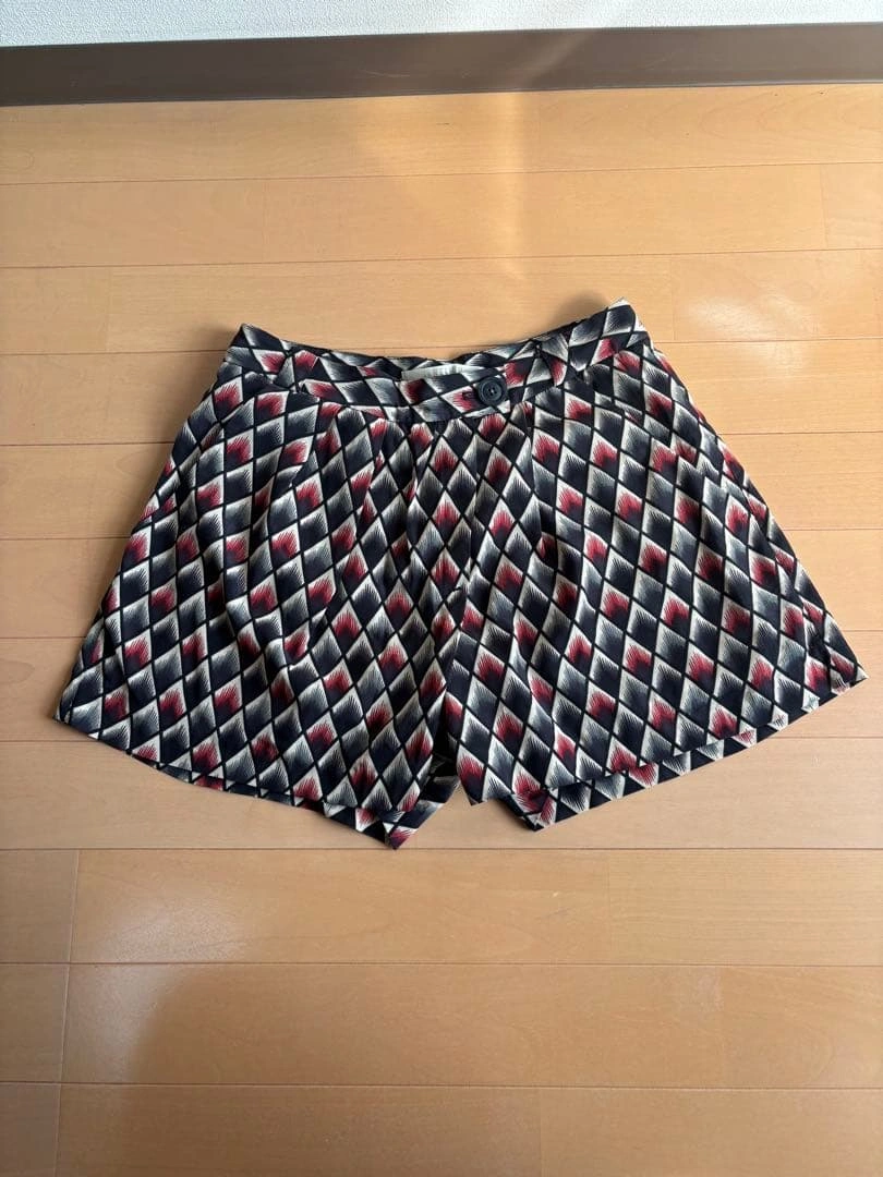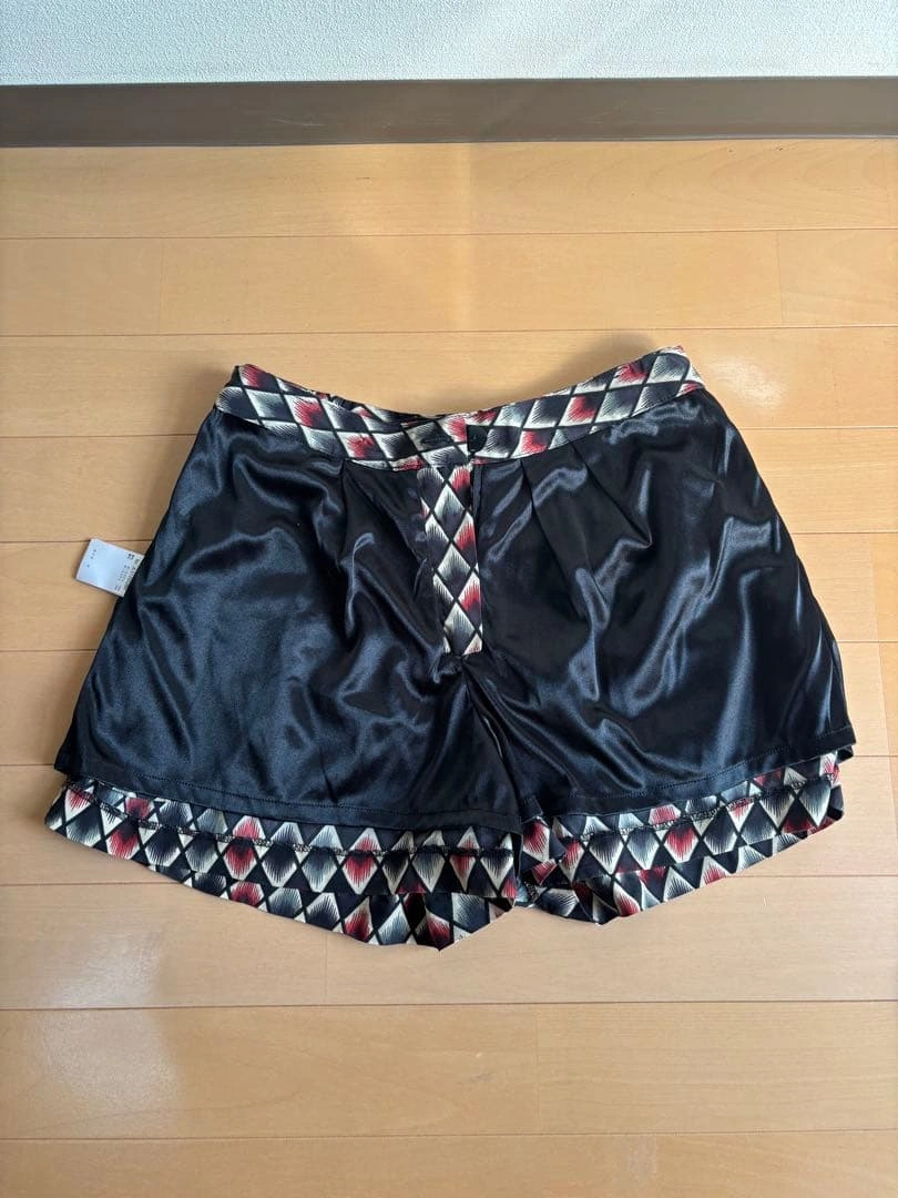JEWELIUM ショートパンツ ボタンとチャック 平置き実寸  ウエスト…33cm(約66cm  股上…27cm  総丈…32cm 裏地…あり ベルト通し…あり ポケット…脇と後ろ 生地…サテン スカート丈···ショート・ミニ丈 カラー···レッド ブラック シルエット···フレア 自宅にて洗濯済み ご希望の方はお気軽にご連絡ください。