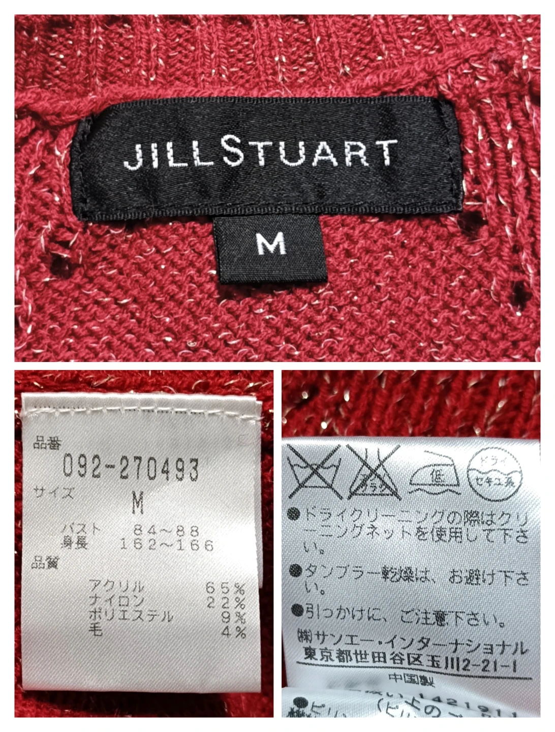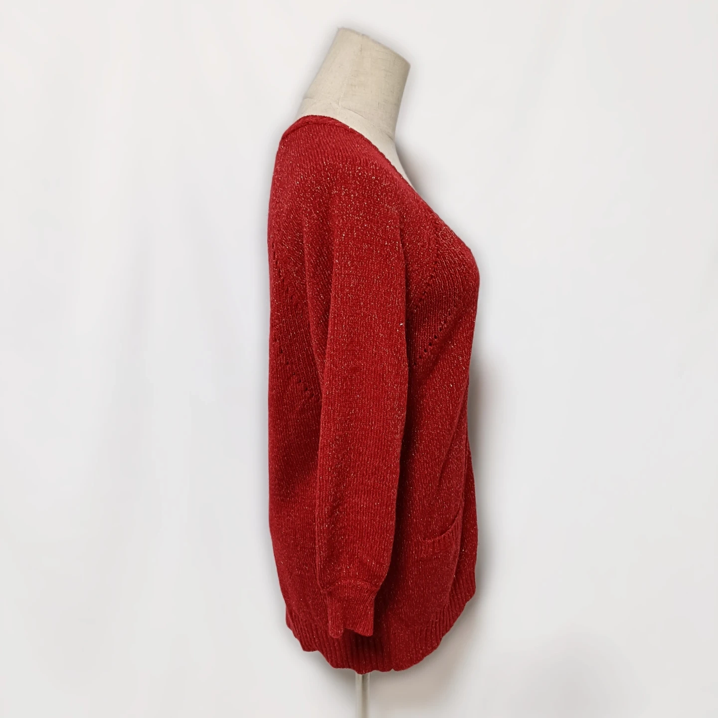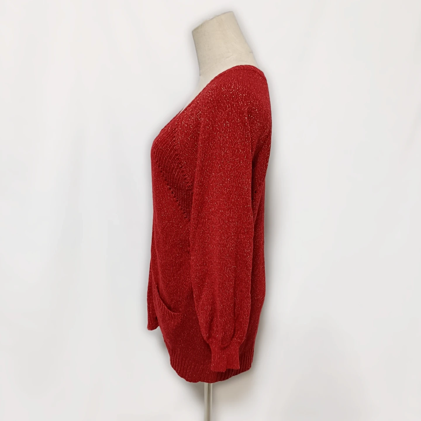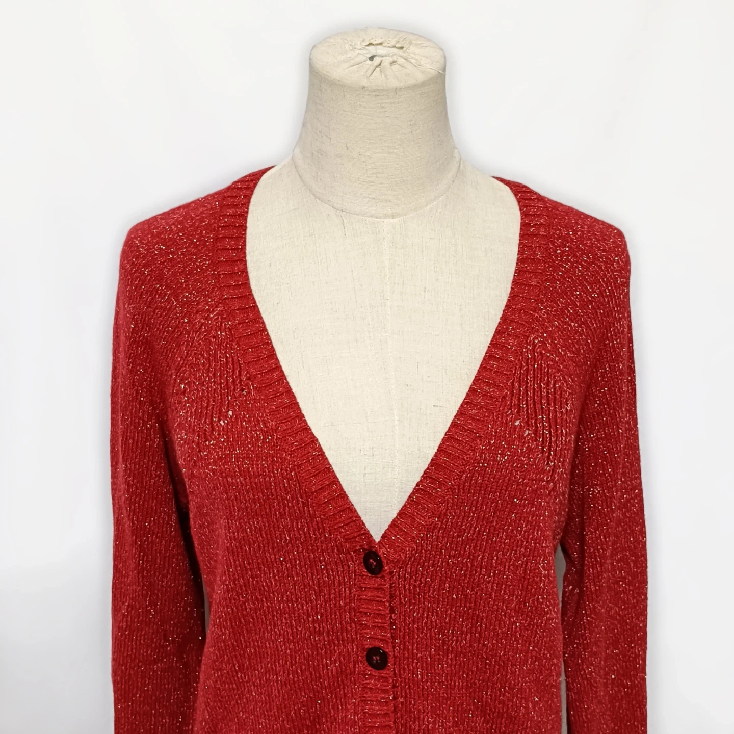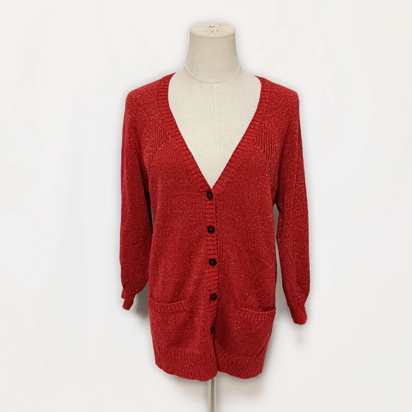 JILL STUART ジルスチュアート ラメ入り Vネック ロングニット カーディガン 赤 M 美品