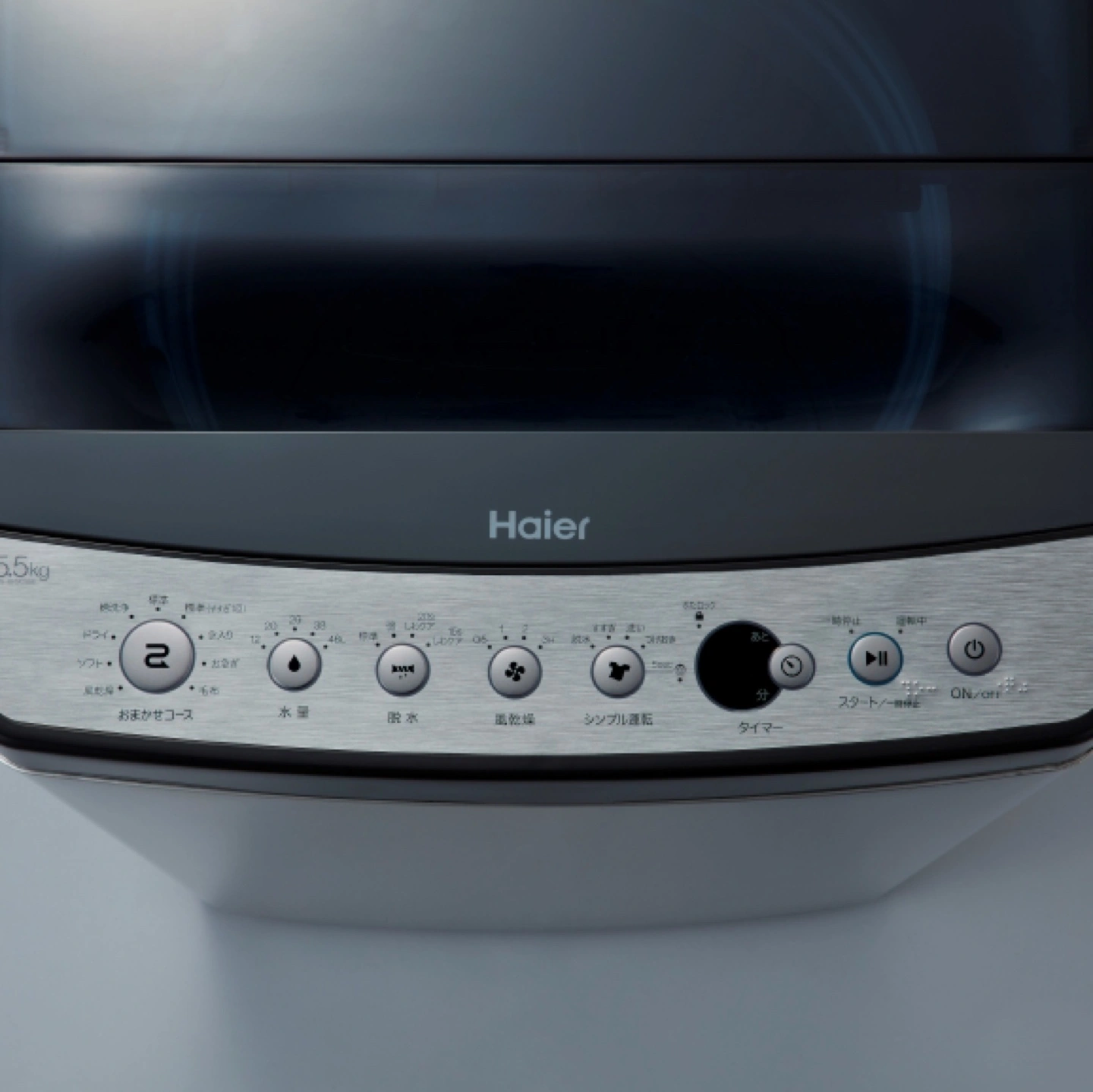 【ブランド】Haire(ハイアール) 【カラー】ステンレスブラック 【サイズ】 幅526×奥行500×高さ888 5.5kg 【参考価格】 ステンレス調で統一された、デザインにこだわったシンプルな家電「アーバンカフェシリーズ」。最短約10分で洗濯できる「お急ぎコース」など毎日のくらしに欲しい機能を搭載。 1年程使用しました。 ホームクリーニング済み。 お探しの方にお譲りします。