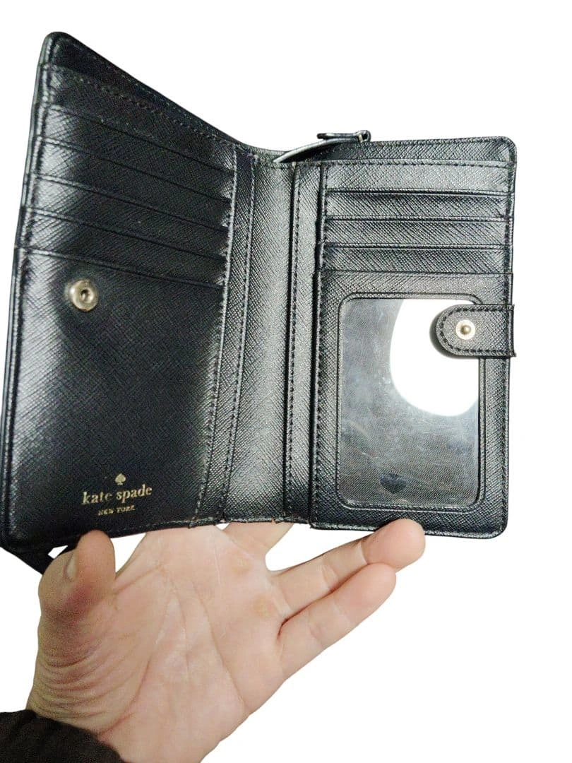 【ブランド】kate spade(ケイトスペード) 【アイテム】二つ折り財布 / コンパクトウォレット ブラックの型押し素材に、アートデザインと三角パッチがアクセントになったおしゃれなデザイン財布です。 コンパクトで持ち運びしやすく 、小さめバッグにも入る便利なサイズ感。普段使いにもおすすめです。 【状態】 使用感はありますが、目立つ大きなキズや汚れはありません。全体的に良好なコンディションです。 ※中古品のため、細かなスレなどはご了承ください。 【サイズ】 縦:約14cm 横:約10cm 厚み:約2cm 【カラー】 ブラック / ベージュ 気になる点がありましたらお気軽にコメントください。 よろしくお願いいたします。 サフィアーノ風 型押し 可愛い シンプル 上品 普段使い 黒猫 #ケイトスペード #二つ折り財布 #コンパクトウォレット #レディース財布 #ブランド財布 #ブラック財布