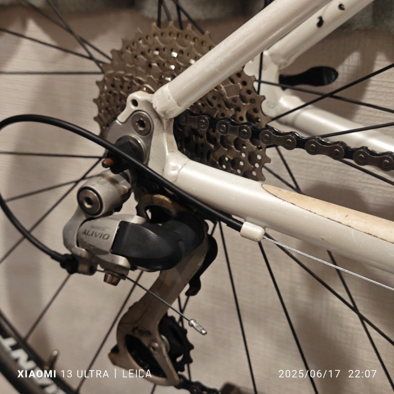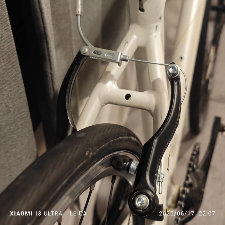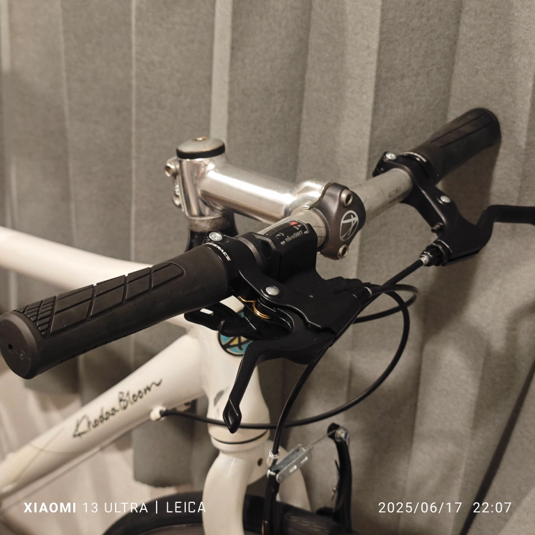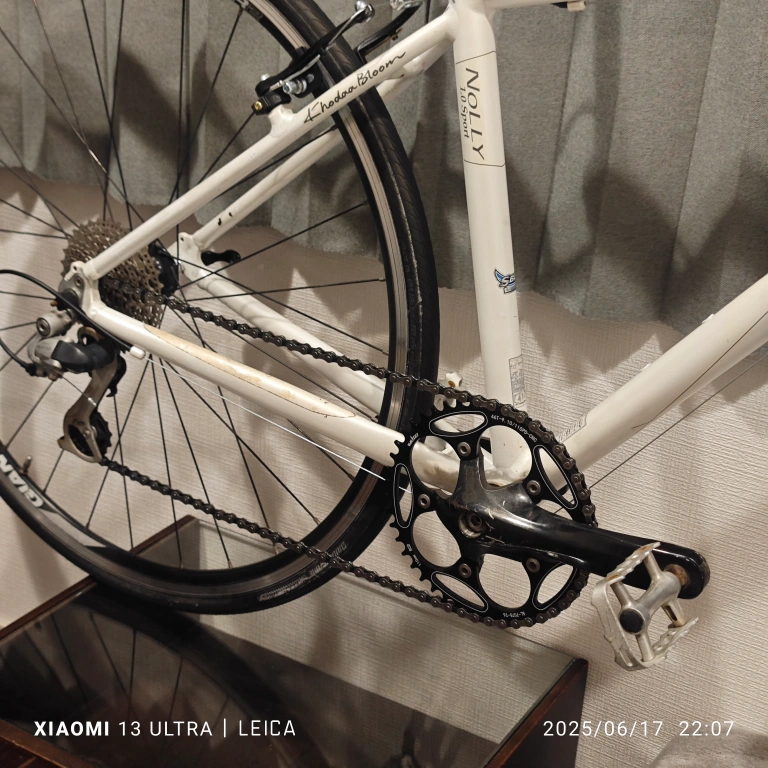 コーダーブルームのクロスバイクです。 かなり状態の悪い状態の車体を購入後、カスタムを重ねて街乗りに使用していました。 その為、フレーム等には日焼けや落としきれない汚れがございますが、走れるように整備を行っております。 純正時より、クランク、ホイール、サドルは変更しており、グリップ、シフター、前後Vブレーキ、ブレーキレバー、ワイヤー類、チェーンリングは新品に交換しました。 チェーンリングは46Tのナローワイドチェーンリングを装着しております。 ホイールには走行に影響が無い程度の振れやゴリ感がございますが、特に問題無く使えるかとおもいます。 タイヤはこのままでも使えますが、ひび割れてきてますので交換推奨です。 こちらの商品はあくまでも中古になりますので、傷や汚れ等を気にされる方のご購入はご遠慮ください。 送料無料ですので、どうぞお気軽にご購入ください! 大幅なお値下げは行っておりません。 非対面でしたら24時間いつでもお渡し可能です。 クロスバイク ロードバイク