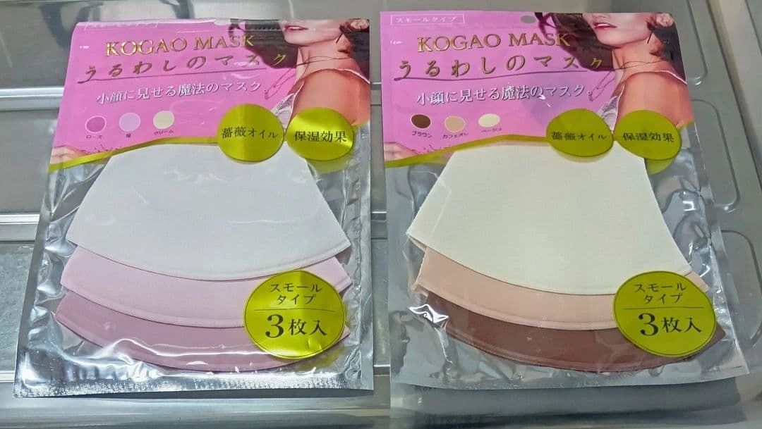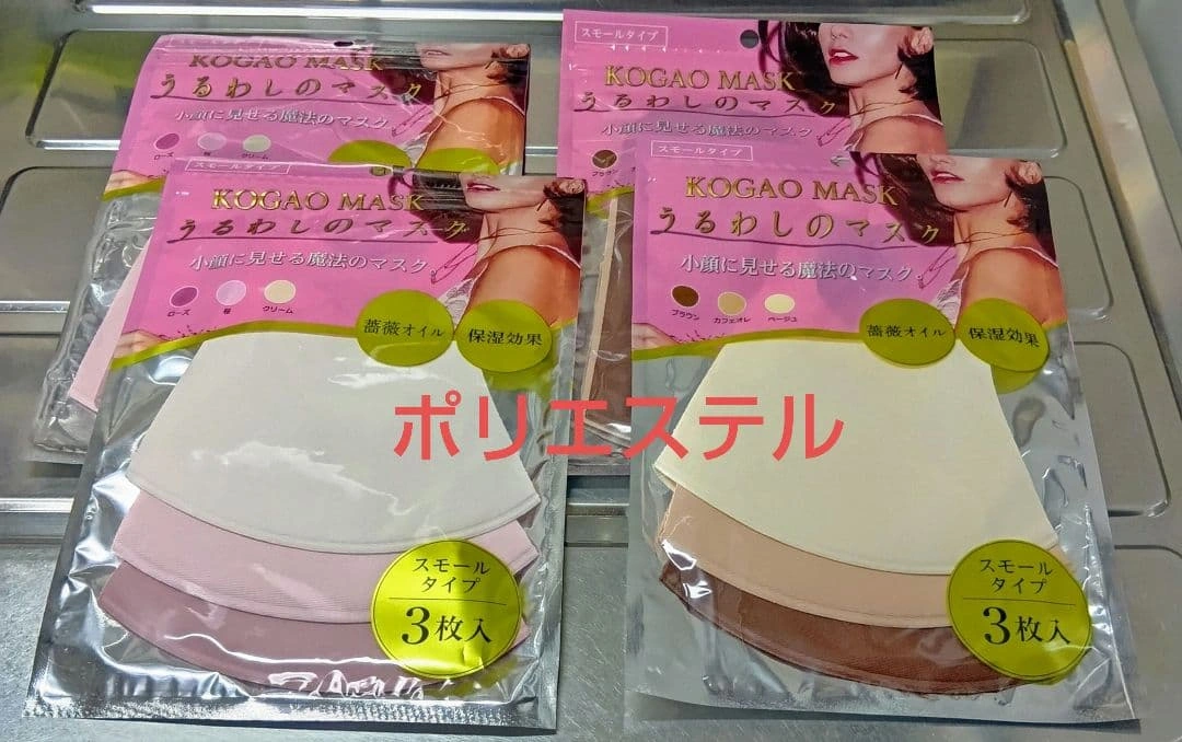 未使用 未開封 スモールサイズのKOGAO MASK、3色入りで洗濯機使用可。 - モデル名: KOGAO MASK うるわしのマスク - 色: ローズ 桜 クリーム - 色: ブラウン カフェオレ ベージュ - 枚数: 各3枚入り✕2袋 計4袋 - 洗濯可: 洗濯機使用可 - 使用用途: 日常使用、保湿 - サイズ: スモールサイズ - 素材: ポリエステル 92% ポリウレタン 8% スモールタイプ と記載してありますが 私の使用感では 特に小さくなく顔すっぽり覆います ご覧いただきありがとうございます。