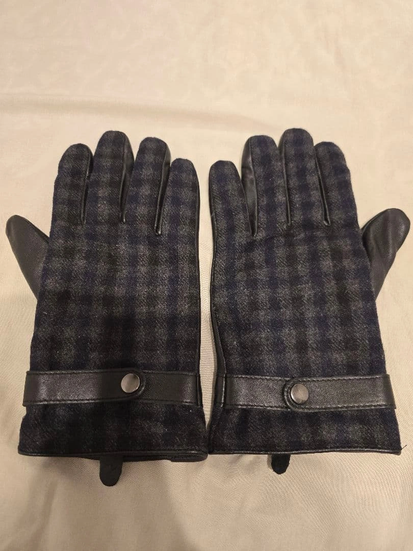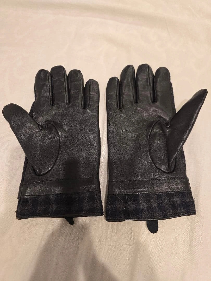 レザーのチェック柄手袋です。カジュアルスタイルに最適かと思います。 - ブランド: Lancerto (ポーランドのブランド) - 色: ネイビー/ブラック - 素材: レザー, ウール - デザイン: チェック柄 - 特徴: スナップボタン付き - サイズ: L - 長さ: 24.5cm - 幅: 10.4cm - 中指の長さ: 9.5cm - 価格: 6500円 ご覧いただき ありがとうございます。 ご希望の方はお気軽にご連絡ください。