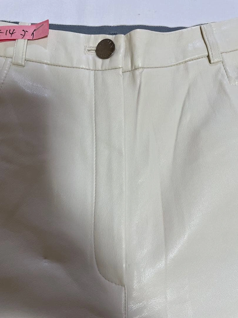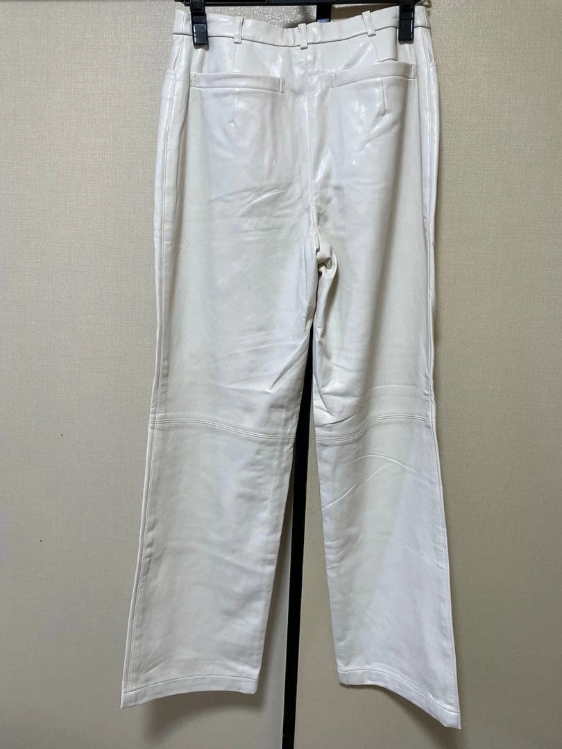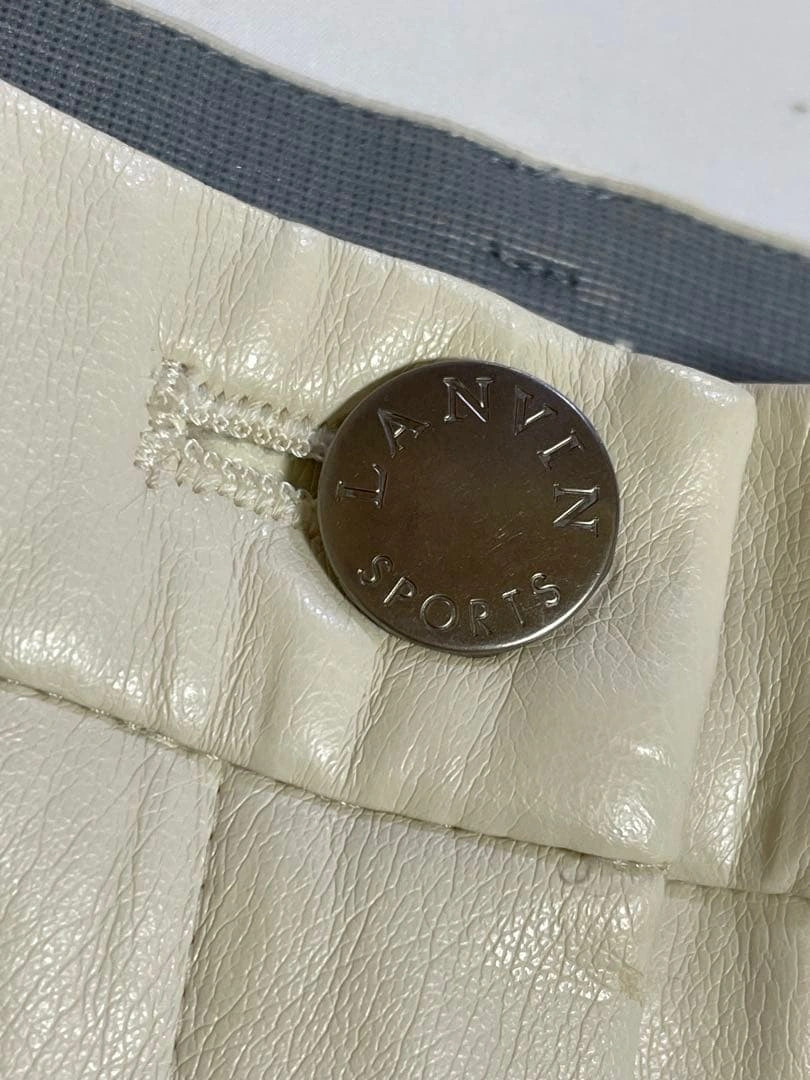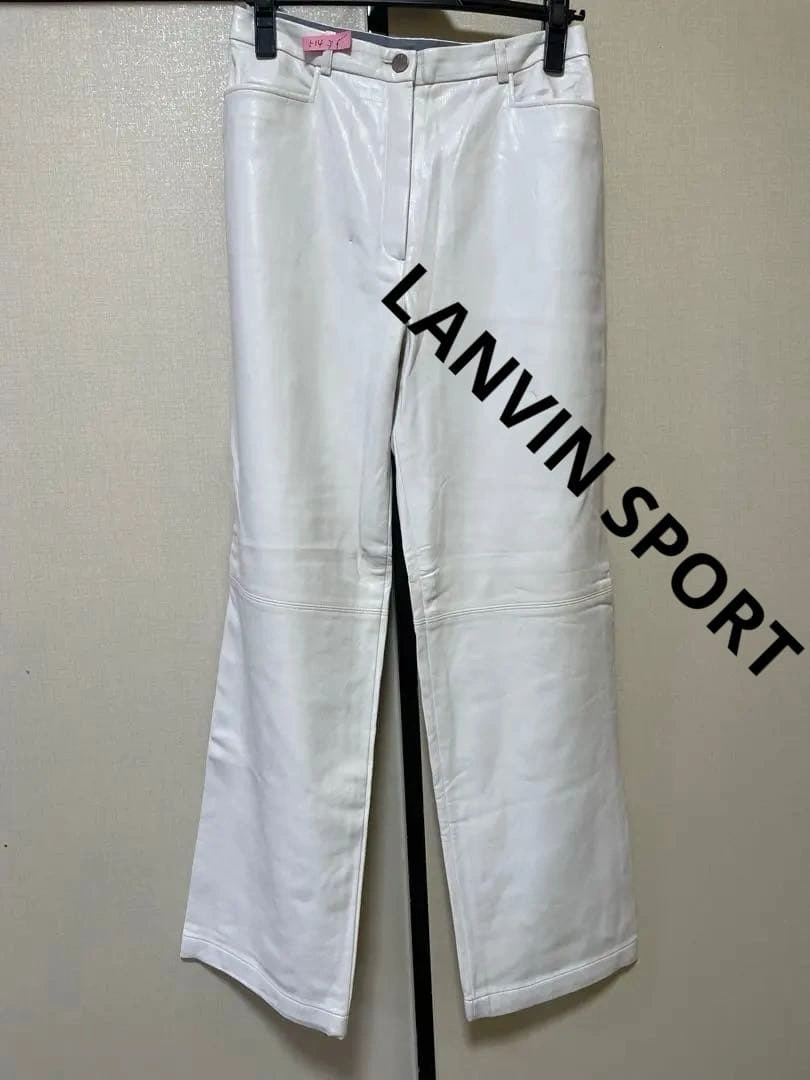 LANVIN SPORT ランバン スポーツ ゴルフパンツ レザー風パンツ(合成皮革) カラー/アイボリー サイズ/38 ウエスト/約34cm 股下/約72cm ベルト通し付き YKKファスナー使用 柔らか素材で履きやすいです(ストレッチ) これからの季節防寒対策に〜 裏側/微裏起毛 【目立った傷や汚れなし】としましたが、合成皮革特有の凹み?折り目?はあります 画像④は畳んだ時のボタン跡だと思います 気になさらない方のご購入をお願い致します 1〜2回の着用だと思います ランバン パンツは沢山有り記憶が曖昧です クリーニング済み、自宅保管品です。 ご希望の方はお気軽にご連絡ください。