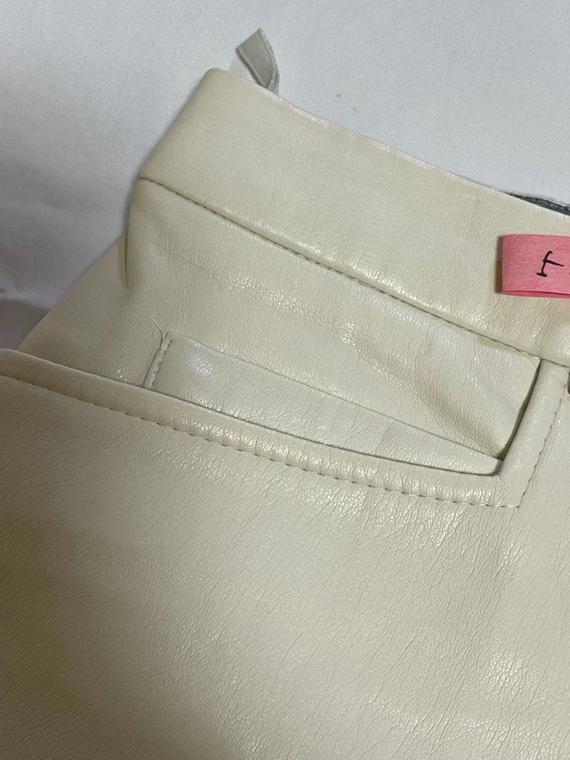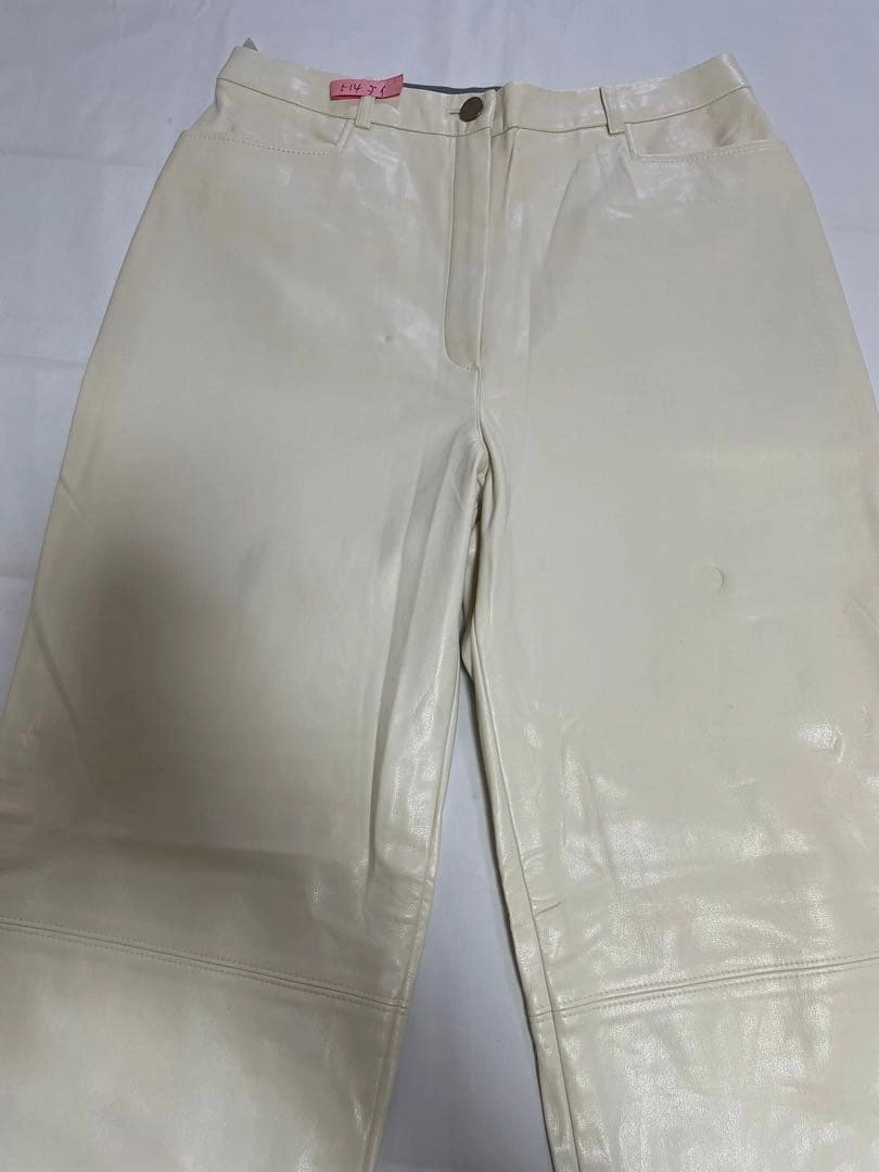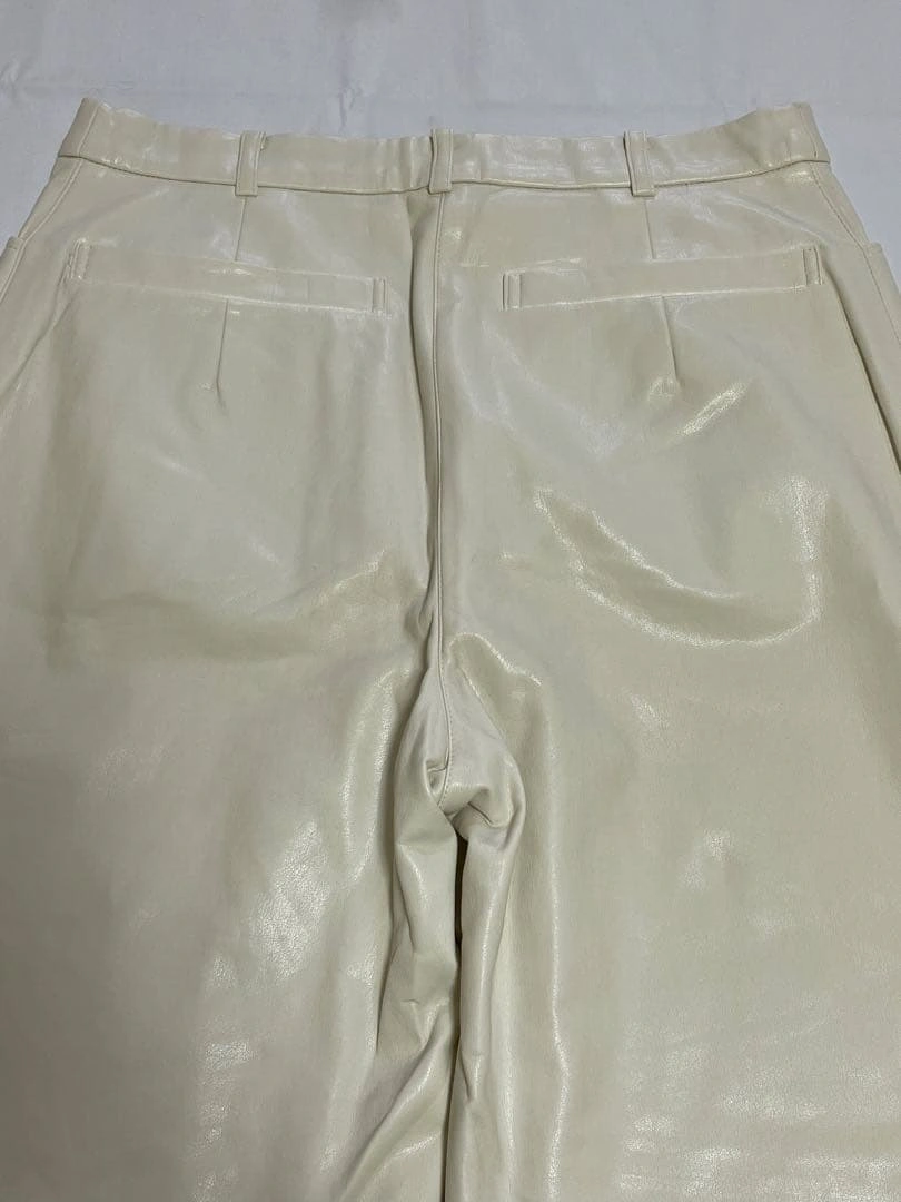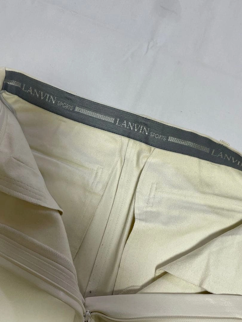 LANVIN SPORT ランバン スポーツ ゴルフパンツ レザー風パンツ(合成皮革) カラー/アイボリー サイズ/38 ウエスト/約34cm 股下/約72cm ベルト通し付き YKKファスナー使用 柔らか素材で履きやすいです(ストレッチ) これからの季節防寒対策に〜 裏側/微裏起毛 【目立った傷や汚れなし】としましたが、合成皮革特有の凹み?折り目?はあります 画像④は畳んだ時のボタン跡だと思います 気になさらない方のご購入をお願い致します 1〜2回の着用だと思います ランバン パンツは沢山有り記憶が曖昧です クリーニング済み、自宅保管品です。 ご希望の方はお気軽にご連絡ください。