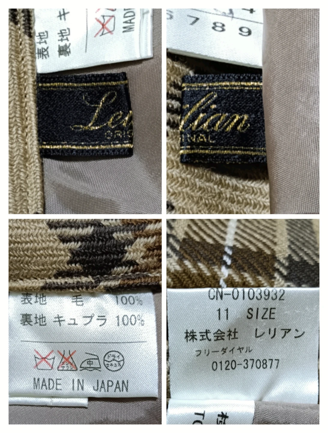 ご覧いただきありがとうございます! ​レリアン(Leilian)の、上質なウールを贅沢に使用したロングスカートです。 表地は毛(ウール)100%。厚手でしっかりとした生地感で暖かく、秋冬のコーディネートに最適です。裏地は滑りの良い**キュプラ100%**で、着心地も抜群です。 腰回りはすっきりとし、裾に向かって緩やかに広がるエレガントなAラインシルエット。マキシ丈に近いロング丈で、上品でクラシカルな雰囲気を演出します。 □商品名□ ​​Leilian レリアン ウール100% ロングスカート 11号 チェック柄 □ブランド□ Leilian レリアン □表記サイズ□ 11(Lサイズ相当) □実寸サイズ(cm) □ 【平置きサイズ】 ウエスト:33 着丈:80 ※実寸につきまして多少の誤差はご了承ください。 ※表記サイズだけではなく実寸のサイズをご確認ください。 □カラー□ ブラウン、ベージュ、ダークブラウン系(チェック柄) □素材□ 表地:毛(ウール)100% ​裏地:キュプラ 100% □コンディション□ ボタンの留め具が片方取れています。 目立った汚れやダメージなど特にございません。 ※汚れはできる限り写真にて掲載しております。まずは画像をご確認ください。 どうぞよろしくお願い致します。 □商品管理番号□ P6-W-5565