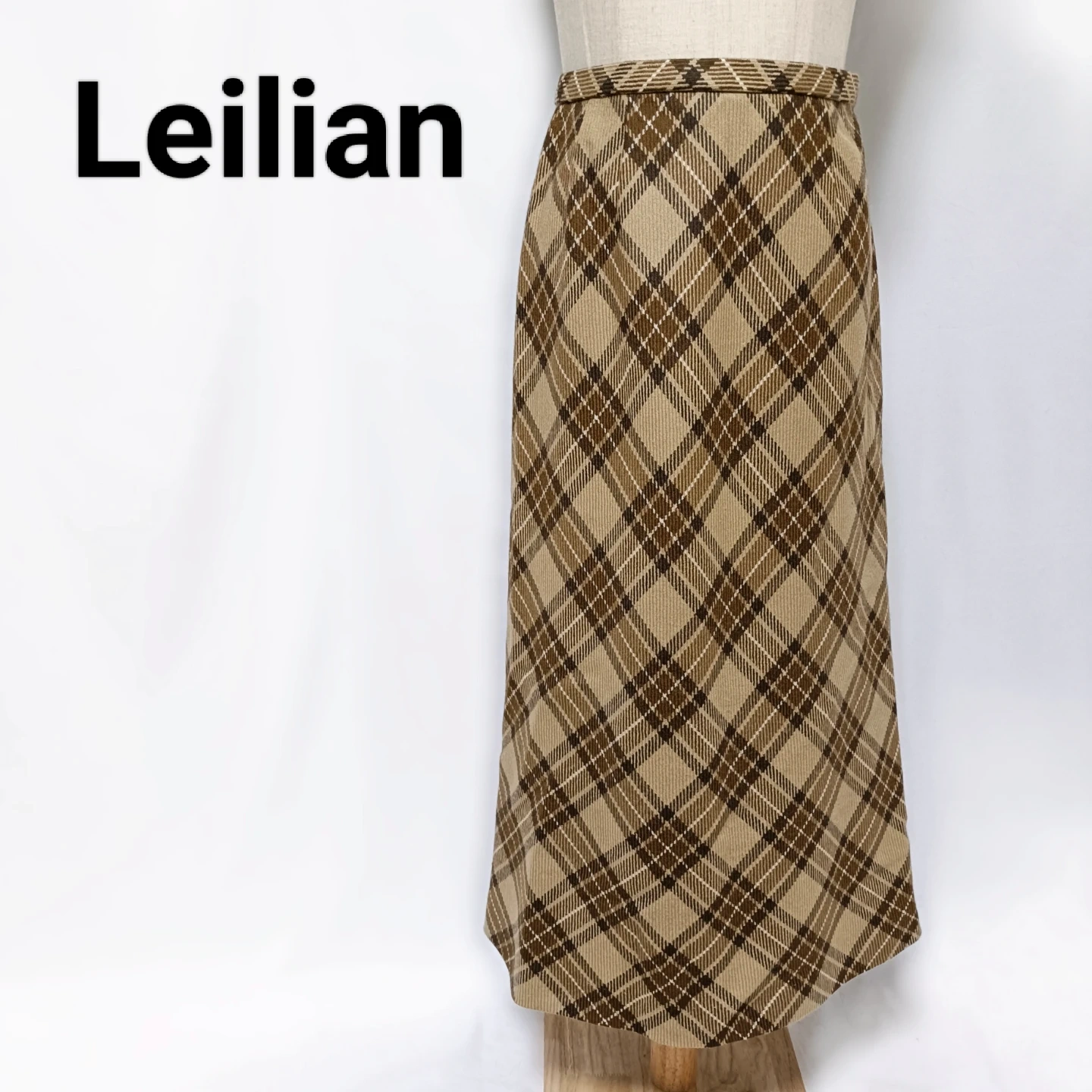 Leilian レリアン ウール100% ロングスカート 11号 チェック柄
