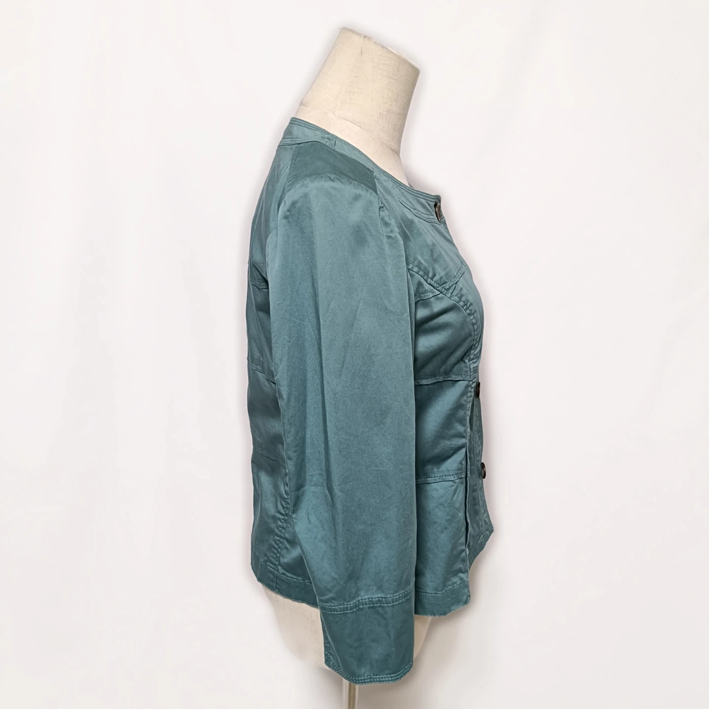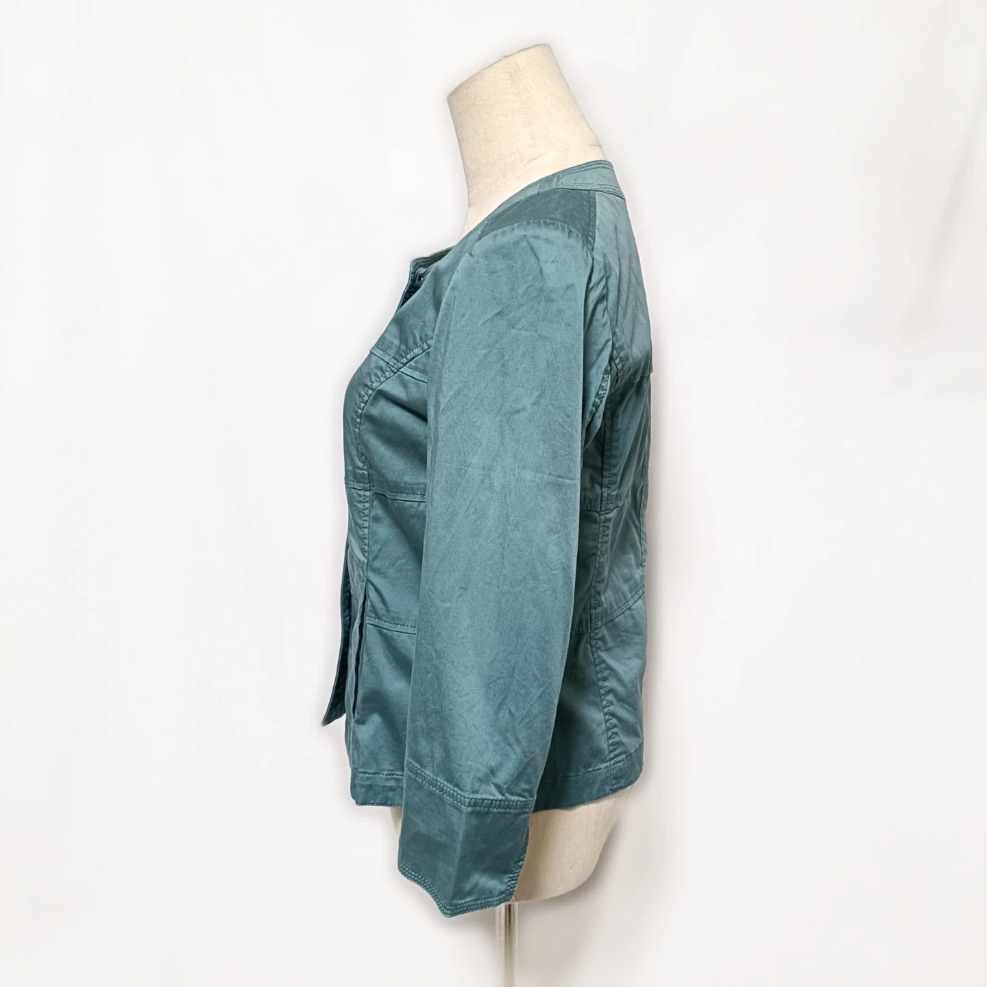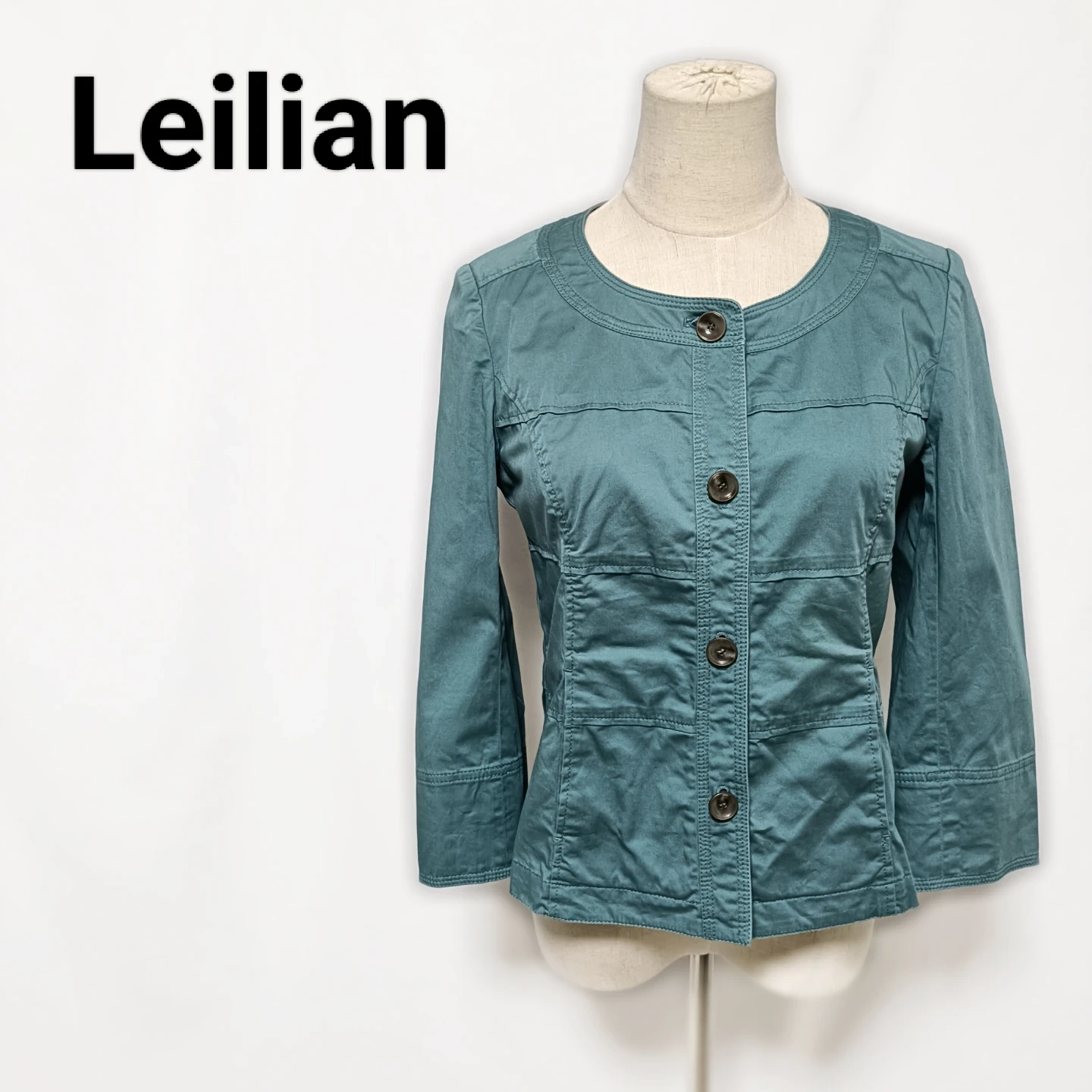 ​【Leilian】レリアン ノーカラー 七分袖ジャケット 9号 青緑