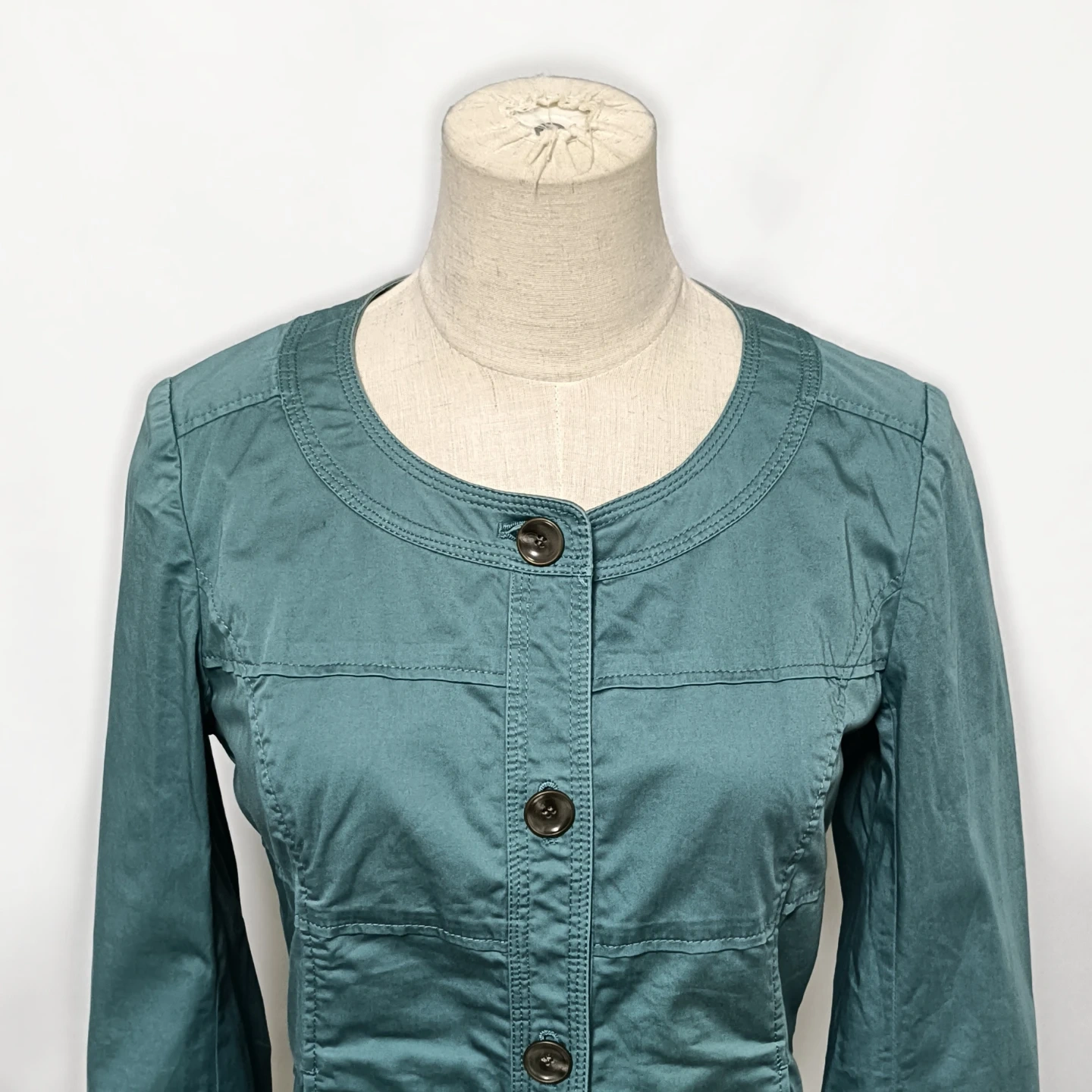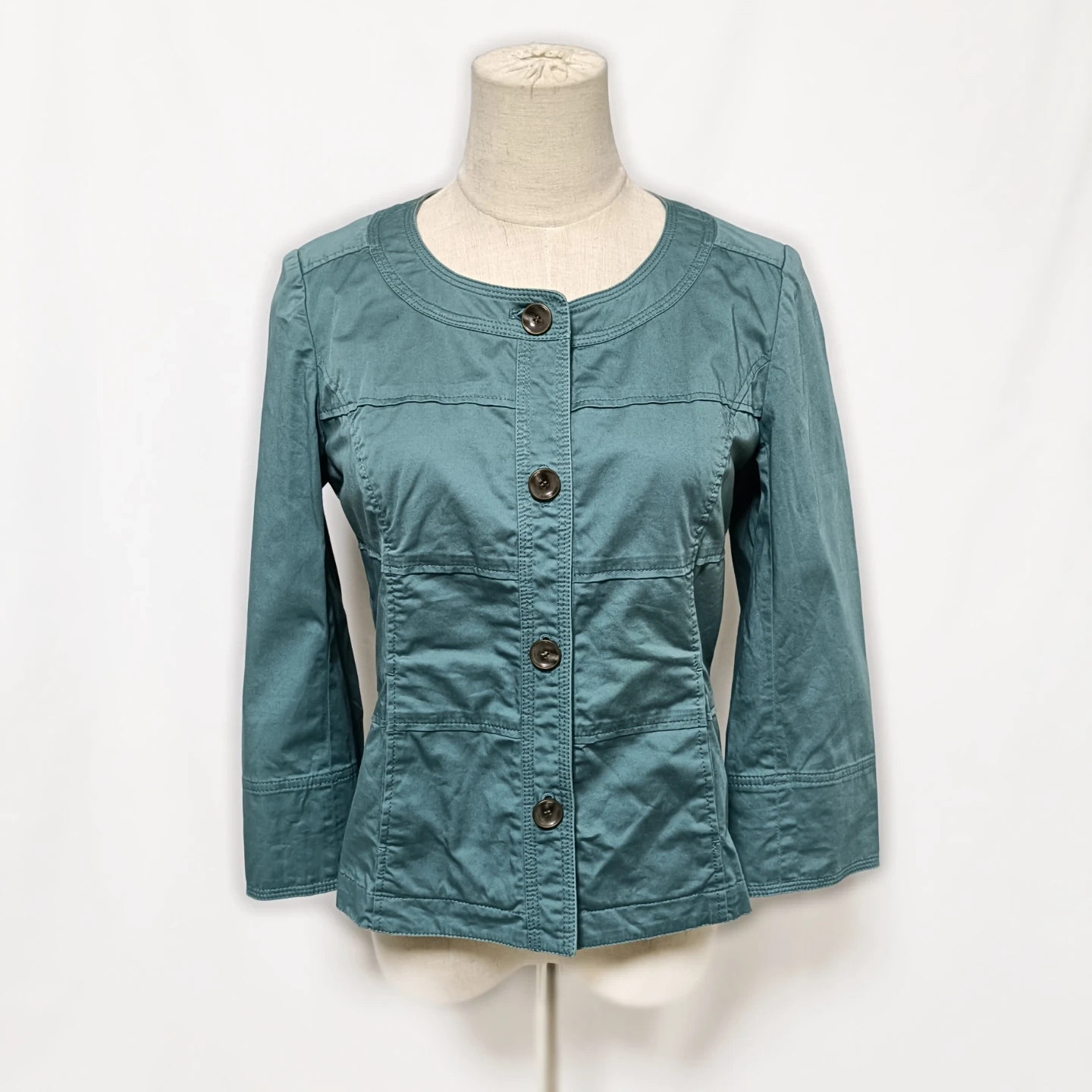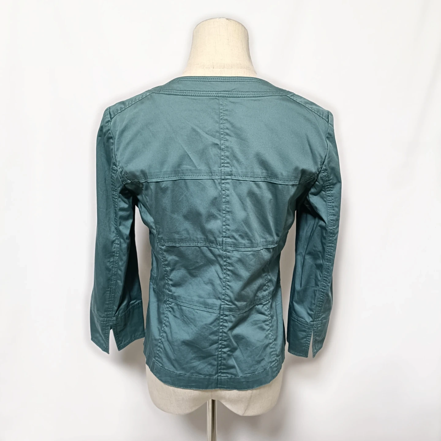 ​【Leilian】レリアン ノーカラー 七分袖ジャケット 9号 青緑