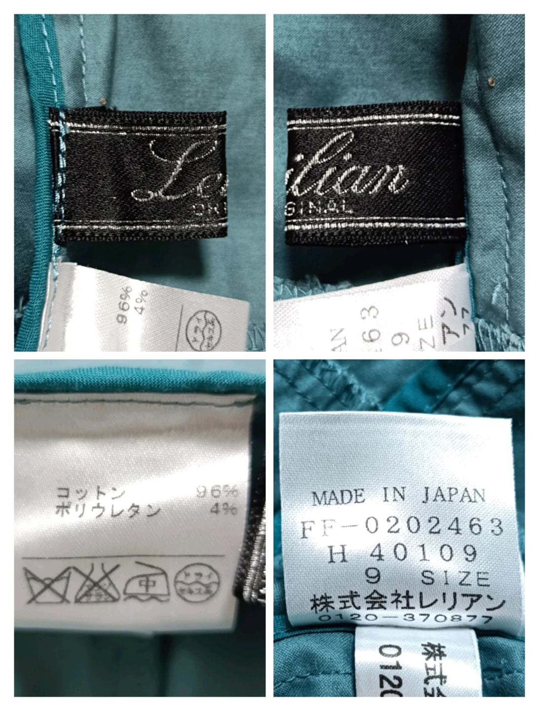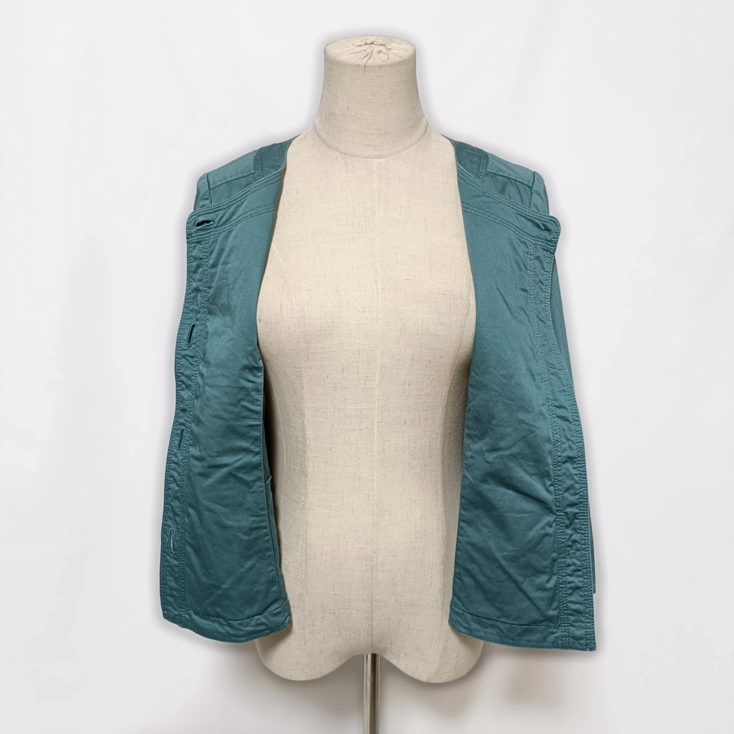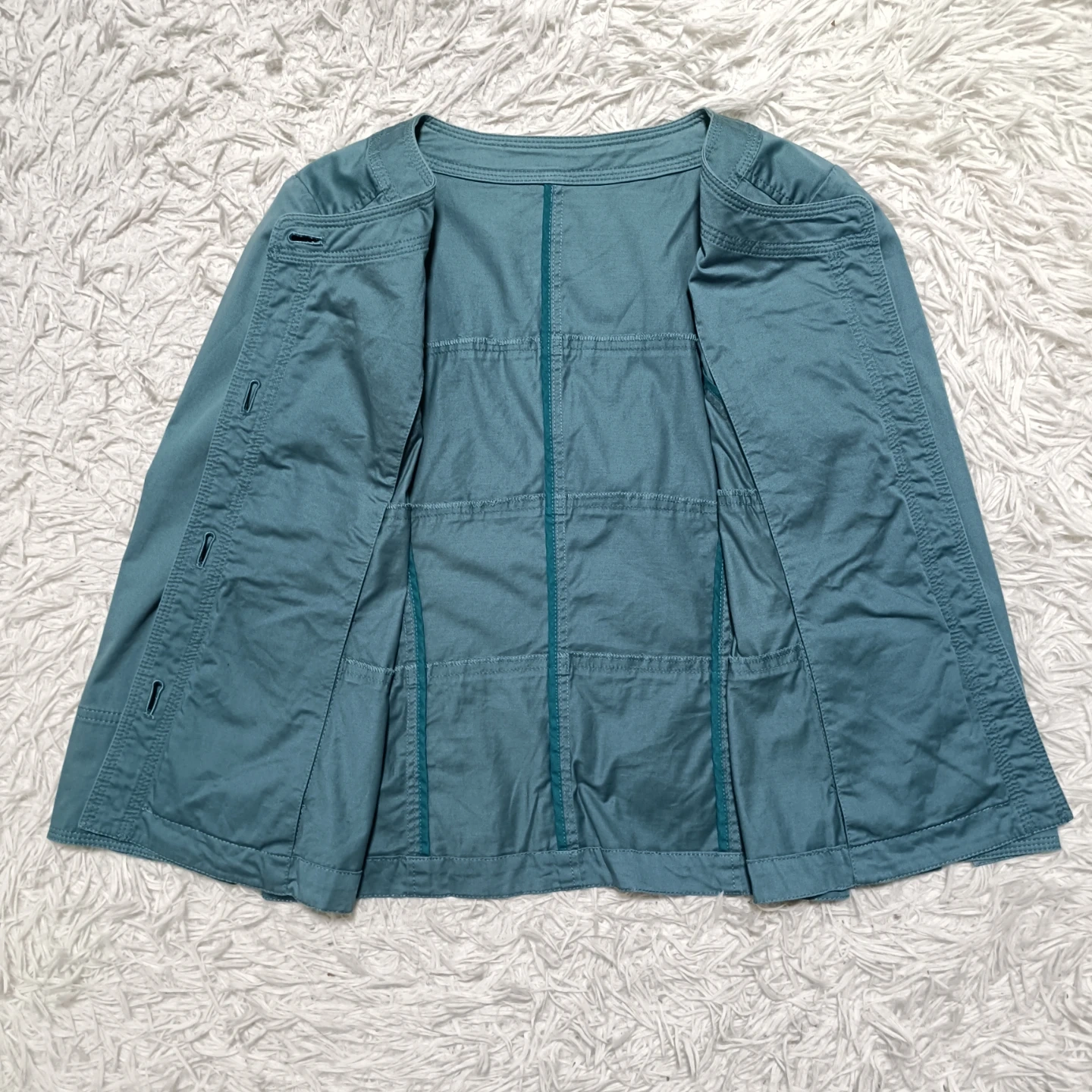 ご覧いただきありがとうございます! Leilian (レリアン) の上質なノーカラージャケットです。 きれいな**青緑色(ティールグリーン)**と、すっきりとしたノーカラーデザインが特徴の、レリアンらしい上品な一着です。 コットンをベースに**ポリウレタンが4%**含まれているため、程よいストレッチ性があり、ストレスなく快適に着用いただけます。 □商品名□ ​​【Leilian】レリアン ノーカラー 七分袖ジャケット 9号 青緑 □ブランド□ Leilian レリアン □表記サイズ□ 9号(Mサイズ相当) □実寸サイズ(cm) □ 着丈:52 肩幅:38 身幅:46 袖丈:48 ※実寸につきまして多少の誤差はご了承ください。 ※表記サイズだけではなく実寸のサイズをご確認ください。 □カラー□ 青緑色 (ティールグリーン、ターコイズブルー系) □素材□ 綿 96% ポリウレタン 4% □コンディション□ 目立った汚れやダメージなど特にございません。 ※汚れはできる限り写真にて掲載しております。まずは画像をご確認ください。 どうぞよろしくお願い致します。 □商品管理番号□ GG2-W-5537