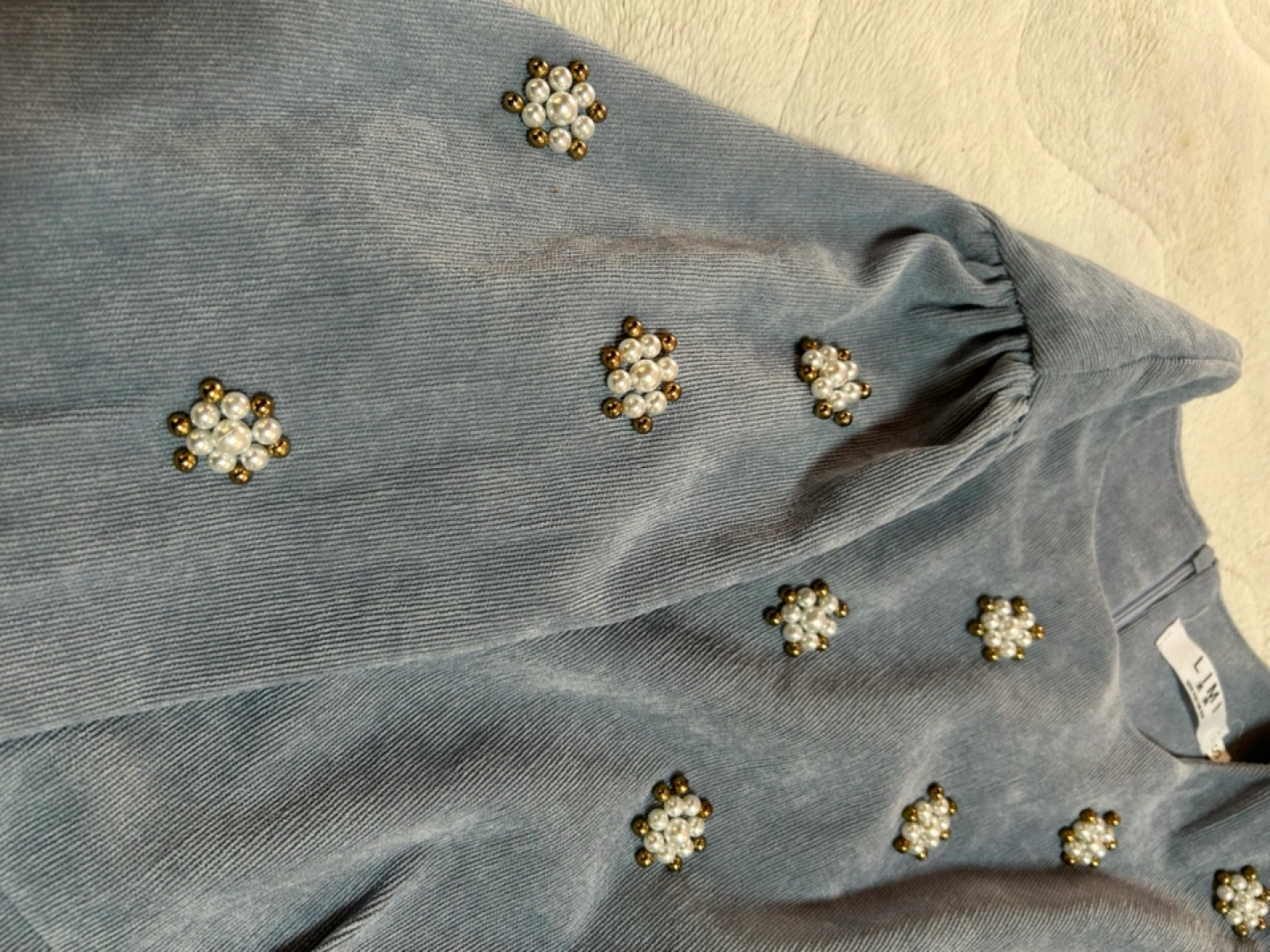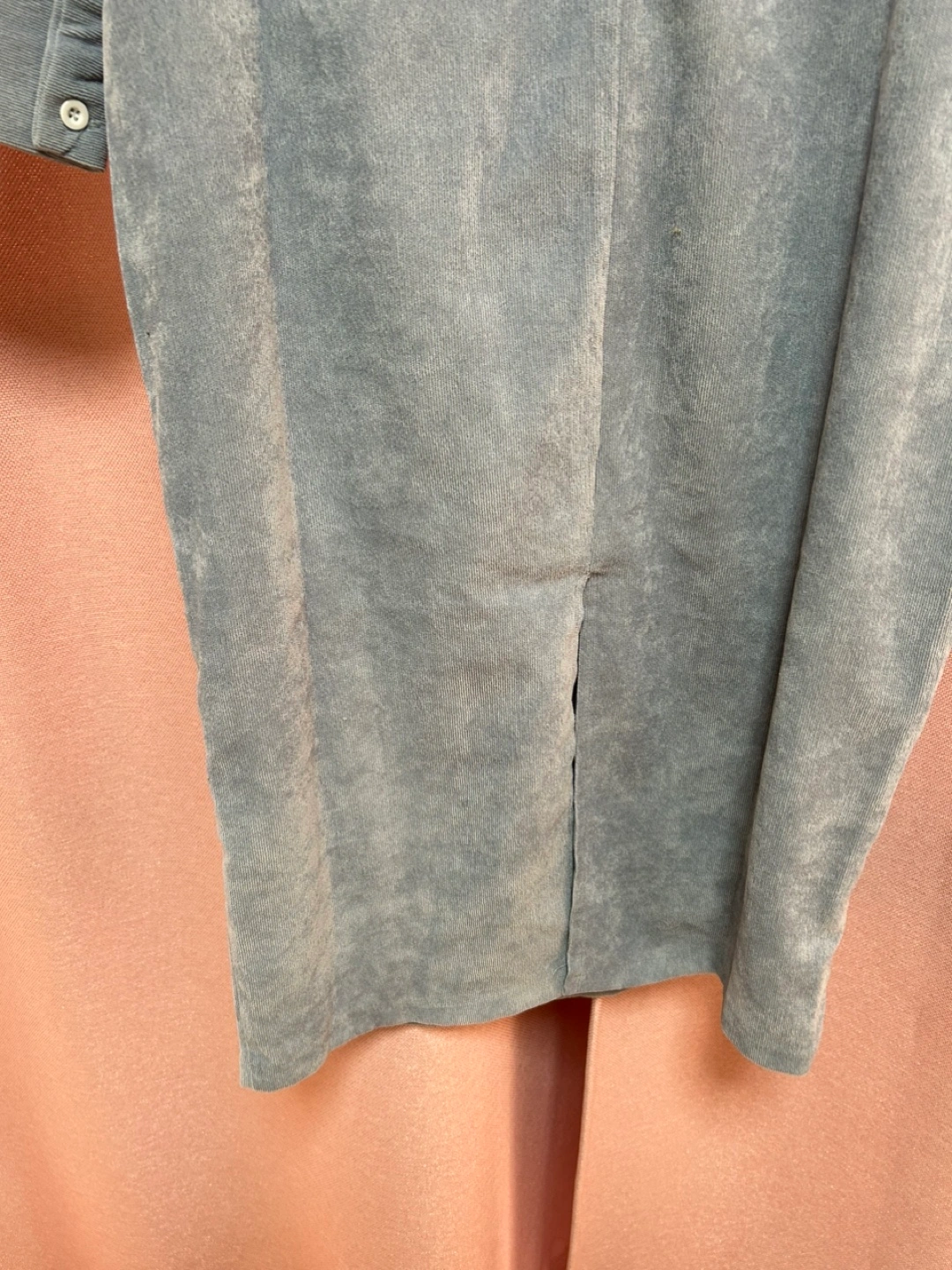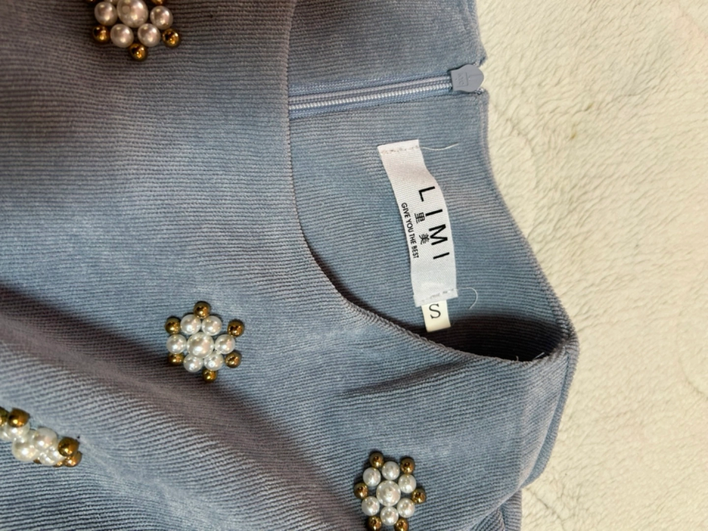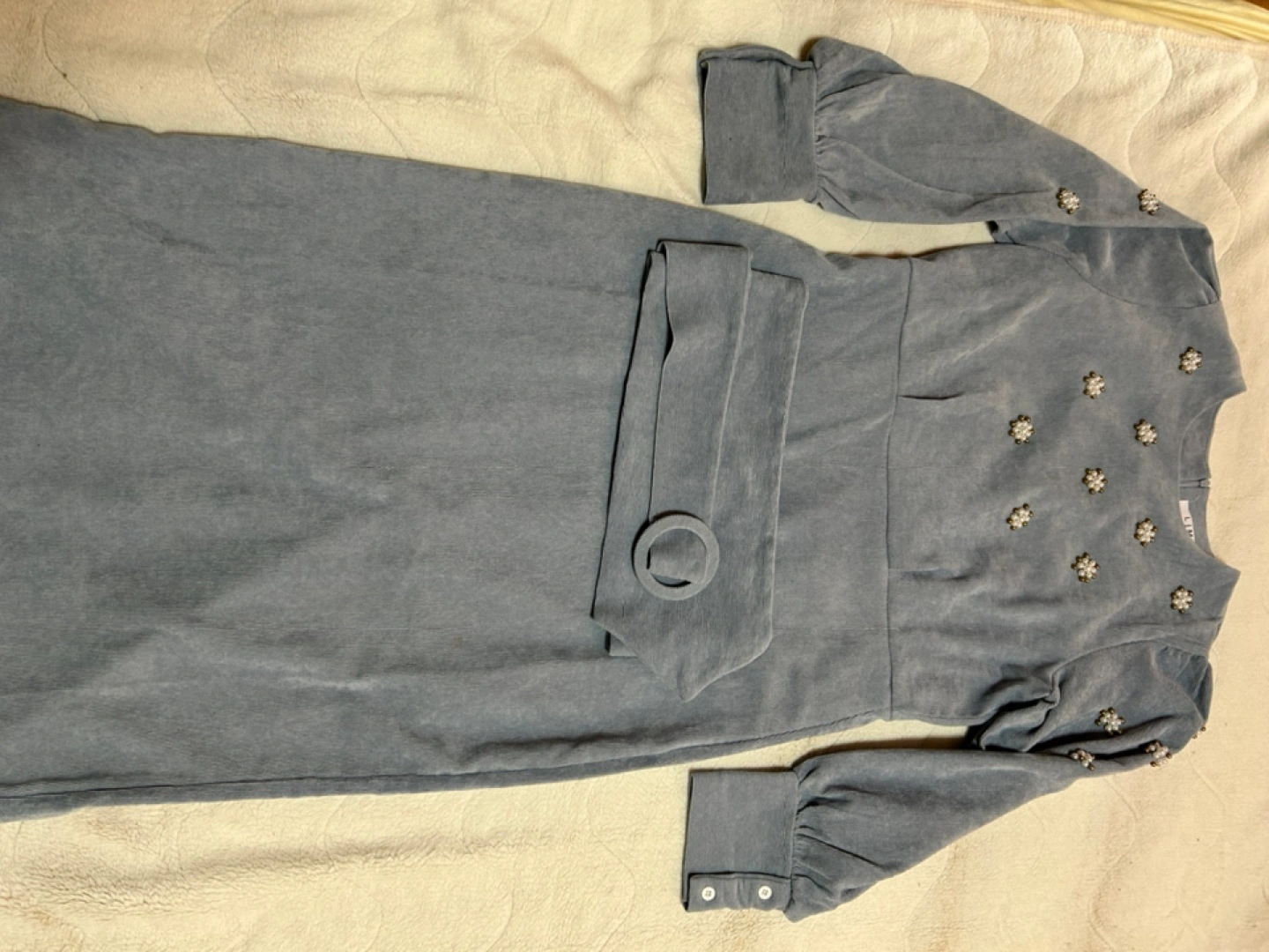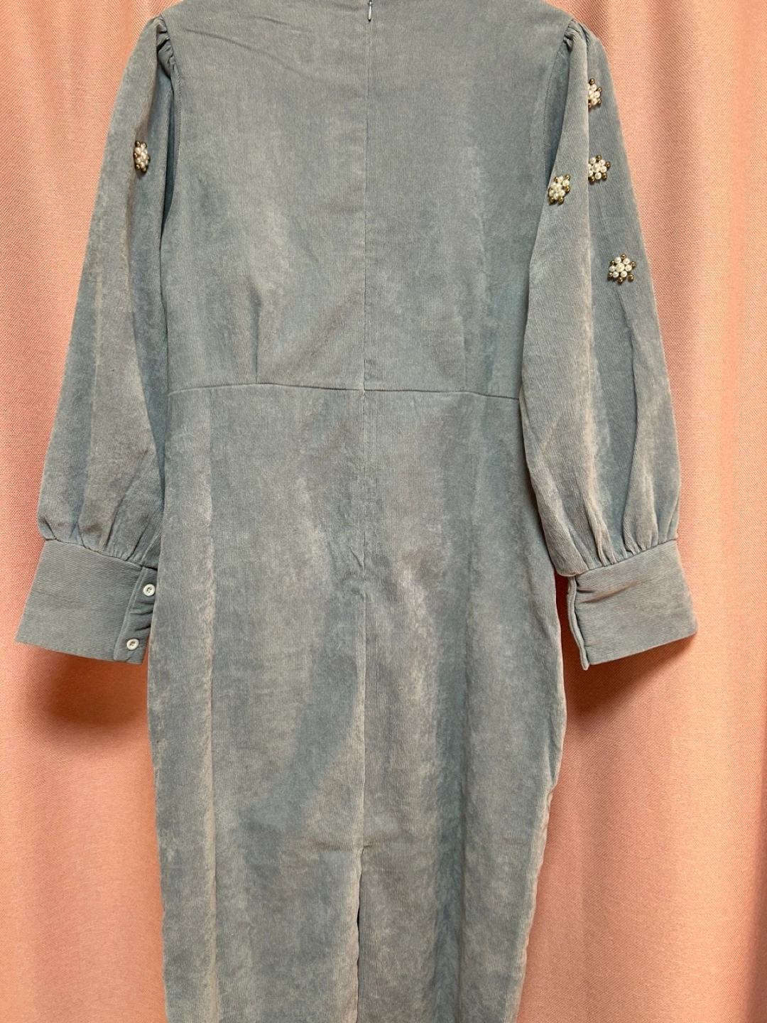 ・ブランド:LiMi ・サイズ:S ・色:ブルー ・長袖 ・コーデュロイ生地 ・パール風の飾り付き ・ベルト付き スカートの後ろスリットが入ってます 丈約108センチ 色2番目の写真になります