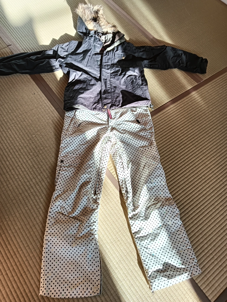 Local Motion製のダークグレーのスノーボードウェア、フリース内側とファー付きフードが特徴。 サイズは160cmくらいです。 撥水性はないので撥水スプレーを使用してください。 - ジャケットのブランド: Local Motion - パンツのデザイン: ドット柄 - ジャケットの色: ダークグレー - ジャケットの内側の素材: フリース - ジャケットのフード: ファー付き - パンツのスタイル: スノーボード用 - ジャケットのポケット: フロントポケットあり ご覧いただきありがとうございます。