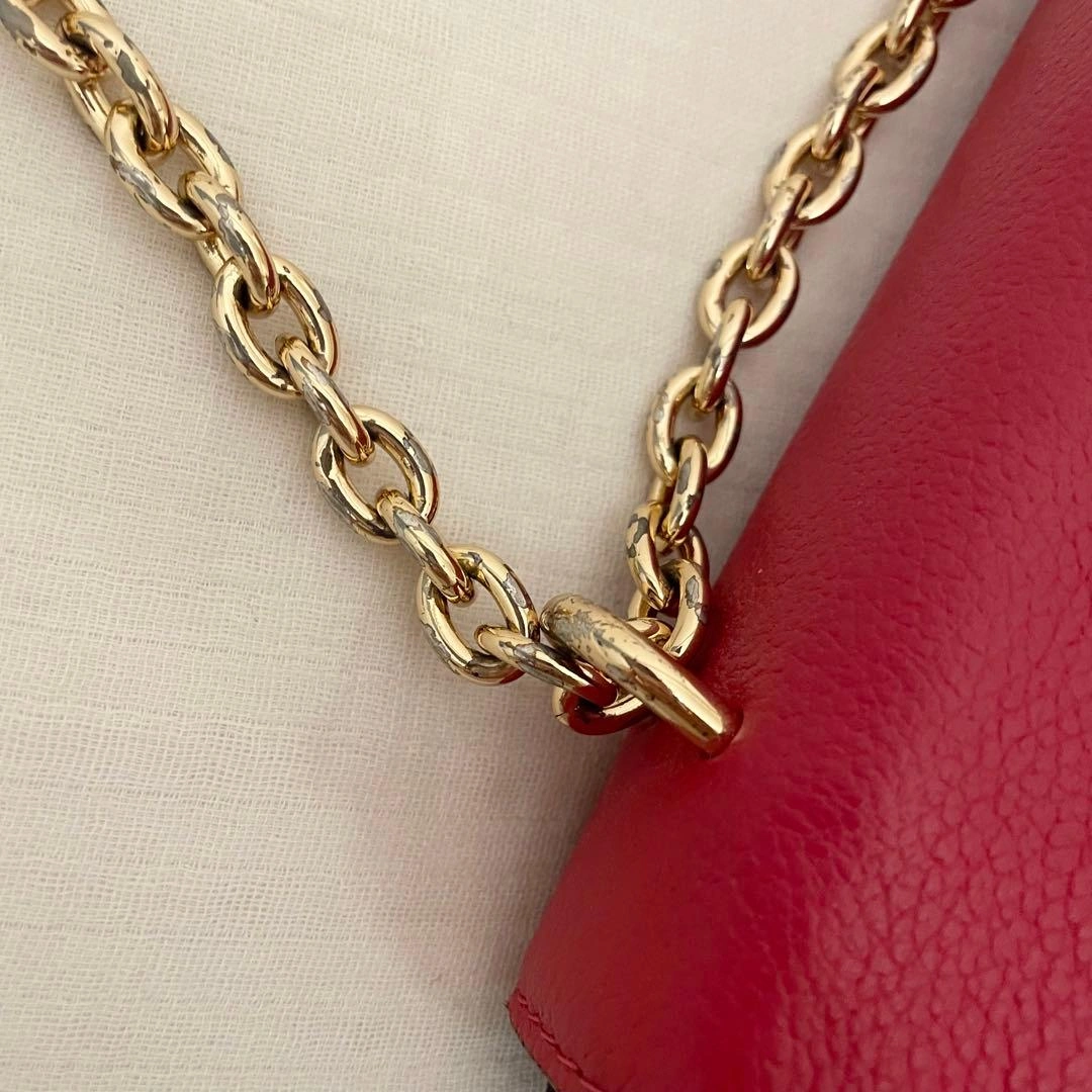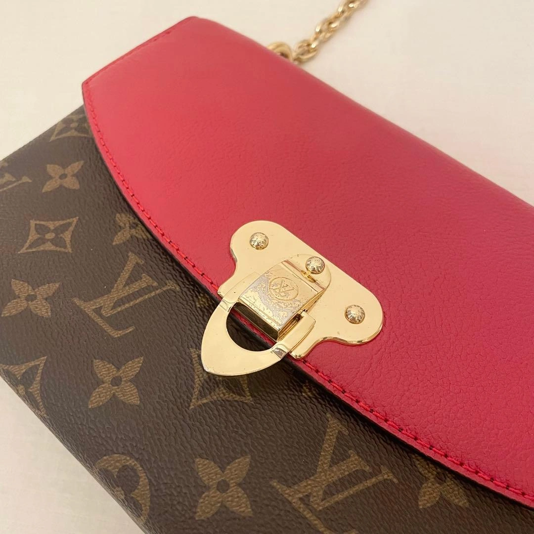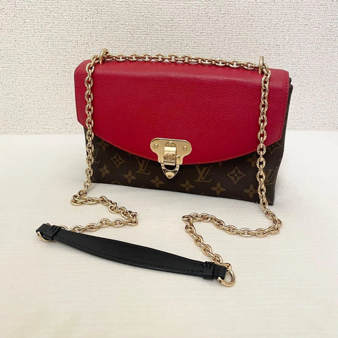 すり替え防止のためノークレームノーリターンでお願いいたします。 LOUISVUITTON ルイヴィトン サンプラシード チェーンショルダーバッグ パイソン モノグラム 【タイプ】カバン 斜め掛け チェーンバッグ ポシェット フラップ 【形状】ショルダーバッグ 【型番】M43713 【カラー】ブラウン x レッド 【サイズ】W約24.5cm×H約15cm×D約6.5cm 実寸サイズには多少の誤差がある場合があります。 【素材】モノグラムキャンバス 【仕様】開閉式:マグネット式 【商品説明】Wチェーンバッグとしてもお使いいただけるショルダーバッグ。 【商品状態】 数年使用したため角スレ、ひび割れ、チェーン・金属部分ハゲがあります。 その他目立つ傷や汚れはありません。 写真をご確認よろしくお願い致します。 真贋済み正規品 自宅保管品になります。 少しでも気になる点がありましたら、お気軽にコメント下さい。 素人撮影の為、小さな傷、汚れ等の見落としがある場合が御座います。 あくまで中古品であることをご理解の上、宜しくお願い致します。