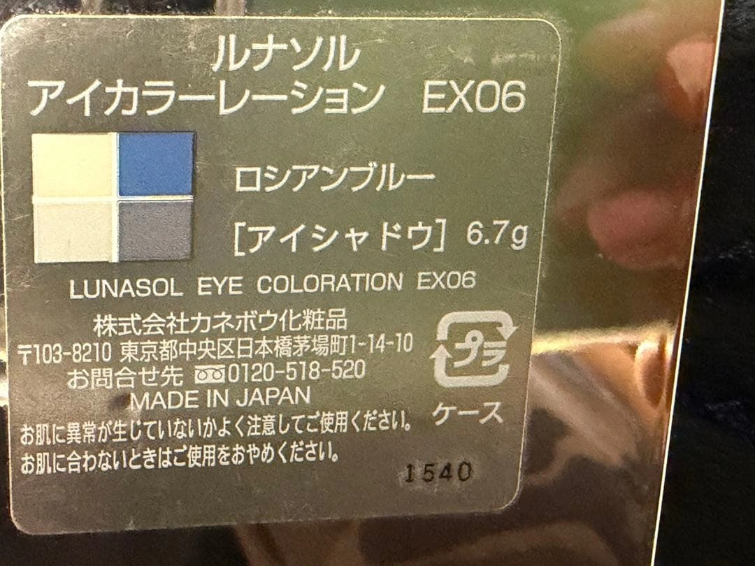 あたたかさ1度試し塗りをしたきり、使用していません。 ペットや喫煙者はおりませんので、ご安心ください。 商品の外装梱包には、リサイクル品を使用する場合がございます。予めご了承いただけますようお願い申し上げます。 ブランド: LUNASOL 色: グレー系、ブルー系 パレットタイプ: アイシャドウパレット 付属品: スポンジ applicator デザイン: ミラー付き、シンプルな外観 ご覧いただきありがとうございます。 人気シリーズ···アイカラーレーション ご希望の方はお気軽にご連絡ください。