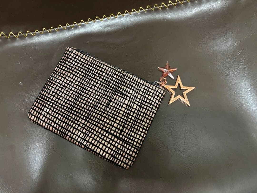あたたかさグリッター仕上げのゴールドとブラックのチェック柄ポーチです。星型チャームが付いています。 - 色: ブラックとホワイ トのチェック柄 - 装飾: 星型のチャーム - 色: グリッター仕上げのゴールド - 装飾: 星型のチャーム - 色: グリッター仕上げのゴールド - 装飾: 星型のチャーム ご覧いただきありがとうございます。 ご希望の方はお気軽にご連絡ください。