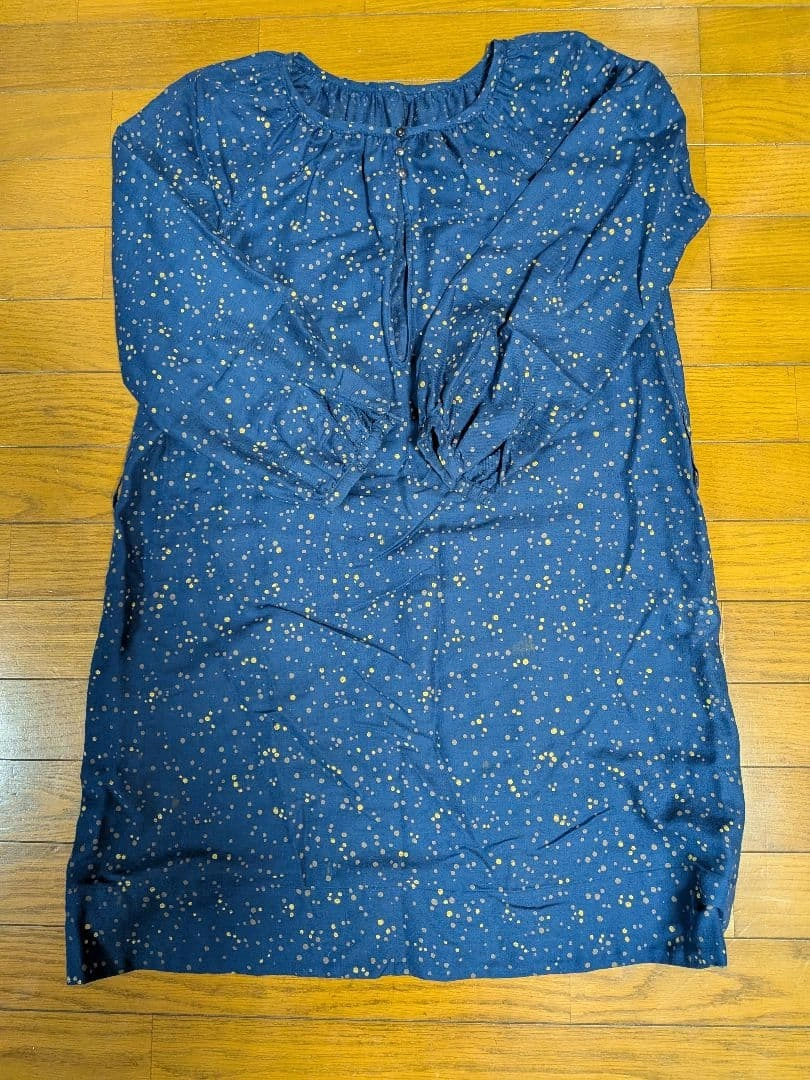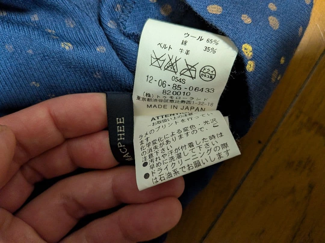 ゴールドやブラウンのドットがキレイなウール混素材の膝丈ワンピースです。 ベルトは付属しませんが、ループがあるため、お手持ちのベルトが使えると思います。