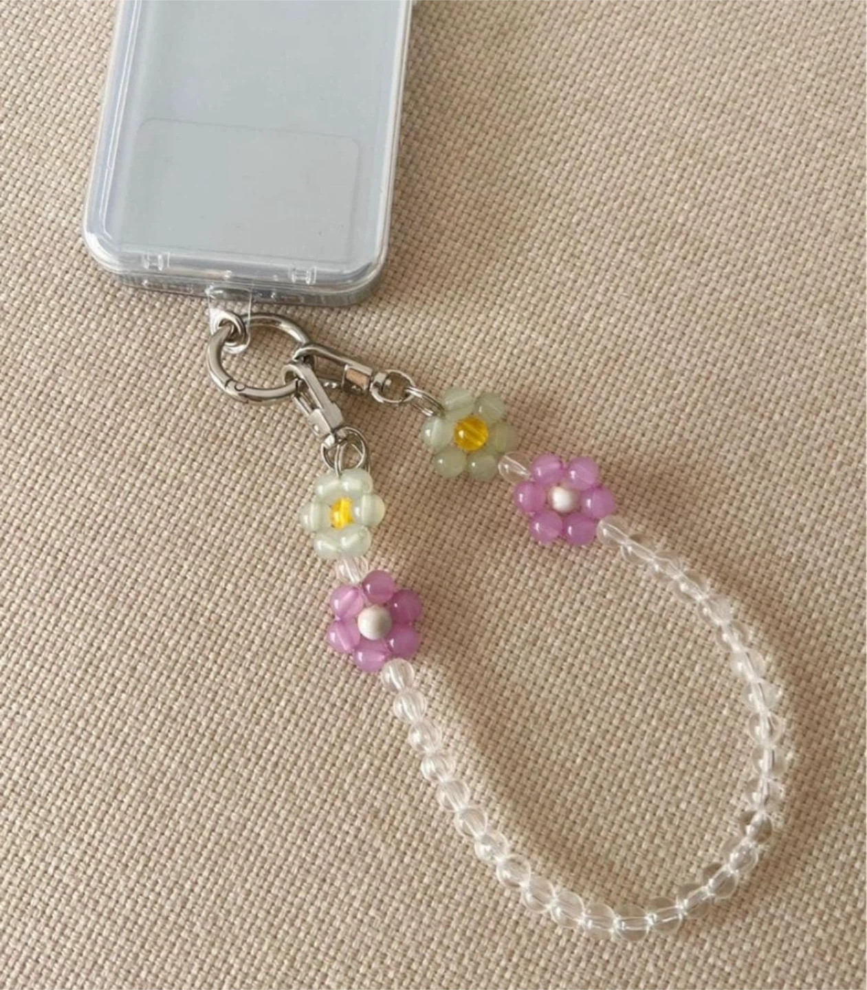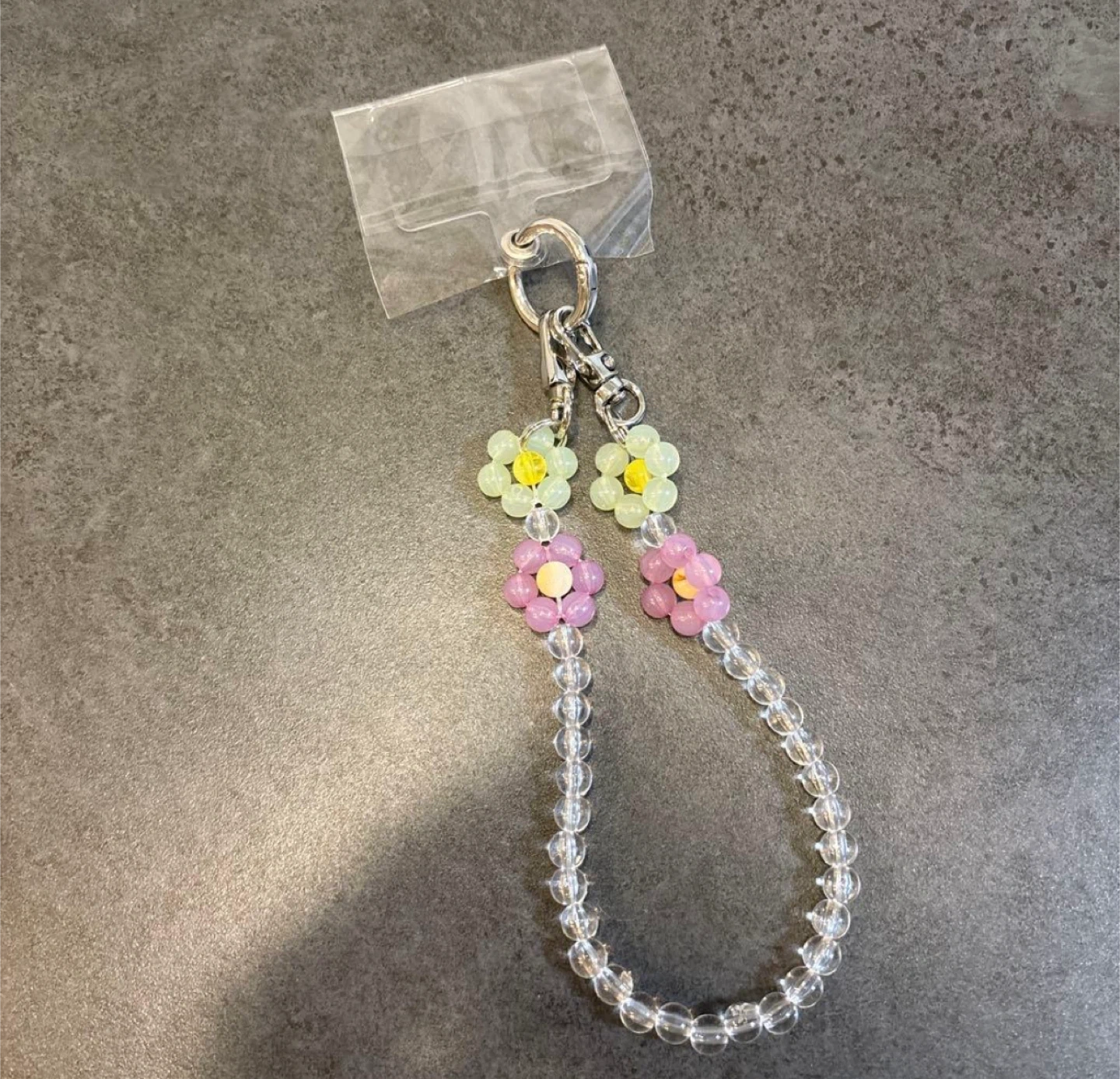 カラフルな花のモチーフが特徴のストラップ。 - デザイン: 花のモチーフが付いたストラップ - 素材: 透明なビーズとカラフルな花のビーズ - カラー: ピンク、イエロー、グリーン - デザイン: 花のモチーフが付いたストラップ - 素材: 透明なビーズとカラフルな花のビーズ - カラー: ピンク、イエロー、グリーン ストラップシート付きのハンドルストラップ! 人気のモバイルショルダーから新しいデザインが登場! ぷらんと手持ちスタイルやモバイルグリップ替わりにおすすめです♪ ご覧いただきありがとうございます。