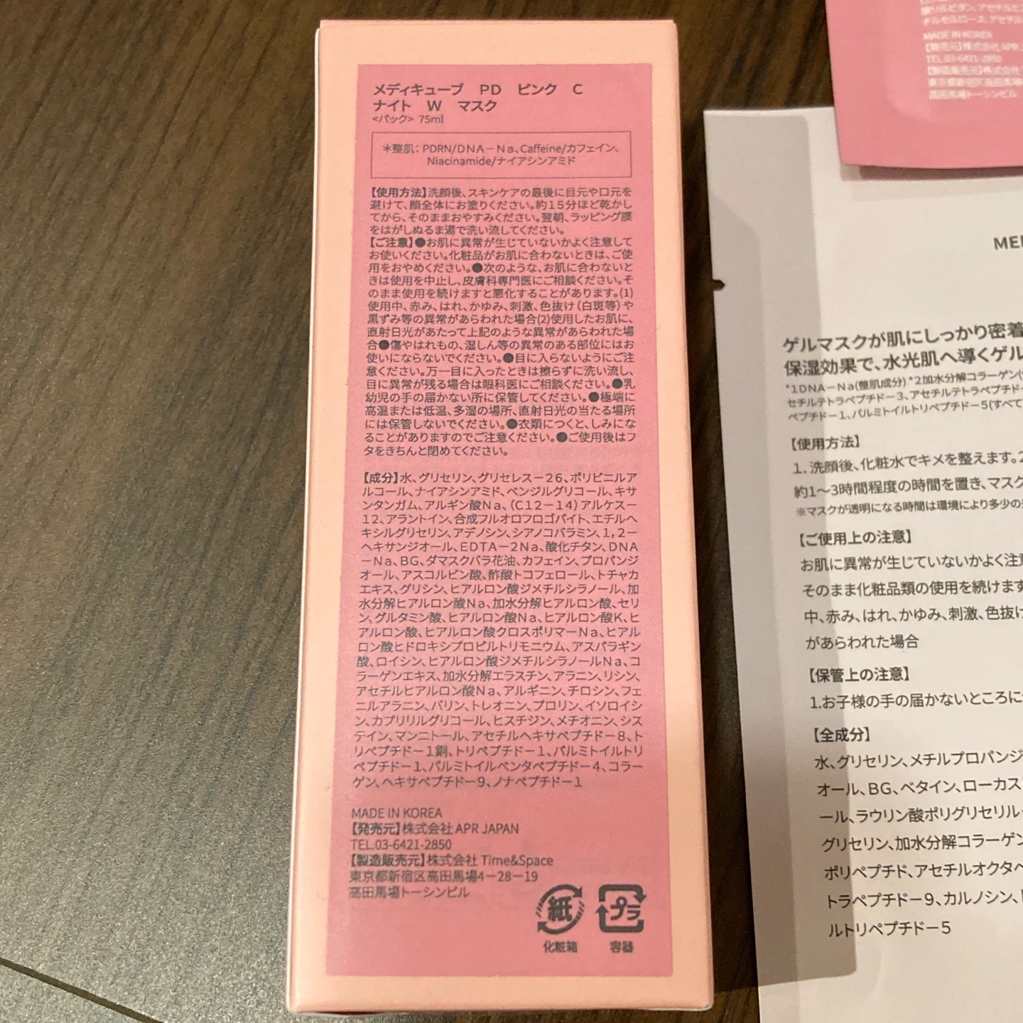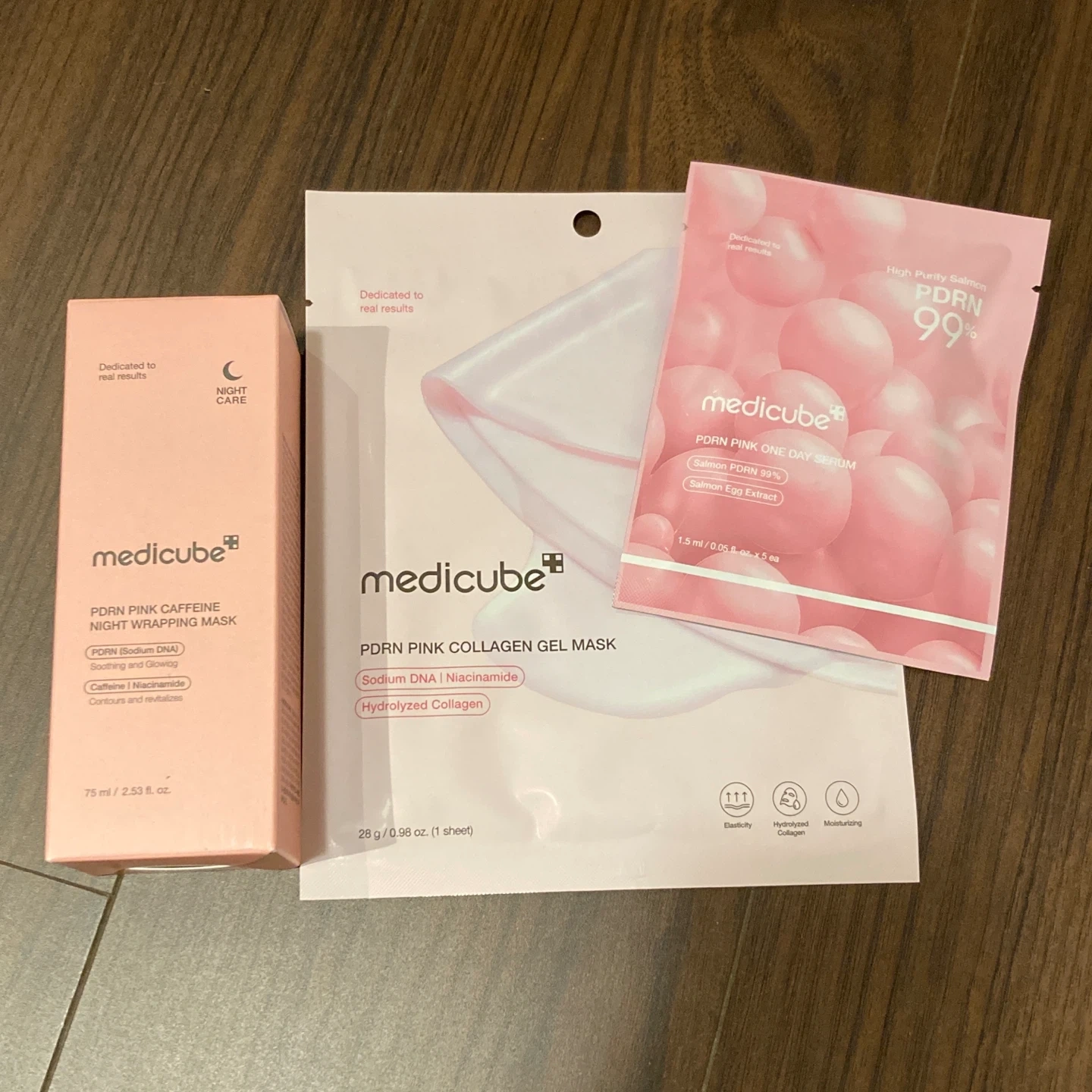 メディキューブのスキンケアセットです。 ・PDRN ピンクカフェイン ナイトラッピングマスク 75ml ・PDRN ピンクコラーゲンゲルマスク 1枚 ・PDRN ピンクワンデーセラム 1.5ml ×5本 受け渡し場所:三宿神社入口、世田谷区立池尻三丁目公園、どちらかが可能です。
