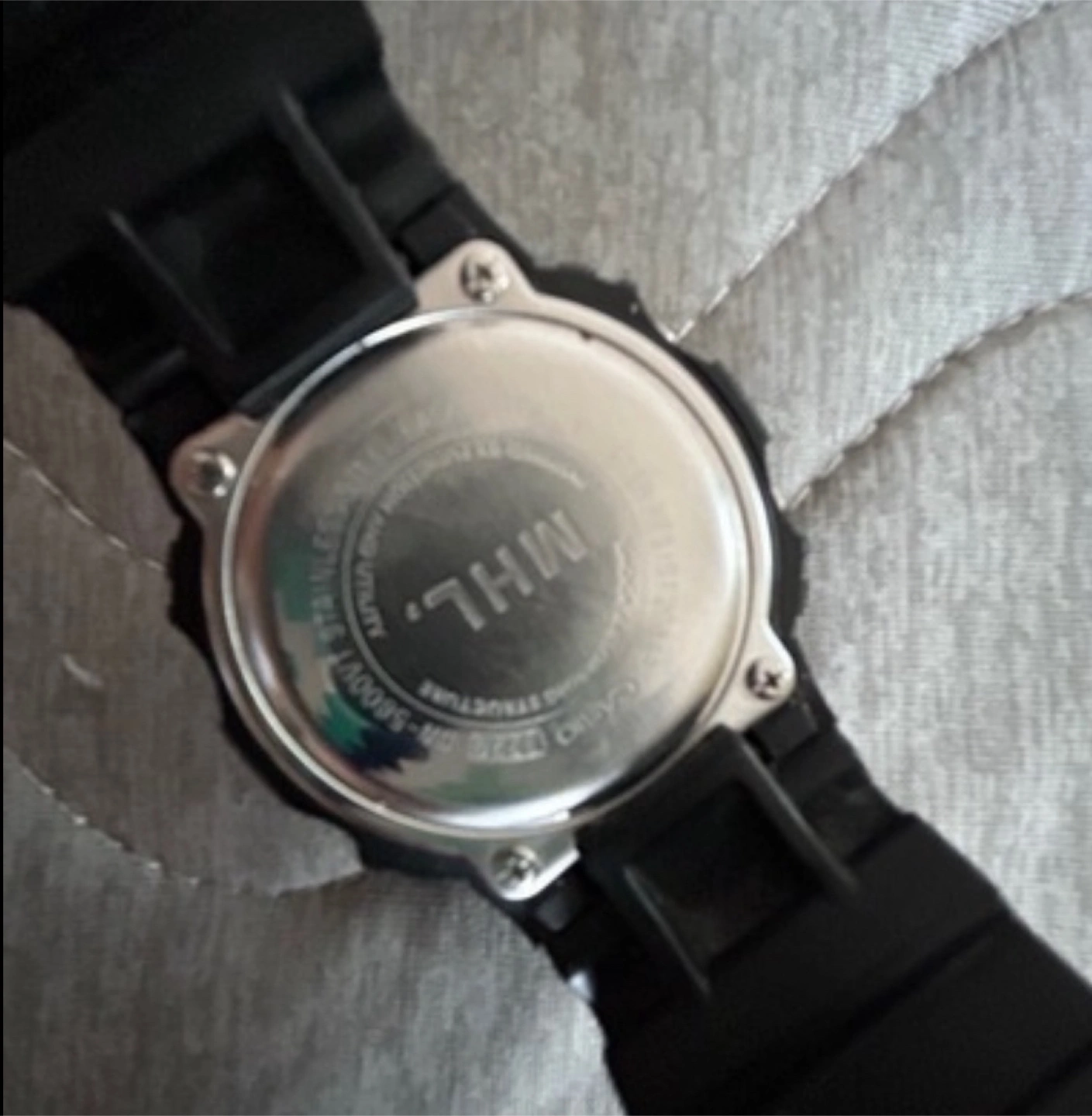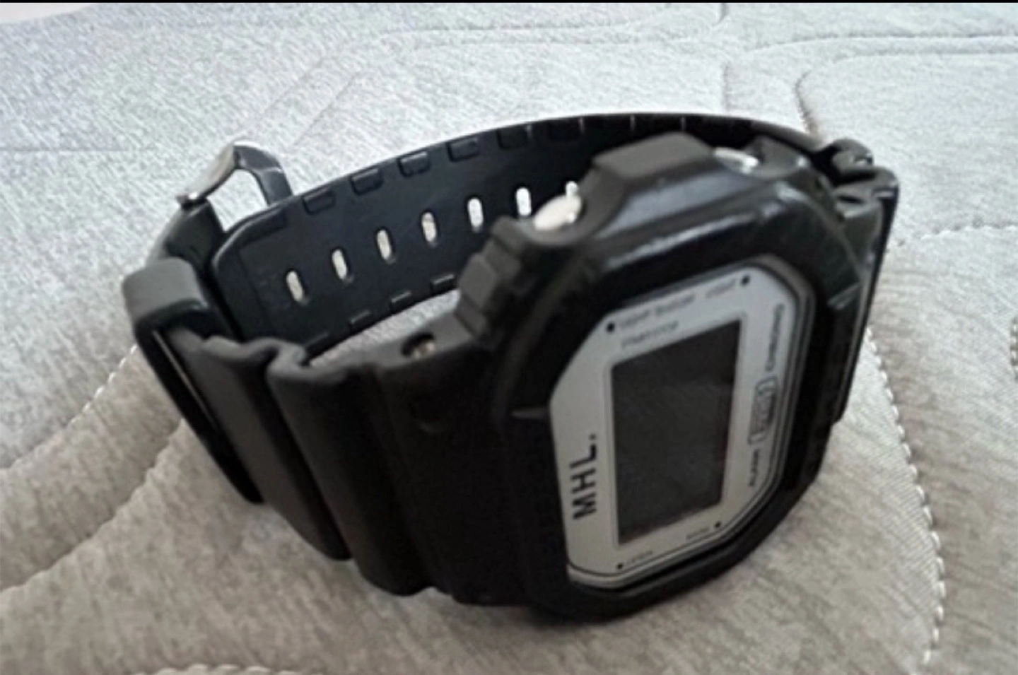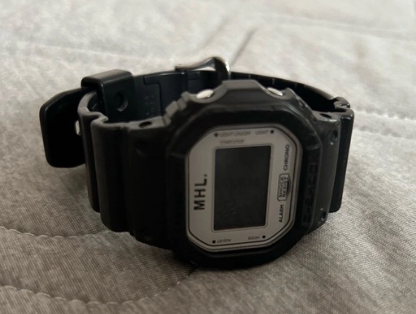 MHL.とG-SHOCKのコラボウォッチです。 ブラックのシンプルなデザイン。 デジタル表示。 MHL.コラボ CASIO マーガレットハウエル DW5600 G-SHOCK タフネスウォッチCASIO G-SHOCK マーガレットハウエル コラボ時計 MHL. 「夢のコラボレーション」が実現しました。 G-SHOCKの中でも最もタフなモデル「DW-5600」をマーガレットハウエルでデザインしました。 G-SHOCK画面ロゴはMHL. 普段使いから、アウトドアまで、あらゆるシーンでお使いいただける、こだわりの詰まった1本に仕上がりました。 稼働品ですか、画面に傷が有ります。 使用には問題無しかと思いますが光の加減で解ります。 ケースサイズ(縦×横×厚さ) 48.9 × 42.8 × 13.4 mm 重量 53 g 材質 【ケース・ベゼル】樹脂 【バンド】樹脂バンド 外装 無機ガラス 構造 耐衝撃構造(ショックレジスト) 防水性 20気圧防水 電池寿命 約2年 時計機能 ストップウオッチ機能 1/100秒(0’00’’00~59’59’’99) 1秒(1:00’00’’~23:59’59’’) 24時間計 スプリット付き タイマー機能 セット単位:1秒 最大セット:24時間 1秒単位で計測 オートリピート アラーム/時報 マルチアラーム・時報 報音フラッシュ機能 アラーム/時報/タイマー連動発光 ライト ELバックライト(残照機能付き)ブルーグリーン カレンダー機能 フルオートカレンダー 精度 平均月差 ±15秒 その他機能 12/24時間制表示切替
