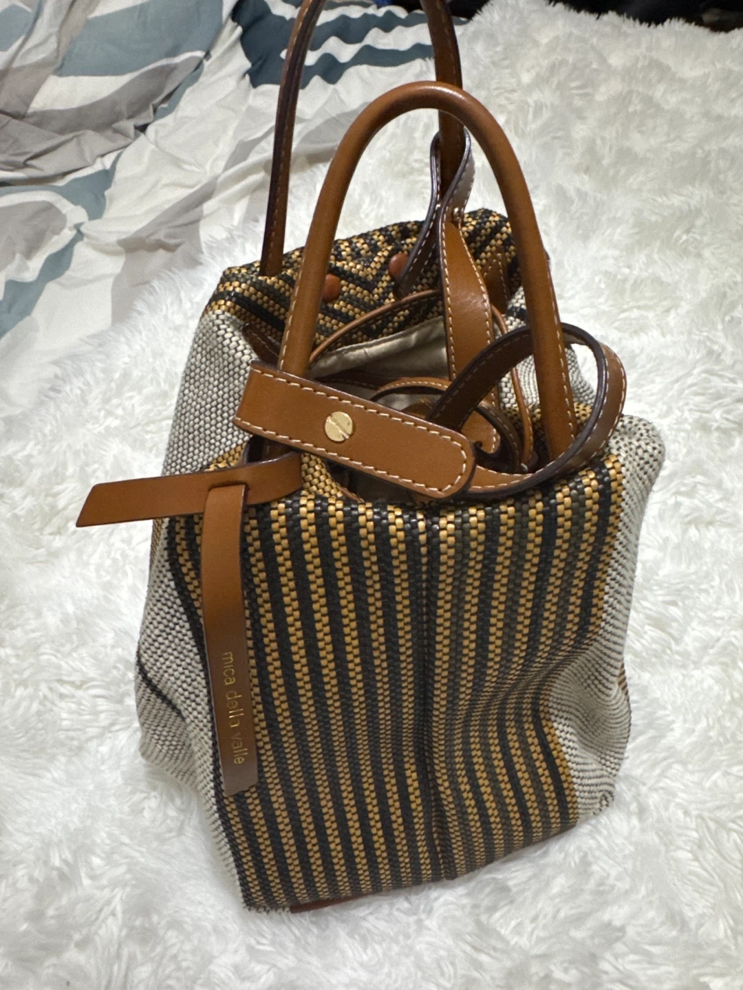 帯地ハンドバッグ 茶・ブロンズ系 1点物