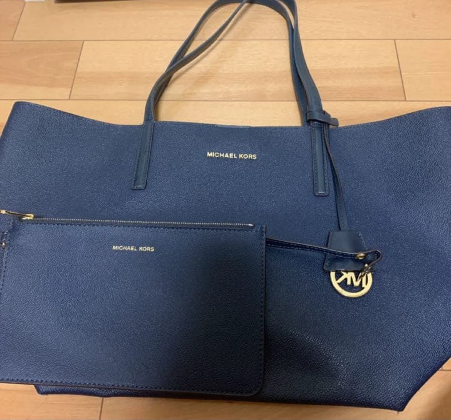 断捨離のため出品します。 チャームは閉まって使用してたので綺麗です。 バックも写真の通りとても大切に使ってました。 取手に若干使用感はあります。 ポーチは未使用のため新品です。 その分お安くはしております。 あくまで自宅保管のため、神経質な方はご遠慮下さいませ。 ドラマで石原さとみさんが使用してたのをみて可愛くて購入しました。 定価4万〜5万位でした ・カラー:ネイビー ・ブランド:MICHAEL KORS ・付属品:ポーチ 中古品であることをご了承ください。