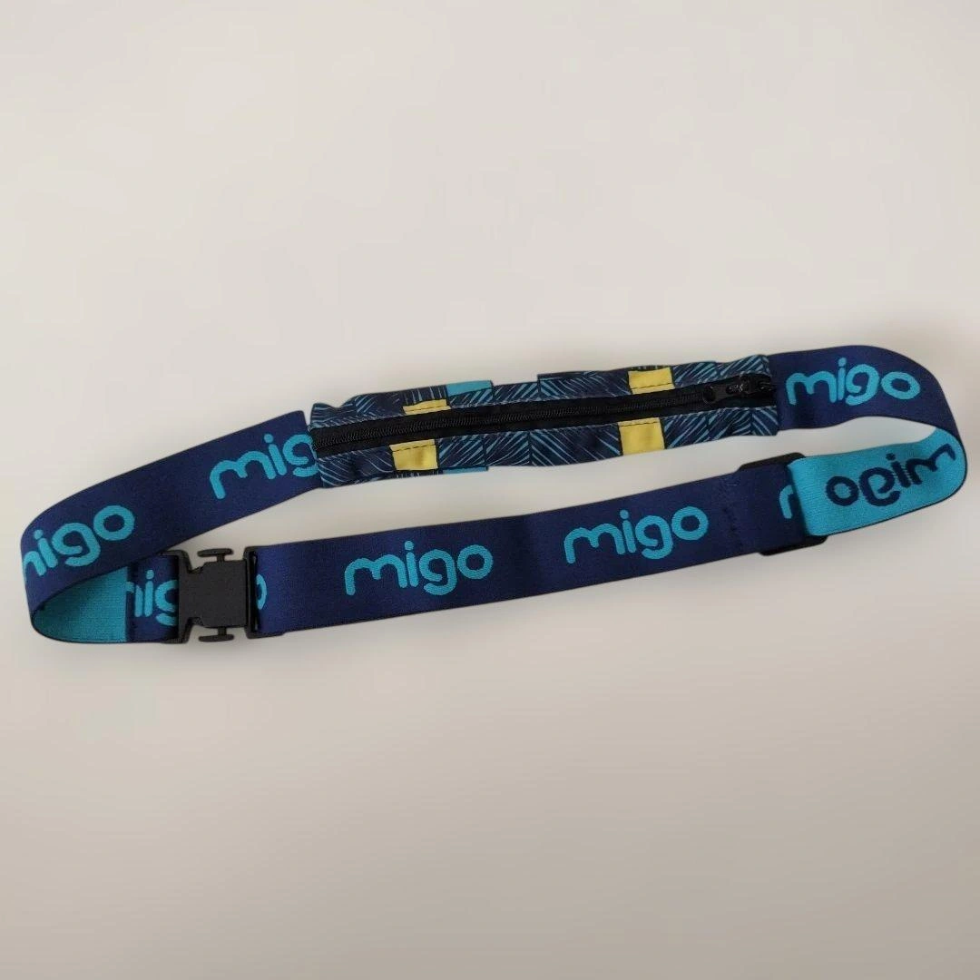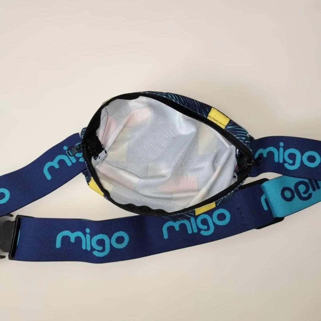 ダブルジップタイプのウエストポーチです。ランニングや旅行での貴重品管理に最適です。 いびつな形のものを入れても、ポーチ部分が伸縮するためしっかりチャックを閉められます!※写真4枚目 中の部分によく見ると汚れがありますので5枚目でご確認ください。 - ブランド: migo - 色: 青/黒 - 特徴: ポケット付きウエストベルト ご覧いただきありがとうございます。