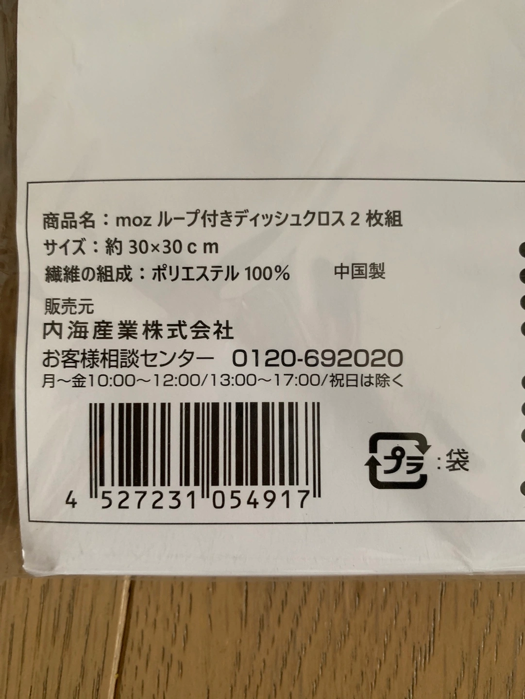 moz モズ ループ付きのディッシュクロス  2枚組 使用しないまま自宅保管しておりました。 未開封です☆ •サイズ:約30×30センチ •素材:ポリエステル100%