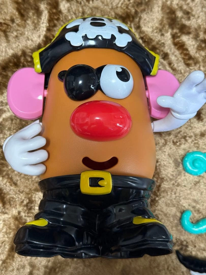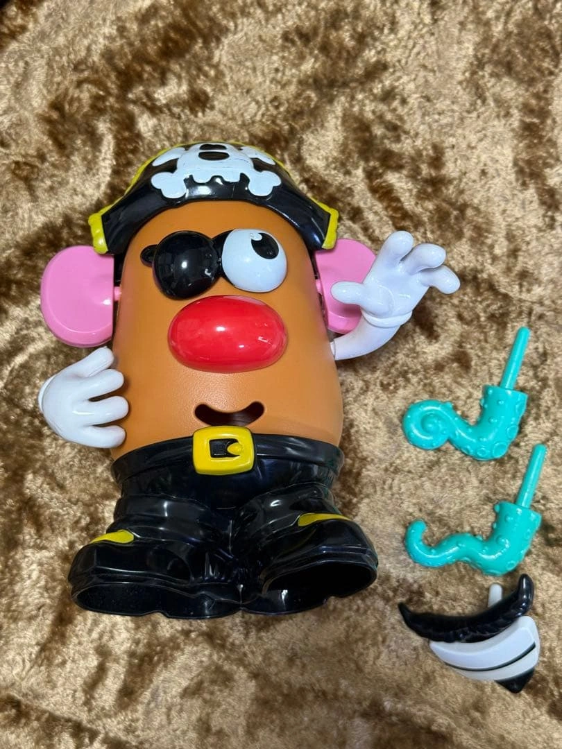 シアトルで購入しました。 ポテトヘッドの組み立て式おもちゃ ハスブロ社製 アメリカの玩具メーカー HASBRO社よりトイストーリーの人気キャラ ポテトヘッドの組み立て式おもちゃです♪ ポテトヘッドを” 福笑い ”的な感じで組み立ててくださいっ! 海賊とビーチをテーマにしたポテトヘッドで、体・目・鼻・口・耳・手・足・メガネ・帽子など17パーツが入っています。 子供が使用したものである事と、注意を払って検品しておりますが素人検品という子供を御理解ご了承の上、ご購入頂きますようお願いいたします。 ホームクリーニングを施し、保管しております。 ペットや喫煙者はおりませんので、安心してお買い求めいただけます。 商品の外装梱包には、リサイクル品を使用する場合がございます。予めご了承いただけますようお願い申し上げます。 なお、当商品は他のサイトでも出品しております。急に削除する場合がありますこと、ご了承ください。 最後に、ご質問等ございましたら、お気軽にお問い合わせください。 - キャラクター: Mr. Potato Head - スタイル: 海賊 - 付属品: 帽子、眼帯、靴 - 状態: 良好 ご覧いただきありがとうございます。