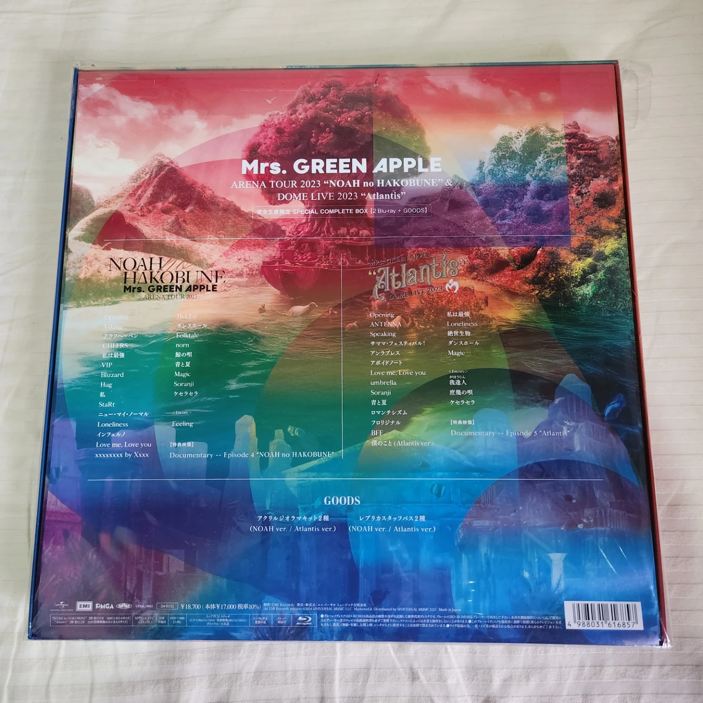 ミセスグリーンアップルのライブBlu-rayボックスです 【情報】 ブランド:ミセスグリーンアップル 商品名:ARENA TOUR 2023 "NOAH no HAKOBUNE" & DOME LIVE "Atlantis" 種類:Blu-ray 付属品:LIVE PHOTO BOOK、グッズ 【状態 】 一度中身の確認で開封しましたが Blu-ray等未開封です 中古品であることご了承ください おまけでペンライト付けます。