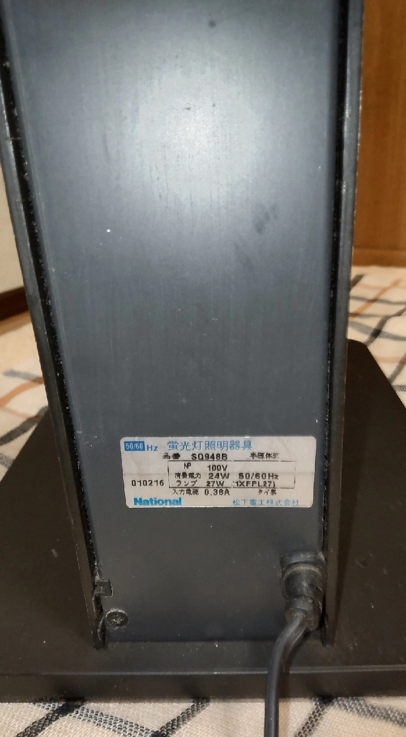 《中古品》【National(現Panasonic)】卓上型 コンパクト形 蛍光灯 デスクスタンド〈転倒スイッチ付〉LOVEEYE Creator (ラブアイクリエーター)Black 「SQ948B」生産終了品 主な特徴 ・ ランプ品名:FPL27EX-N ・ 全光束:1420 lm 消費電力:21 W ・転倒スイッチ付き(転倒時に消灯) 100形電球1灯相当の明るさ こちらは、20年前頃に購入し、息子が学生時代に使っていたもので、使用感かなりあります。 使わなくなって長年部屋に置いていましたので、傷や汚れがあります。 蛍光灯は現在でも点灯しますが、少し暗っぽくなっていますので、もう少ししたら切れてしまうかもしれません。 状態は良くないですが、壊れている部分はありませんので、まだ使えると思います。 中古品ですので、商品の状態をご理解頂ける方のご購入をお願い致します。 ご検討宜しくお願い致します。 - タイプ: デスクライト - 色: 黒 - 電球タイプ: 蛍光灯 - スタンドの形状: 調整可能 - 電源コードの長さ: 標準 #中古品 #松下電工 #National #Panasonic #卓上型 #蛍光灯デスクスタンド #点灯スイッチ付き #動作確認済み