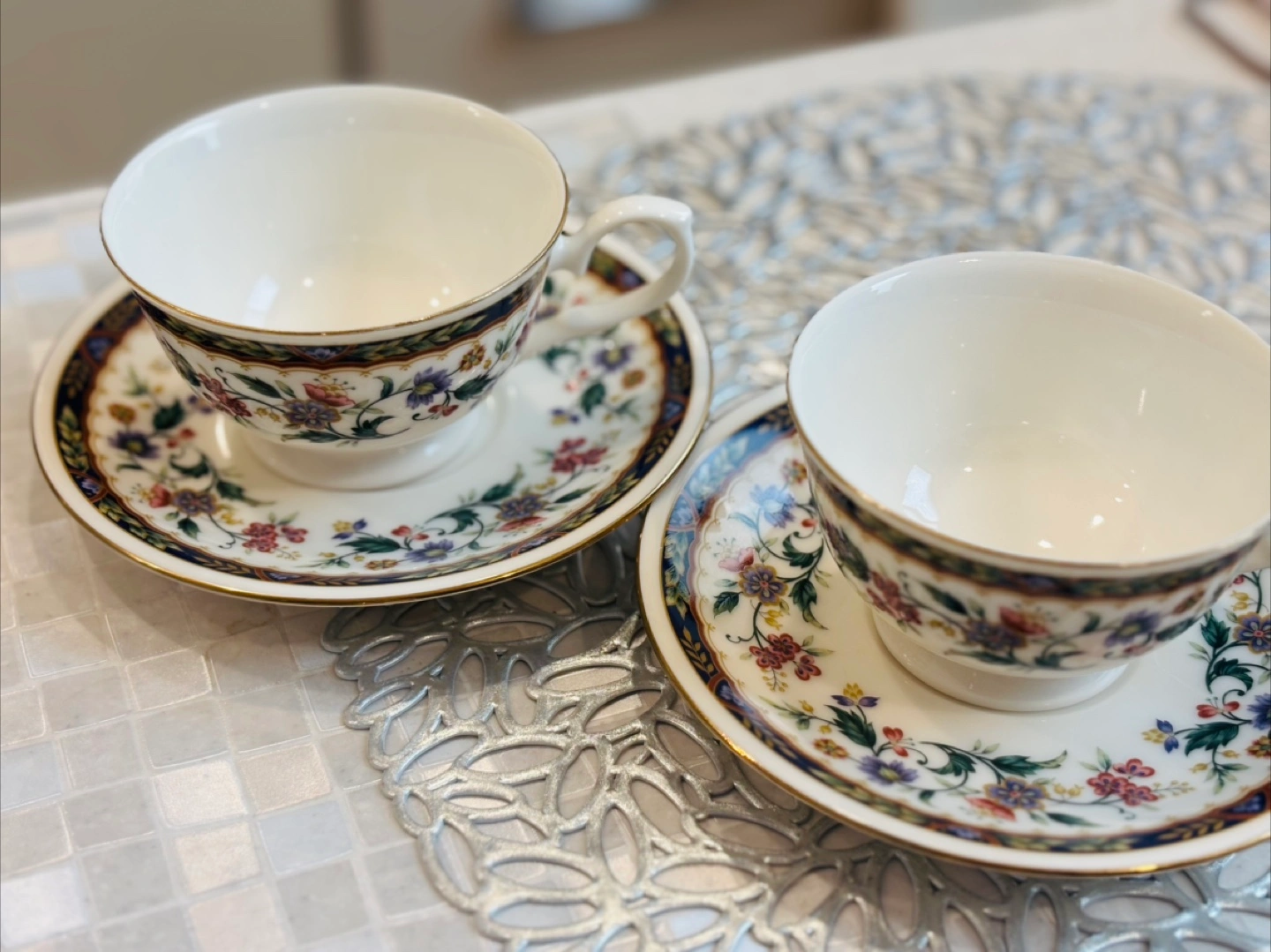 一度使用した位で自宅保管されていた 素敵な花柄のコーヒーカップの2客セットです ・ブランド:NEW BON British Royal ・カップ&ソーサー 2客 ・花柄デザイン ・金縁 金縁もハゲとなく、未使用と変わらない状態です※箱などはありません。