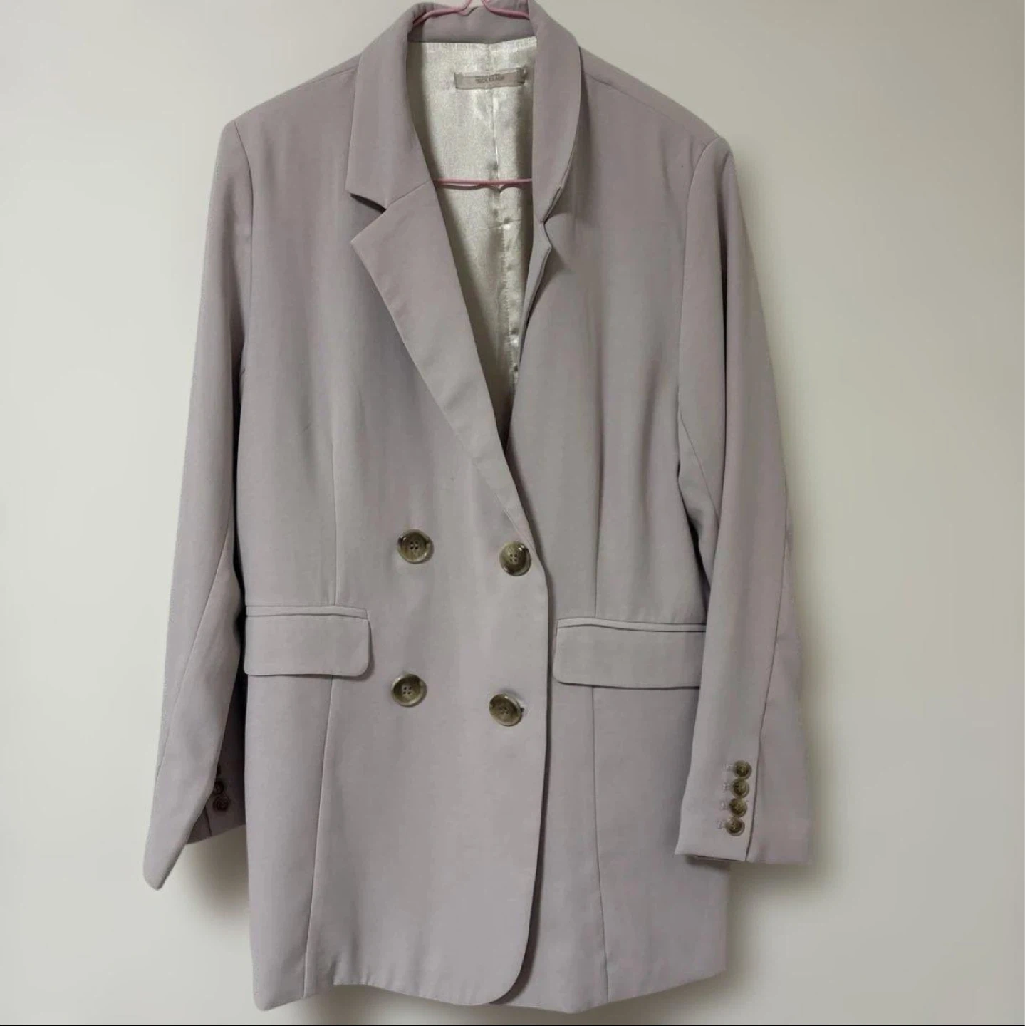 one after another NICE CLAUP ワンアフターアナザーナイスクラップ テーラードジャケット 薄ピンクフリーサイズ 知人から譲り受けたものになりますが、着用せずクローゼットで眠っていました。 しばらく置いていたからか写真にはうつらない程度の薄いシミ汚れが数箇所あります。 糸のほつれも少し見られています。 解けてきてしまうような大きなものではないので、着用の際にはそんなに影響はないと思いますが、個人の判断になりますのでご理解ください。 他サイトにも出品中の為、急に削除する場合があります。 受け渡し場所、価格交渉承ります。
