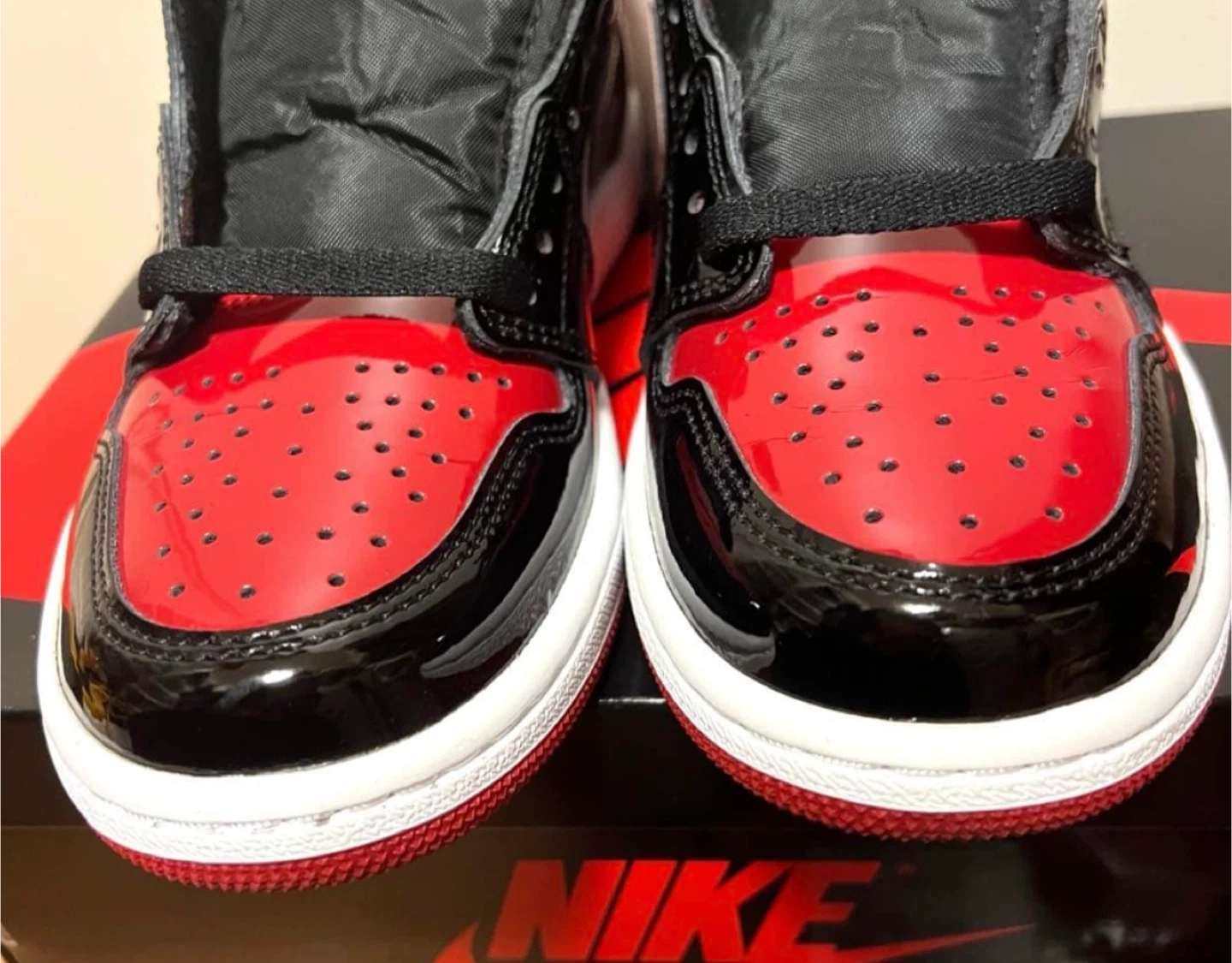 NIKEナイキ エアジョーダン1 ハイ OG パテント ブレッド