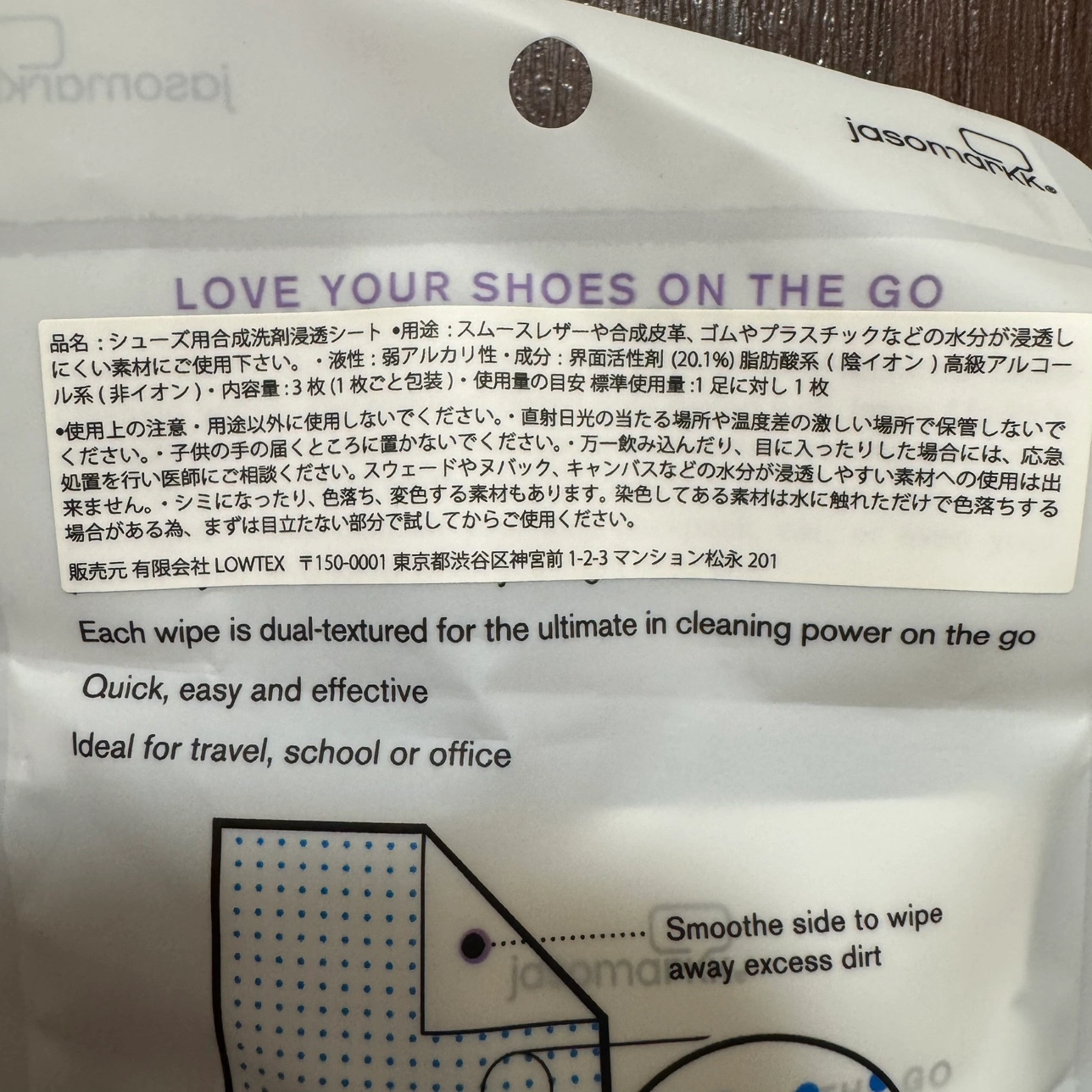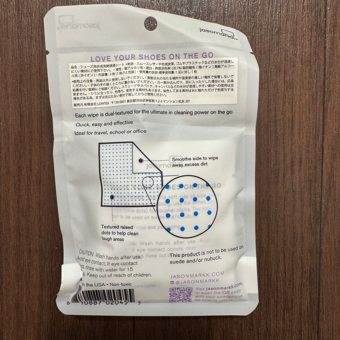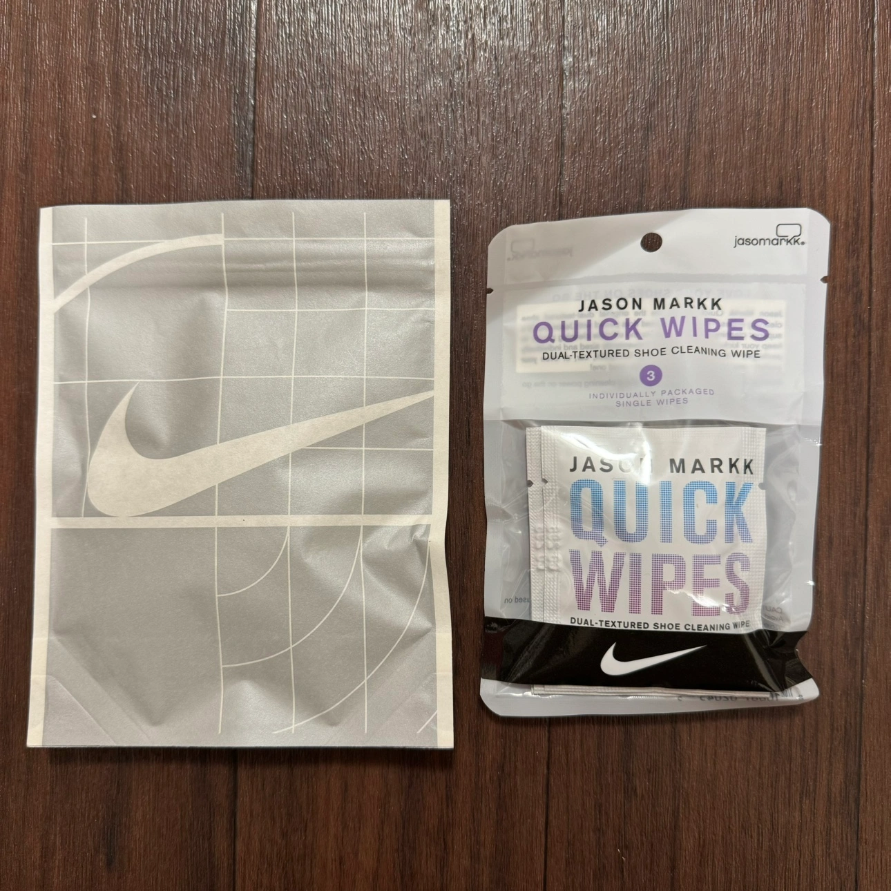 NIKE ナイキ シューズ用合成洗剤浸透シート シューズクリーナー シューズ用合成洗剤浸透シート3枚入り シューズ用合成洗剤浸透シート 大人気のスニーカ ーケアグッズ JASON MARKK QUICK WIPES ジェイソンマーク クイックワイプス ・内容量:3枚(1枚ごと包装) ・アメリカ製 スニーカークリーナーでおなじみの世界中のスニーカー愛好家から信頼を集めているシューケアブランド“JASON MARKK (ジェイソンマーク)”の持ち運びに便利なコンパクトサイズのスニーカークリーナー。 「JASON MARKK QUICK WIPES(ジェイソン・マーク クイック ワイプス)」は、洗浄成分がたっぷり含まれた拭き取りタイプのシート形状になった扱いやすいクリーナーです。 エアマックス95 や エアジョーダン1 、 ダンク、等の大切なスニーカーのお手入れに! 新品未使用未開封です!