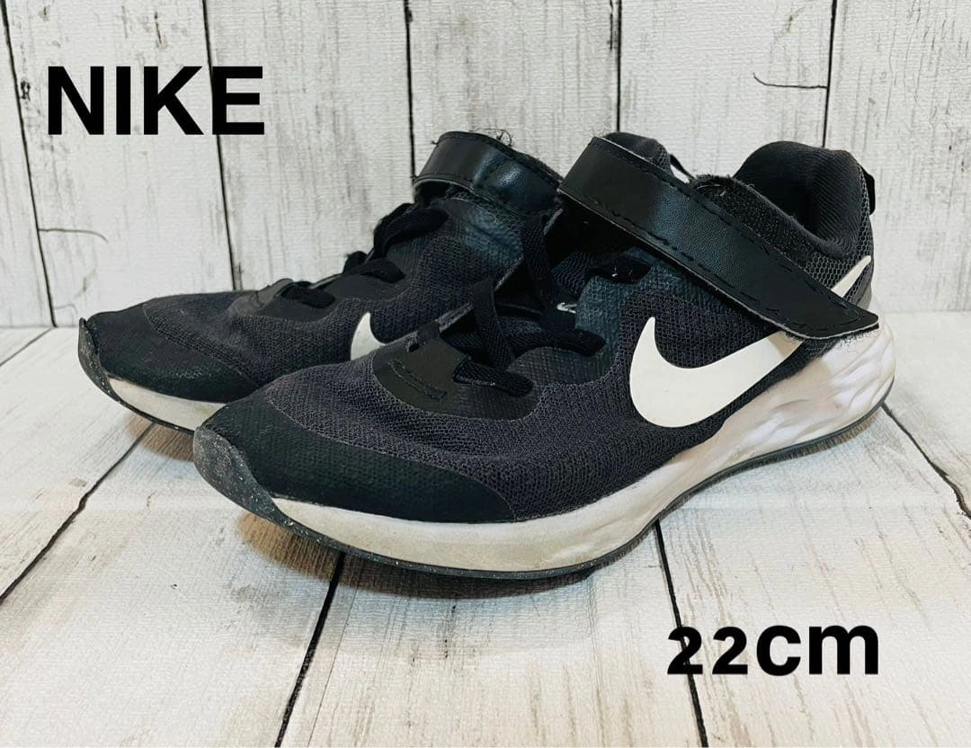NIKE ナイキ スニーカー 22cm 黒 レボリューション6 ベルクロ キッズ