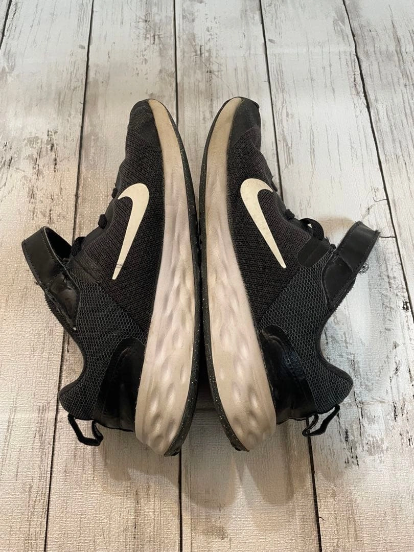 リサイクル素材を使用したナイキ レボリューション 6です。軽量で通気性に優れたデザインと柔らかいクッションが特徴です。伸縮性のあるシューレースとストラップで履きやすいと思います。 クッション性のあるソールとベルクロストラップで快適な履き心地です。 ○ブランド・・NIKE レボリューション6 ○状態・・新品で購入し綺麗な状態ですが、マジックテープの粘着力が弱くなっていたため自分で付け新しく付け直しているため剥がれることはありません。 ○サイズ・・22cm ○カラー ・・ブラック ホワイト ○型番・・DD1095 -003 ○定価・・4,200円 ご希望の方はお気軽にご連絡ください。