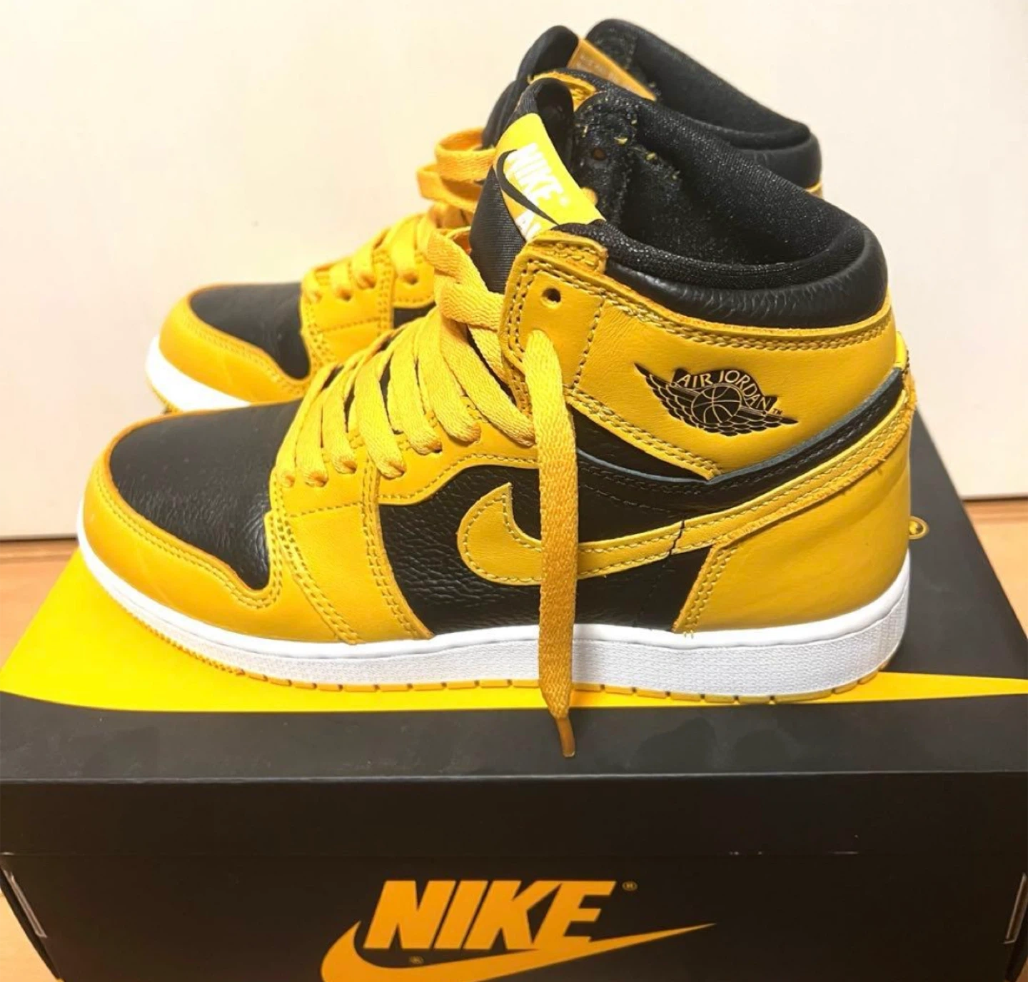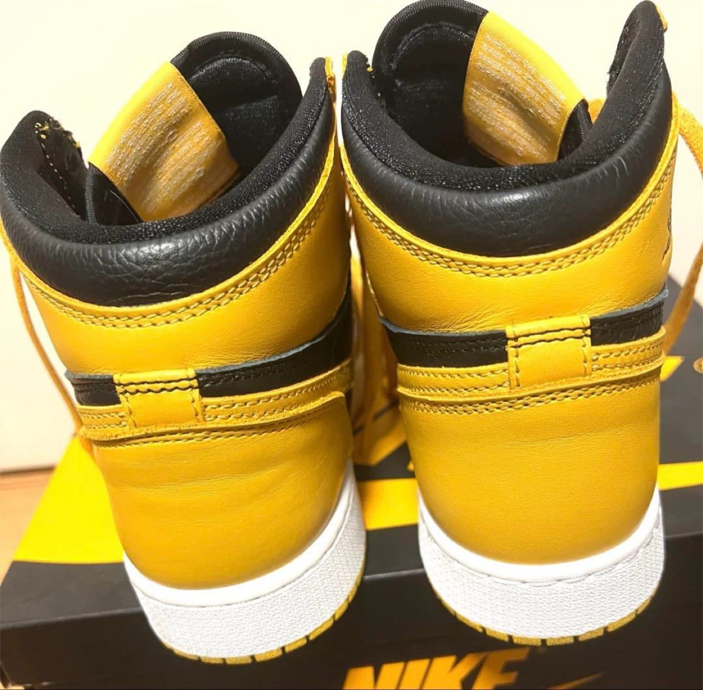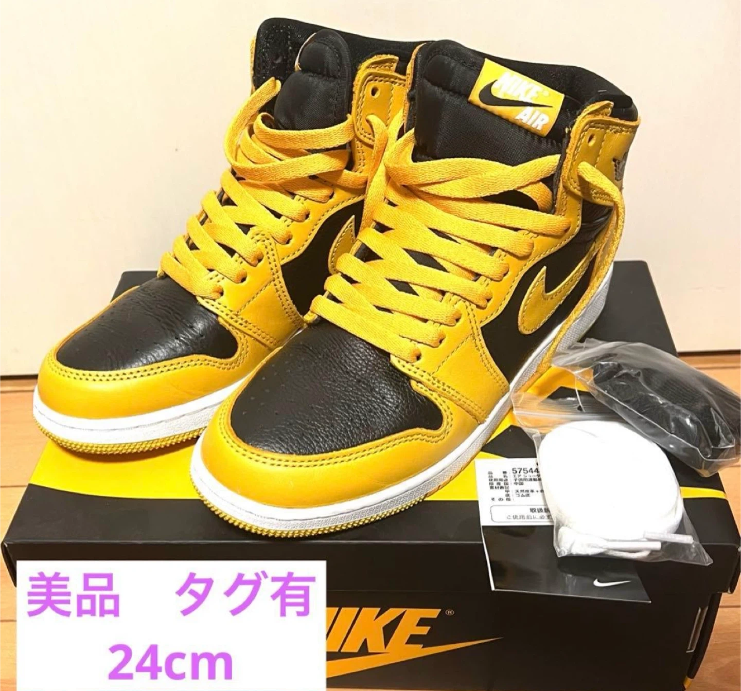 AIR JORDAN 1 RETRO HIGH OG GS POLLEN ナイキのAJ1パラン サイズはGS24cm 使用回数2回の美品です。 中敷も別のを使ってたので新品です。 履きシワもほとんどありません。 箱あり、変え紐あり 引っ越しのため、断捨離となります。 コレクションしてたので、乾燥剤とか入れてとても状態良く保管しておりました。 他のサイトでも出品してますので、無くなり次第削除致します。予めご了承くださいませ。 ブランド:ナイキ 商品名:エアジョーダン1 レトロ HIGH OG GS 型番:575441-701 カラー:POLLEN/WHITE-BLACK(イエロー/ホワイト/ブラック) サイズ:24cm 【状態】 美品、タグあり 【付属品】 箱、替え紐(ブラック、ホワイト) 中古品であることご了承ください。
