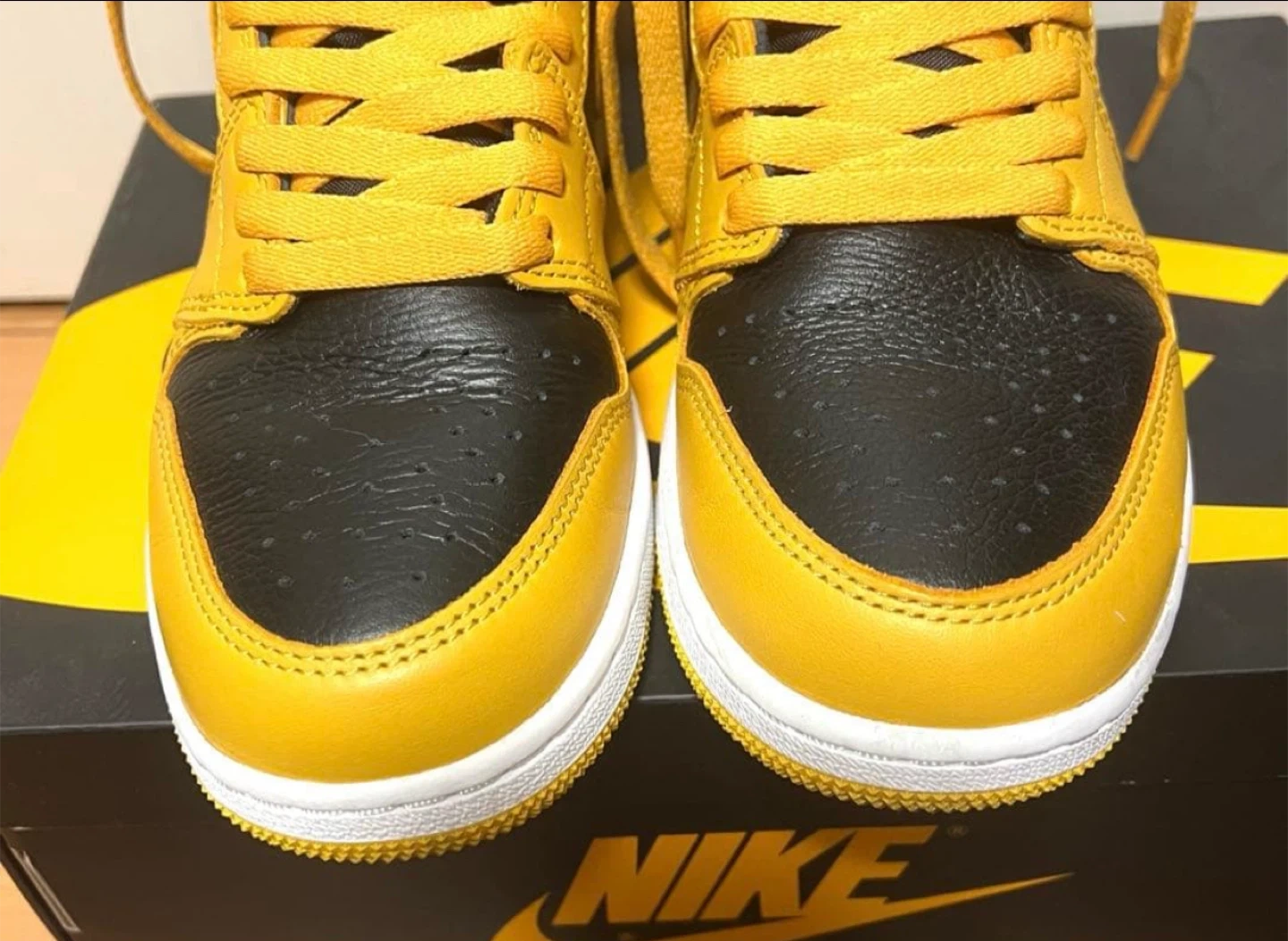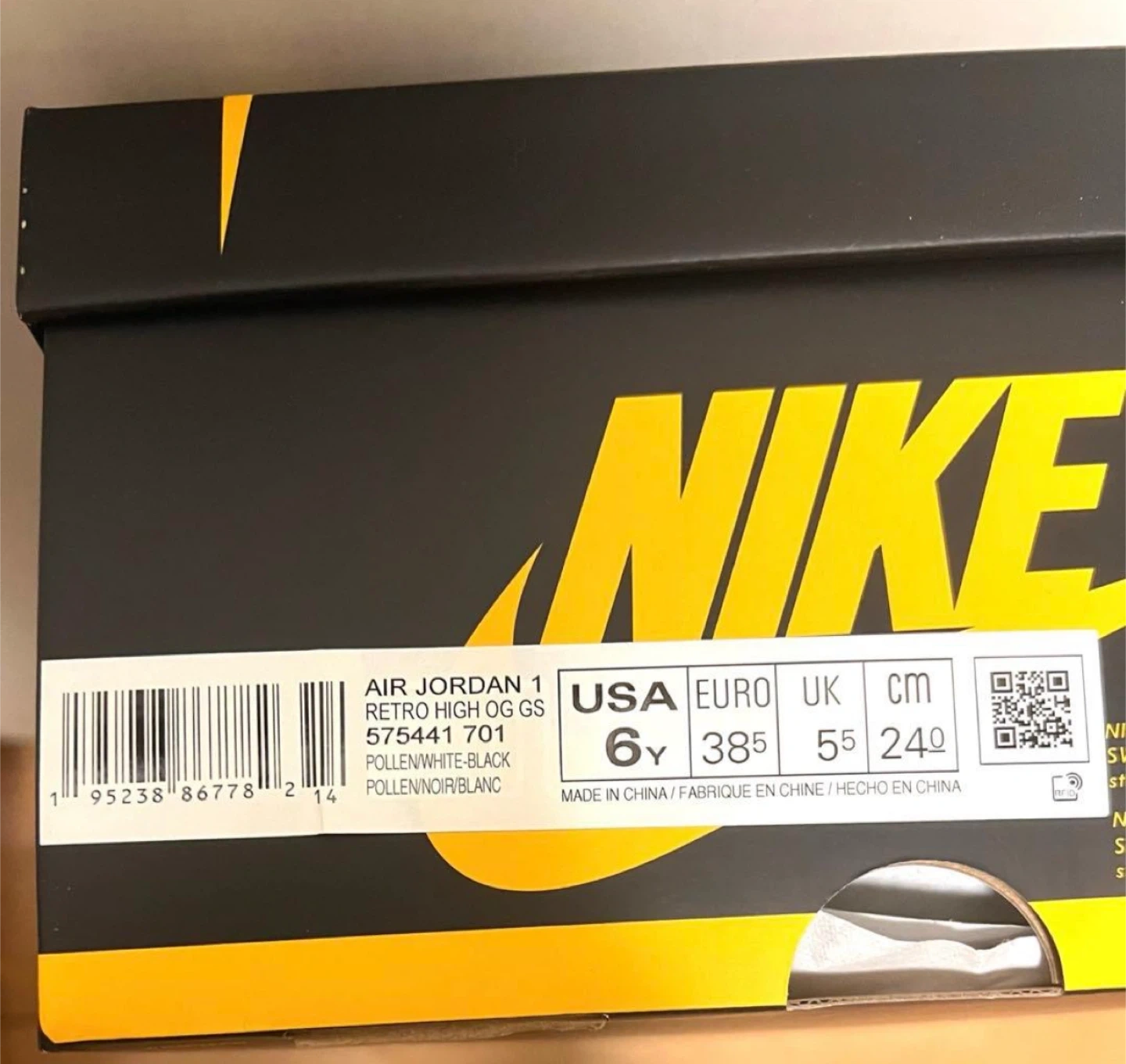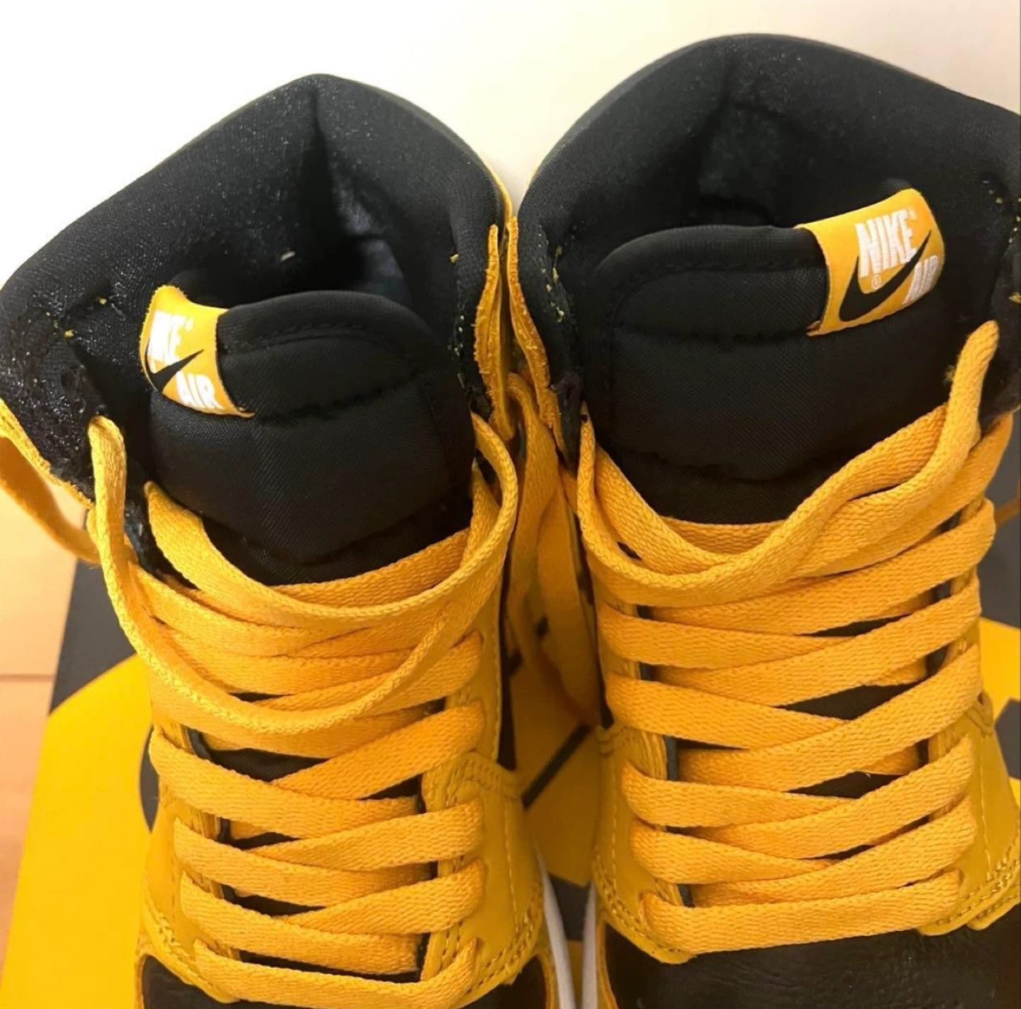 AIR JORDAN 1 RETRO HIGH OG GS POLLEN ナイキのAJ1パラン サイズはGS24cm 使用回数2回の美品です。 中敷も別のを使ってたので新品です。 履きシワもほとんどありません。 箱あり、変え紐あり 引っ越しのため、断捨離となります。 コレクションしてたので、乾燥剤とか入れてとても状態良く保管しておりました。 他のサイトでも出品してますので、無くなり次第削除致します。予めご了承くださいませ。 ブランド:ナイキ 商品名:エアジョーダン1 レトロ HIGH OG GS 型番:575441-701 カラー:POLLEN/WHITE-BLACK(イエロー/ホワイト/ブラック) サイズ:24cm 【状態】 美品、タグあり 【付属品】 箱、替え紐(ブラック、ホワイト) 中古品であることご了承ください。