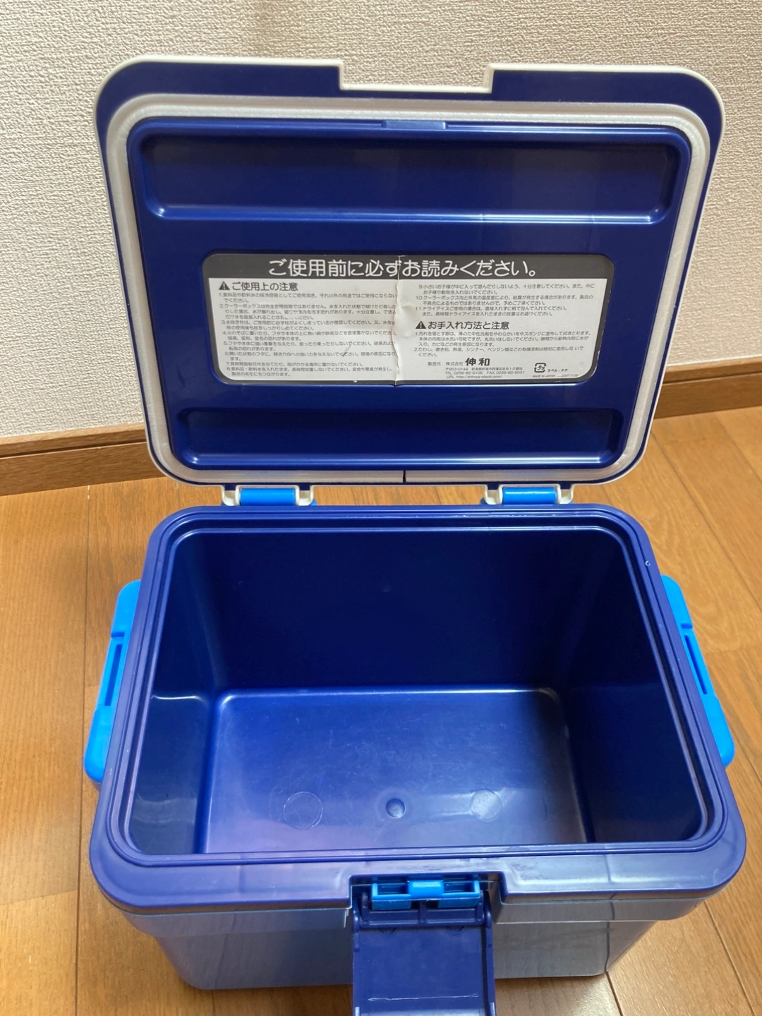 ・ブランド:North Eagle ・種類:クーラーボックス ・カラー:青、白 ・使用感あり ・外枠(一番長い部分)縦23.5×横31×高さ21 ・内部18×25×高さ17 缶(350ml)はぎゅうぎゅうにして9本入ります。 ペットボトルは横にして5本入ります。 持ち運びに便利な大きさです。 経年による色褪せやキズ等あり。 古いものですが、まだまだ充分にお使いいただけます。