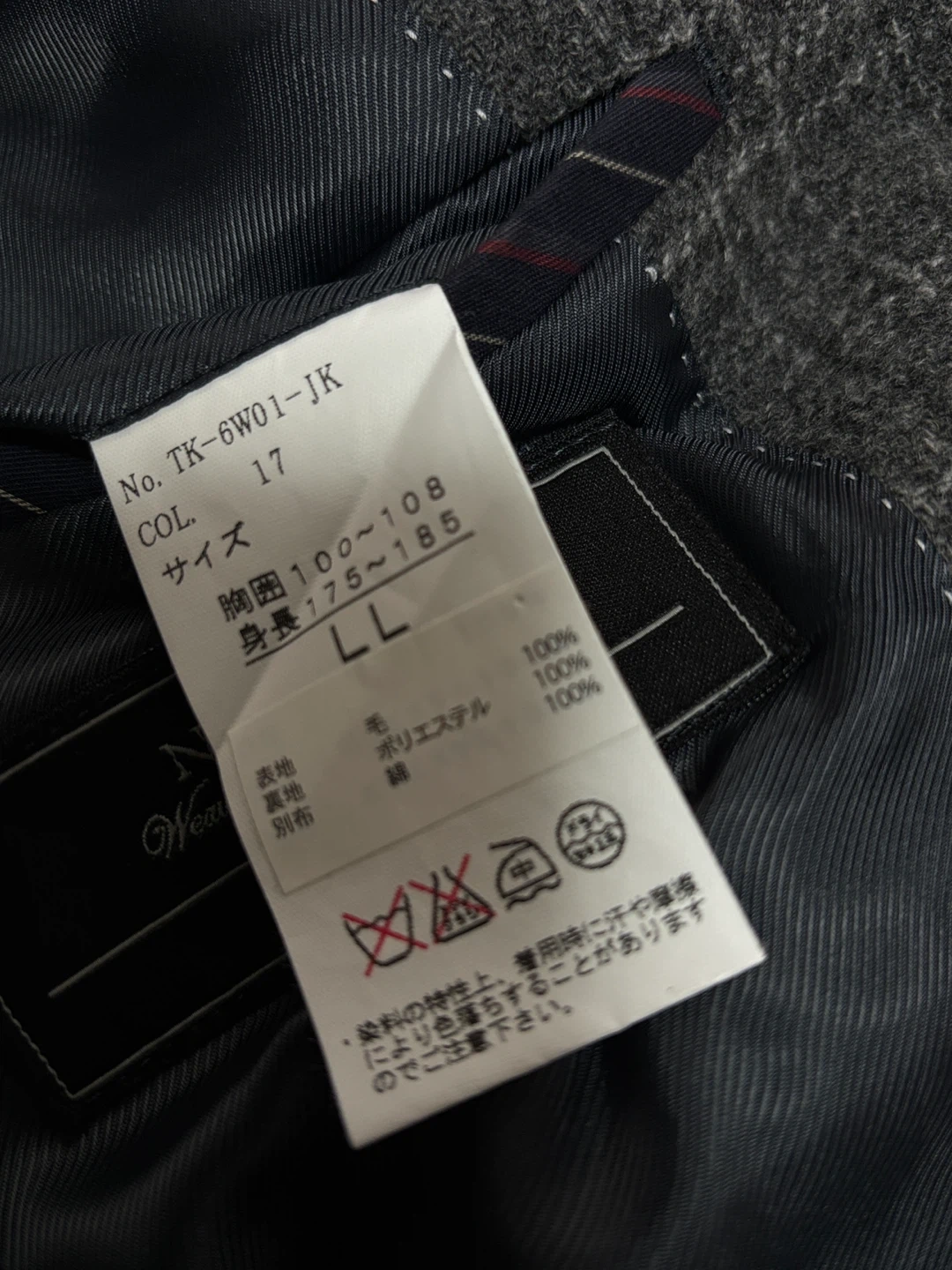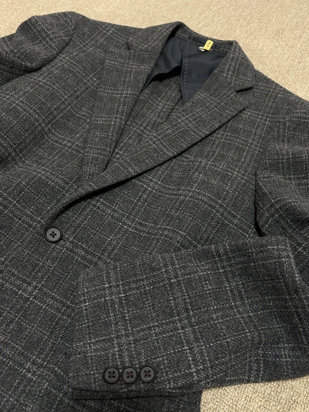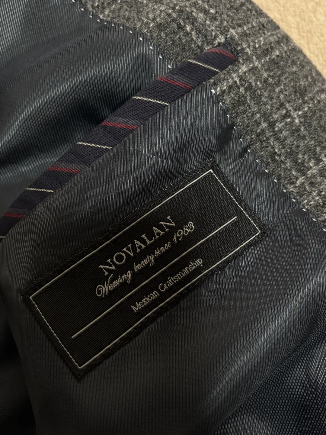 NOVALANツイードジャケット  落ち着いたチェック柄のツイード素材が醸し出す、上品な大人ジャケット 【生地】 メキシコの生地メーカー「NOVALAN」のツイード生地を使用。 粗野感がありながらも、上品な印象で重すぎない独特の生地感がポイントです。 紡毛織物の特徴として糸と糸の間に空気が含まれるので、保温性が高く、軽くて暖かさのある一着。 【ディテール】 ・2ボタン 袖口3ボタン ・サイドベンツ ・パッチポケット 【スタイリング】 汎用性が高く、気軽に羽織ることが出来るのでタイドアップはもちろんカットソーやポロシャツ、ニットなどと合わせてカジュアルなスタイリングもおすすめです。 スラックス、デニム、チノパンなどきれいめからカジュアルまで相性抜群です。 【サイズ】 LL表記ですがそこまで大きくありません  実測で肩幅44、袖丈65、身幅51、着丈71センチ 【素材】 毛100% 背抜 【カラー】 グレー チェック柄 【コンディション】 目立つようなダメージは見当たりません  クリーニング済