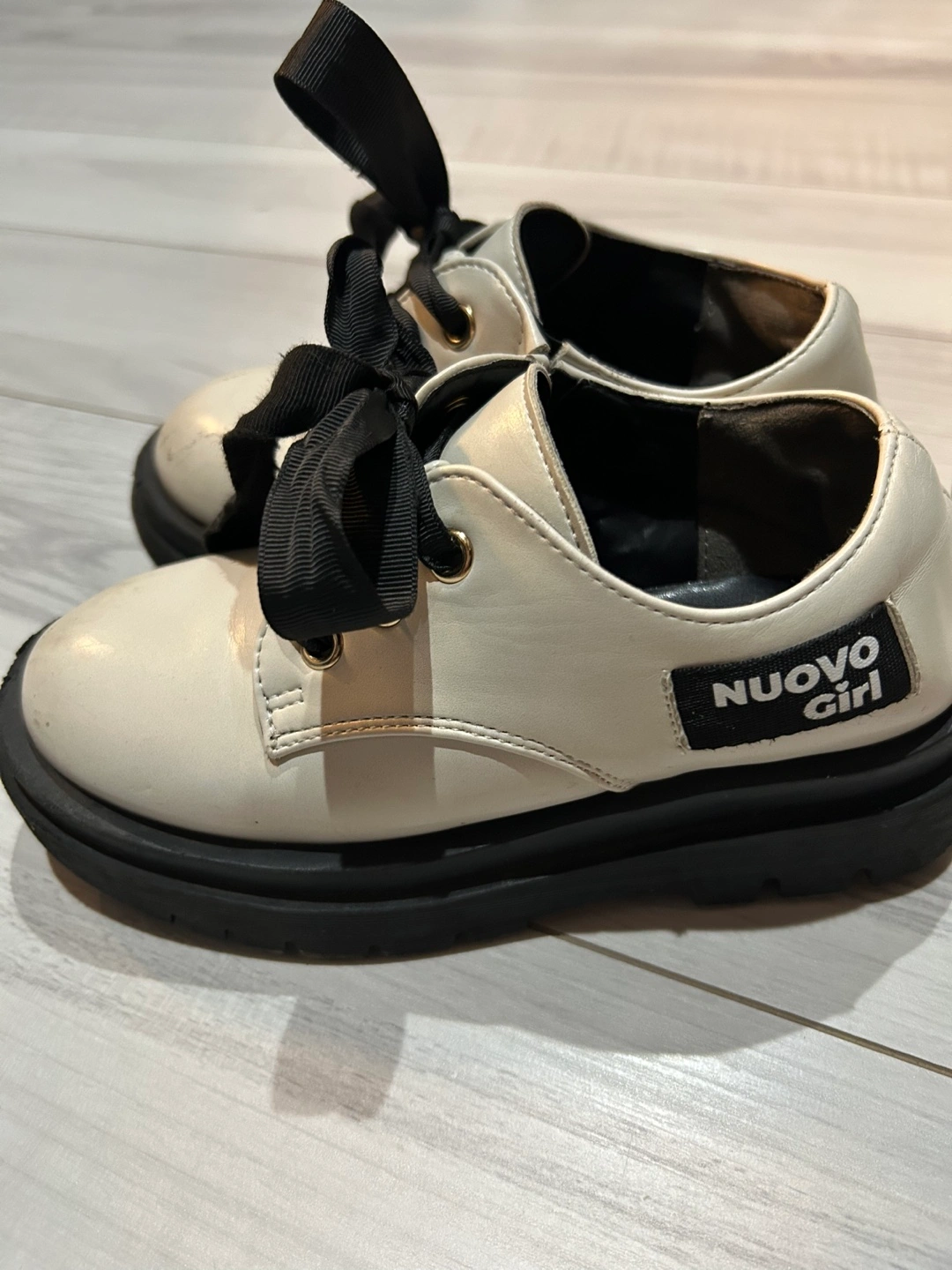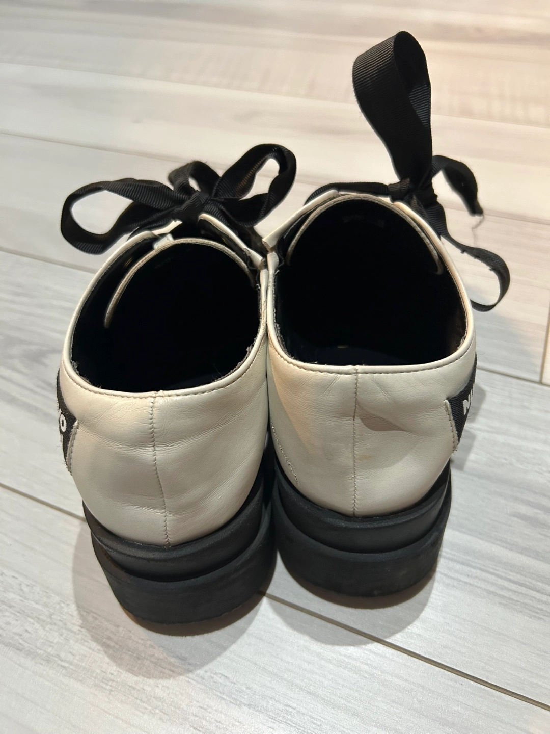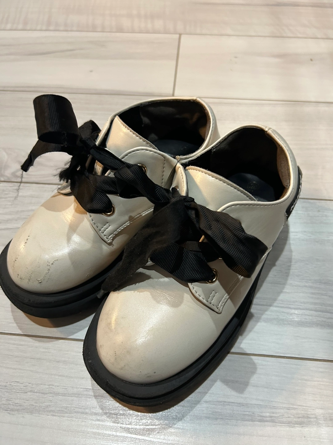 ・ブランド:NUOVO GIRL ・カラー:オフホワイト ・靴紐:黒のリボン ・使用感あり ・表面にスレ 一年程履いていましたので、所々擦り傷がありますが、まだまだ履けます。 フジスーパーもしくはトレッサ 辺りでも大丈夫なのでご相談下さい。 ご質問等お気軽にどうぞ。