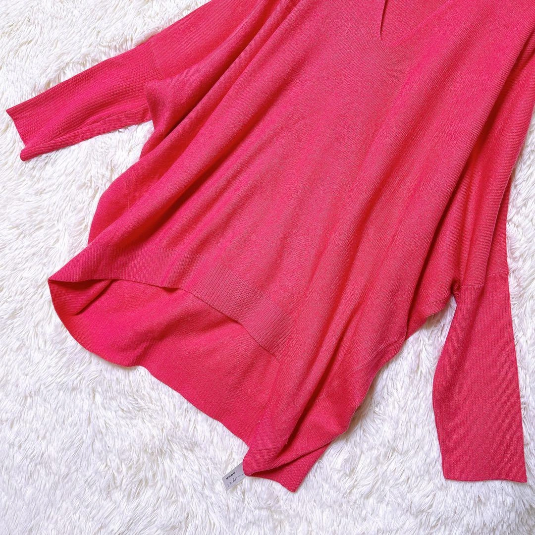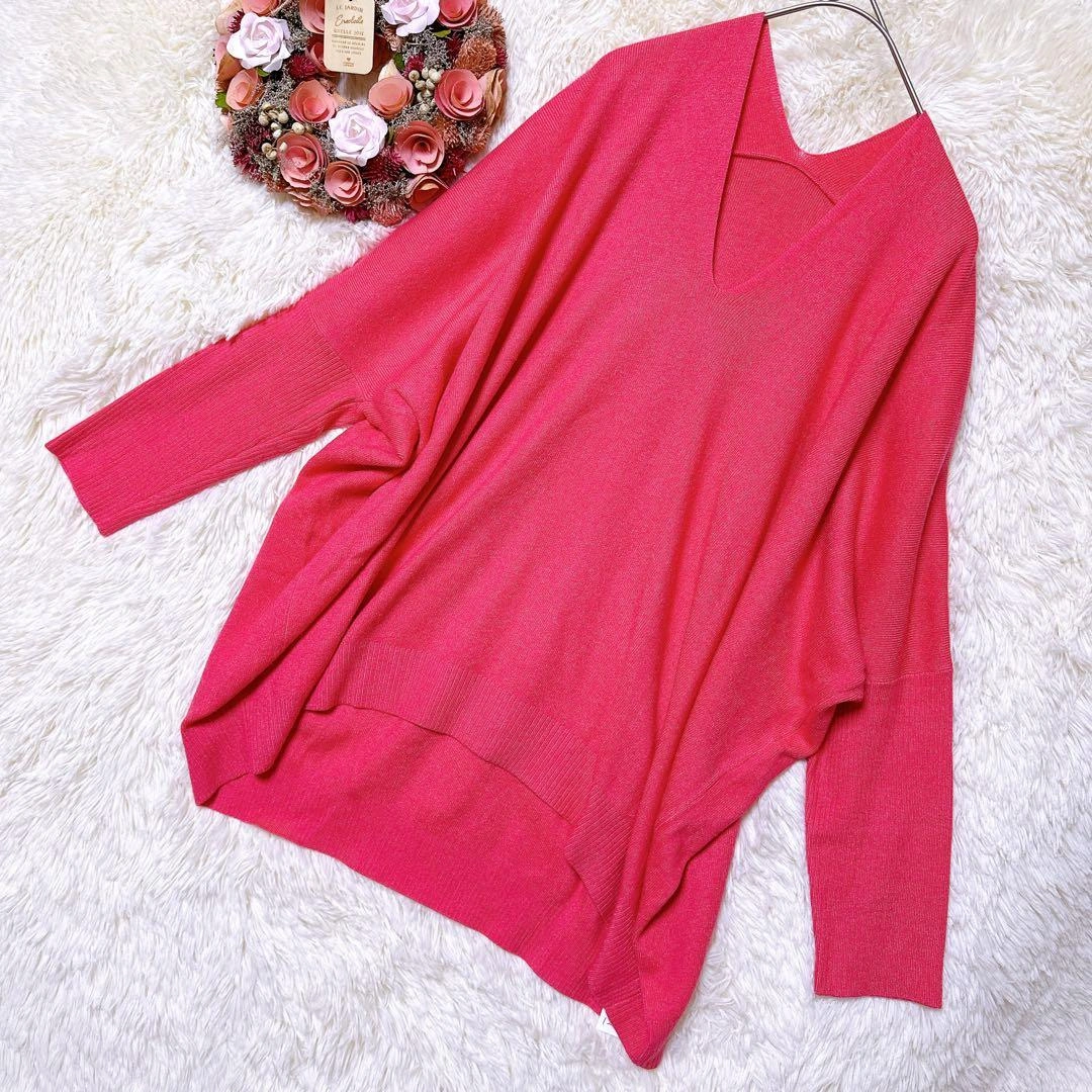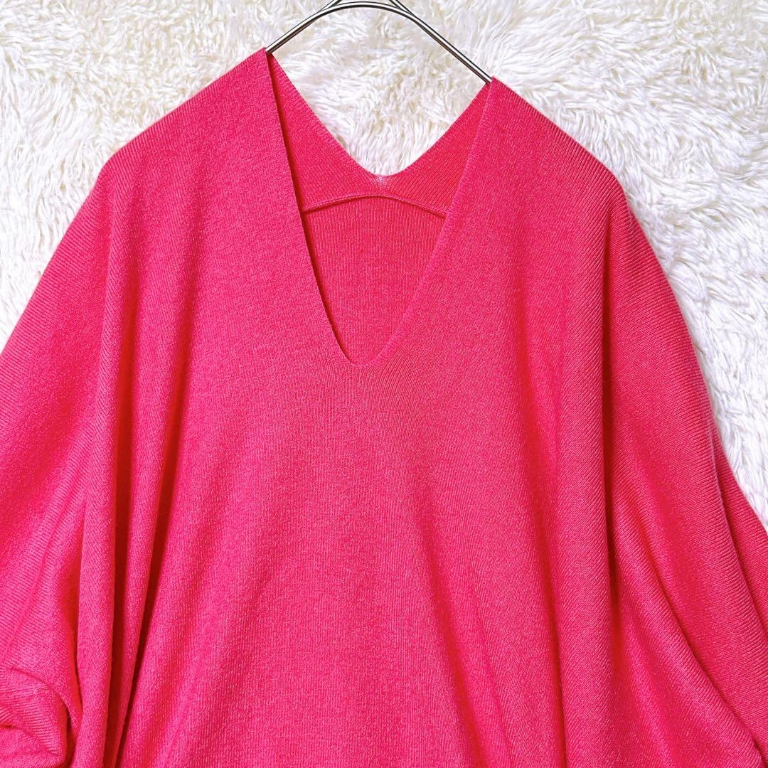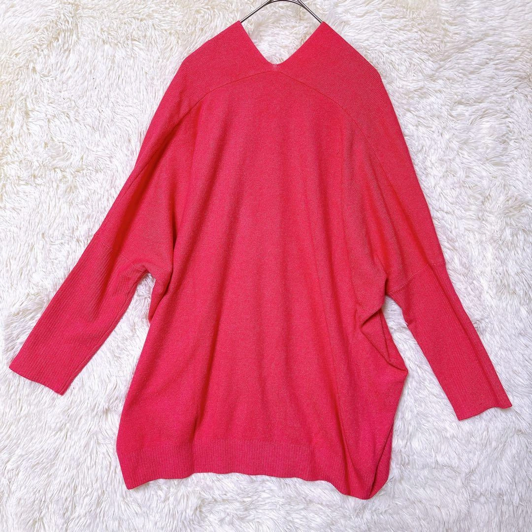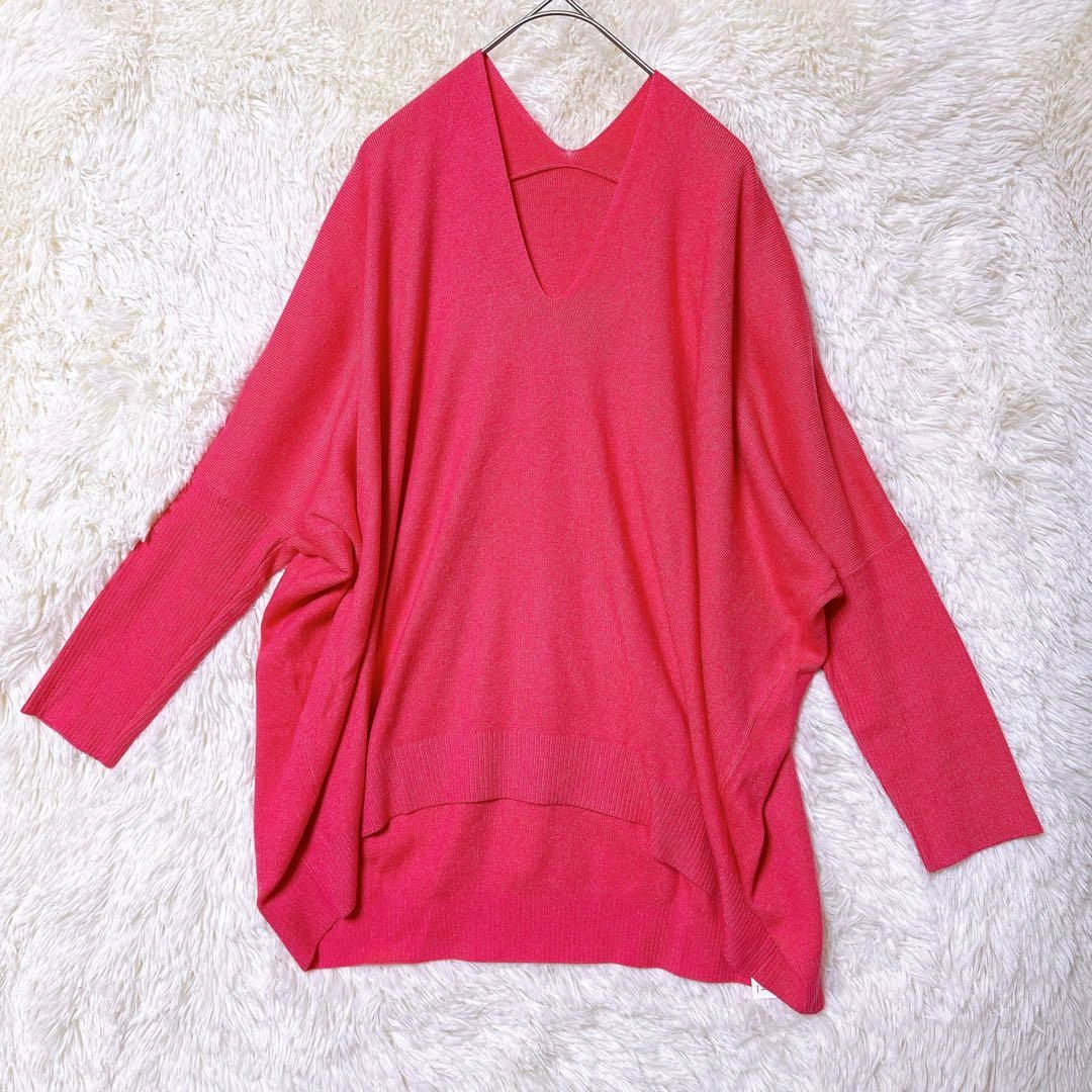 OFUON ニット セーター 長袖 オーバーサイズ Vネック M ピンク 上品