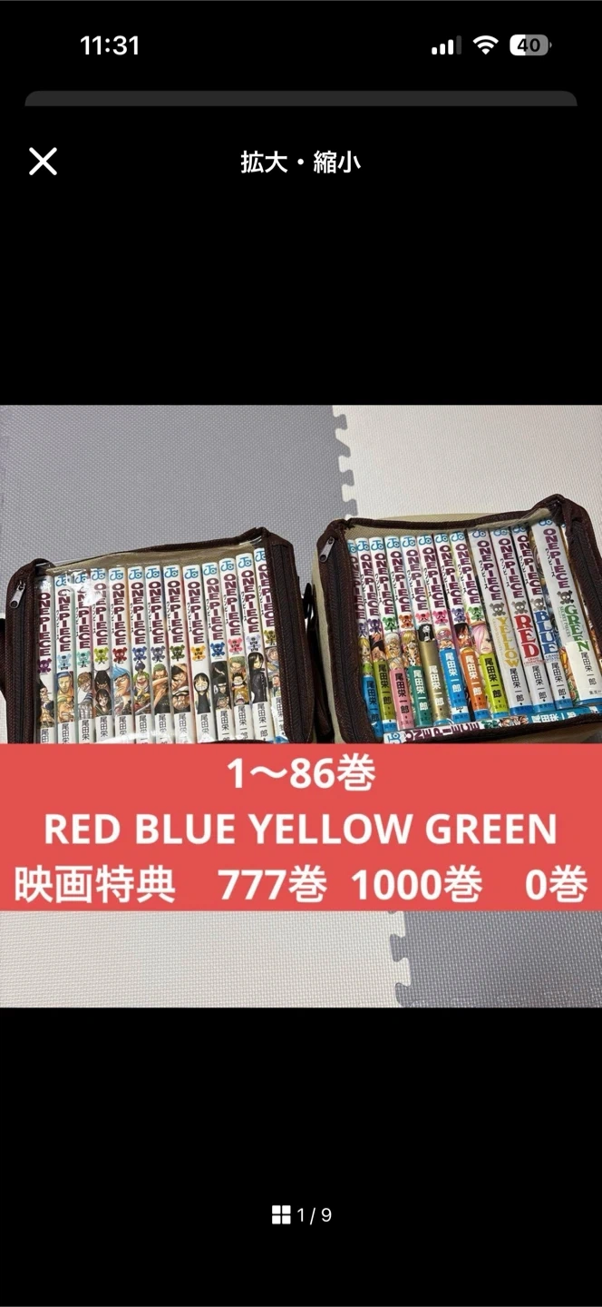 ONE PIECE 漫画セット 1〜86巻 RED BLUE YELLOW GREEN 映画特典 777巻 1000巻 0巻 巻によってはヤケ等がありますが読むのに支障はありません。 中古品にご理解あるかたご購入お願い致します。