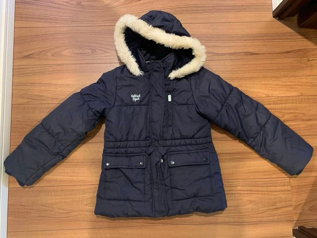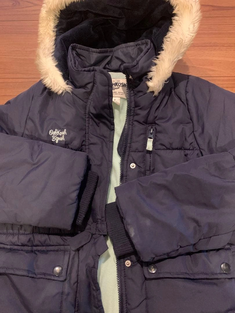 アメリカで買ったOSHKOSHの紺色ダウンジャケットです。 子供が数回着てサイズアウトした為出品します。 紺色の方は胸ポケットがあり、最後の写真のように袖口がすぼまっているのでスキーの上着ジャケットとしても役立ちました。 ●サイズ:OSHKOSHは8サイズ 着丈約56cm ※素人の採寸ですので誤差はご了承ください。 ●状態: 表面は色褪せなく綺麗ですが、最後の写真のように左袖口に少し汚れがあります。目立たないので着用には問題ないかと思います。 中古品ということをご理解いただいた上でご購入をお願いします。 ●その他、注意事項: ・喫煙者、ペットはいません。 ・細かいデザインなどは写真にてご確認ください。 ・小さく畳んで発送します。