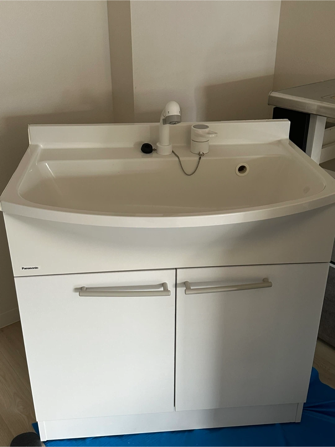 4年半年使用しています。 外す時に少し汚れてしまったので、写真をご参照ください。 自宅まで引き取りに来てくださる方でご検討をお願い致します。 本体キャビネット 幅750mm(止水栓は別途購入ください) サイズ : 750×530×800 洗面ボール : ポリエステル系人造大理石 容量:17L 深さ:191mm 水栓 : シングルレバーシャワー混合水栓