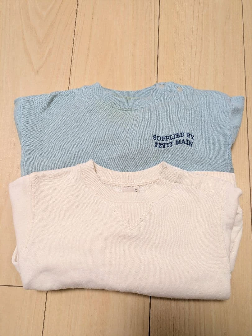 水色と白のトレーナーでどちらも首元にスナップボタン付いています。 可愛らしくてよく着せていましたがサイズアウトのため出品します。水色のトレーナーは首もとに薄く黄色のシミがあります。白のトレーナーは目立つダメージはありません。 水色のトレーナーはタグに記名 があるので記名部分のみ切って送ります。空欄の記名箇所は残っておりますのでそのままご使用いただけます。 - ブランド: PETIT MAIN - 色: 水色 - 色: 白 - スタイル: 重ね着風 ご覧いただきありがとうございます。