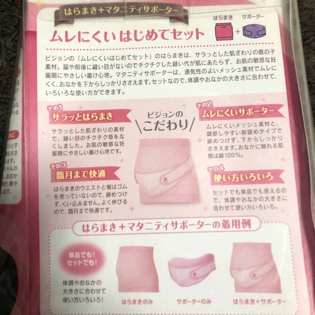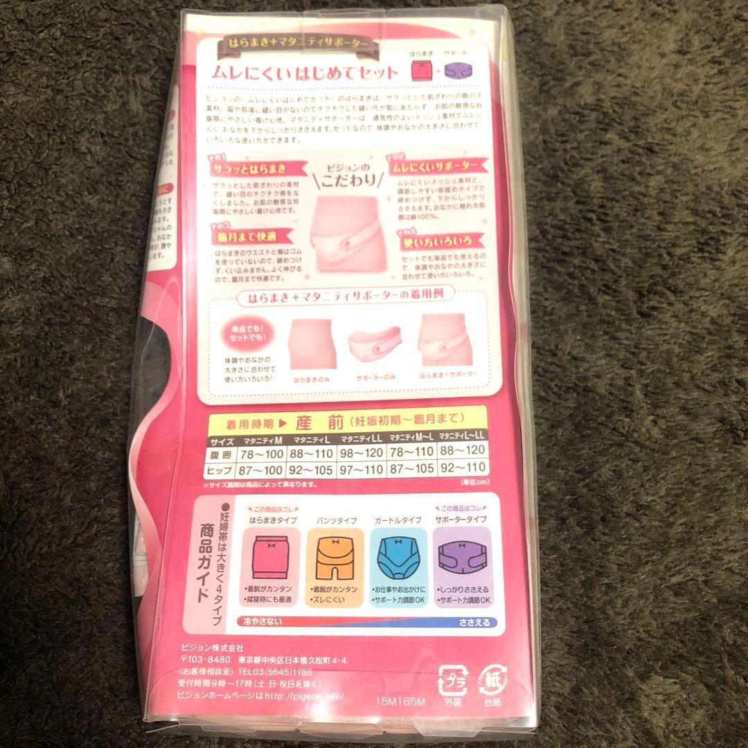 未使用のはらまきとマタニティサポーター、妊婦帯です。 妊娠後期、大きく重くなるお腹を暖かく保ち支えてくれます。 長期保管で外箱は側面が潰れていたりしますが、中身は綺麗かと思います。開封してませんので、中身の質問は受けかねます。 他にもマタニティ服など出品予定です。 同梱でお値引きします☺︎ ブランド: Pigeon サイズ: L〜LL 商品名: ムレにくい はじめてセット デザイン: フラミンゴ刺繍 機能: サラッと快適、しっかりささえる ご覧いただきありがとうございます。