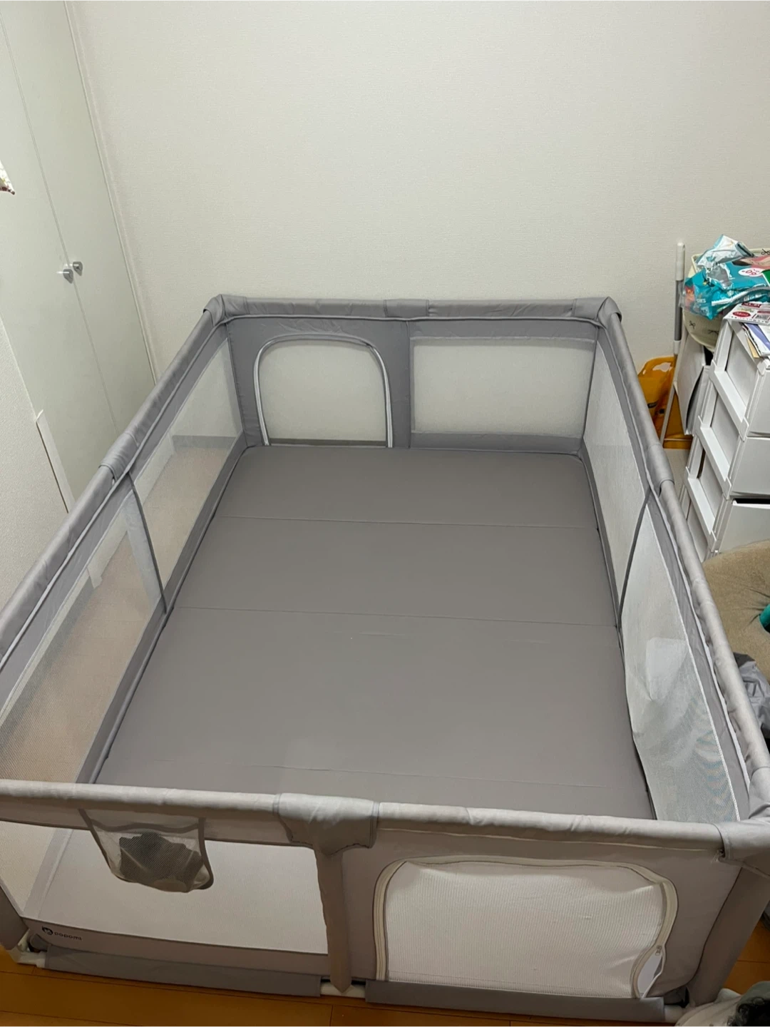 Popomi(ポポミ)の140×200cmベビーサークルです。 ・サイズ:140×200cm ・色:グレー ・使用感 : 4ヶ月使用 状態は良好で、目立つキズや汚れはありませんが、中古品であることをご了承ください。 広めのサイズで、お子様の安全スペース作りにとても便利です。 ※2番目の写真に写っているベビーマットレスは商品に含まれておりません。 組み立て・分解が簡単で、持ち運びや保管もしやすいタイプです。 現在は分解し、説明書と一緒に専用カバンへ収納してあります。 引き取りは 練馬春日町駅、光が丘駅付近でのお渡しとなります。 気になる方はお気軽にお問い合わせください!
