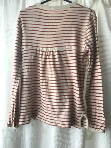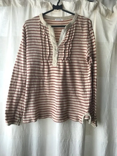 POU DOU DOUのボーダーカットソーです。レッドとベージュのボーダー柄で、ヘンリーネック風のデザインが特徴です。カジュアルなスタイルに合わせやすいかと思います。 【ブランド】Pou do do 【カラー】レッド/ベージュ 【素材】綿100% 【デザイン】ストライプ、ボーダー 【スタイル】長袖、プールオーバー 【季節感】春,秋,冬 綿100%なので、肌触りはいいと思います。 中古品ですので、多少の使用感はあるかと思います。 スカートはつきません。 長袖 ロンT カットソー カジュアル 受け渡しは小田急線 狛江周辺、登戸駅〜下北沢駅で、土日祝日で相談させてください。 平日は夕方相談によっては可能です。 ドタキャンしない方、中古品にご理解のある方のみお問い合わせください。 よろしくおねがいします。